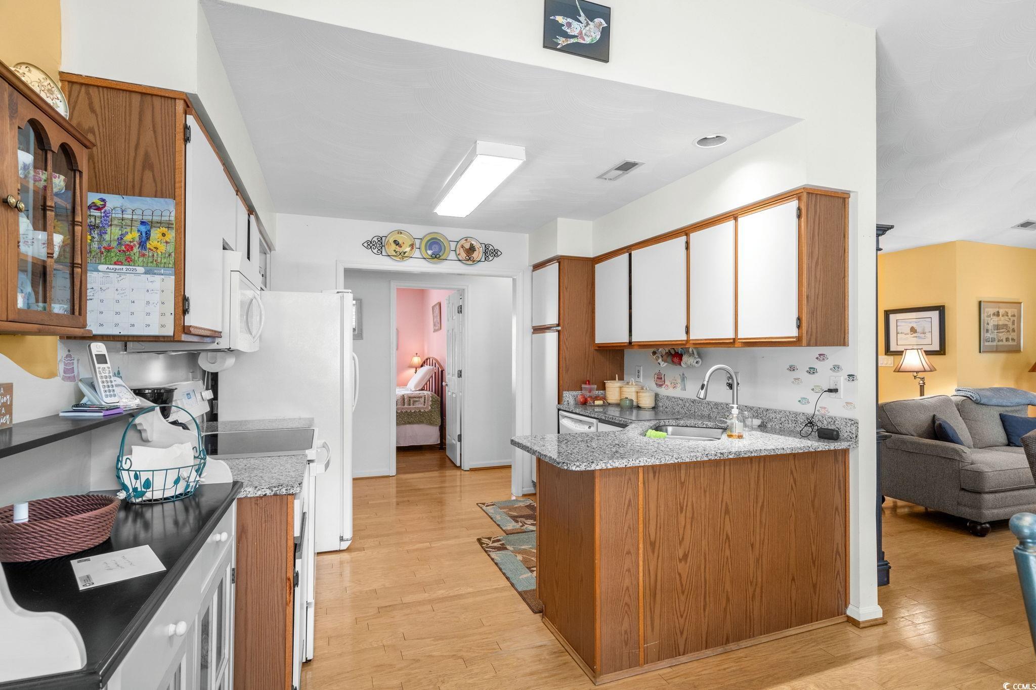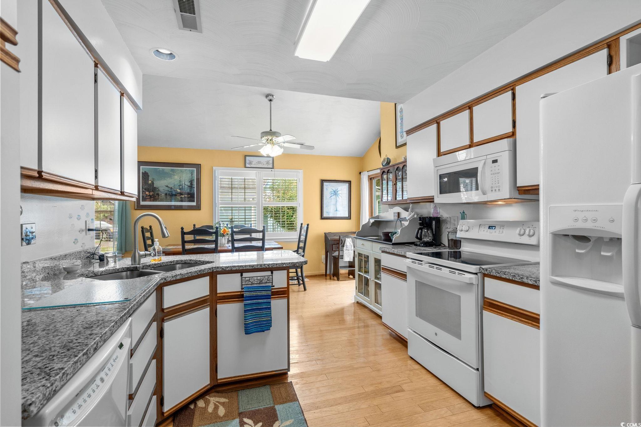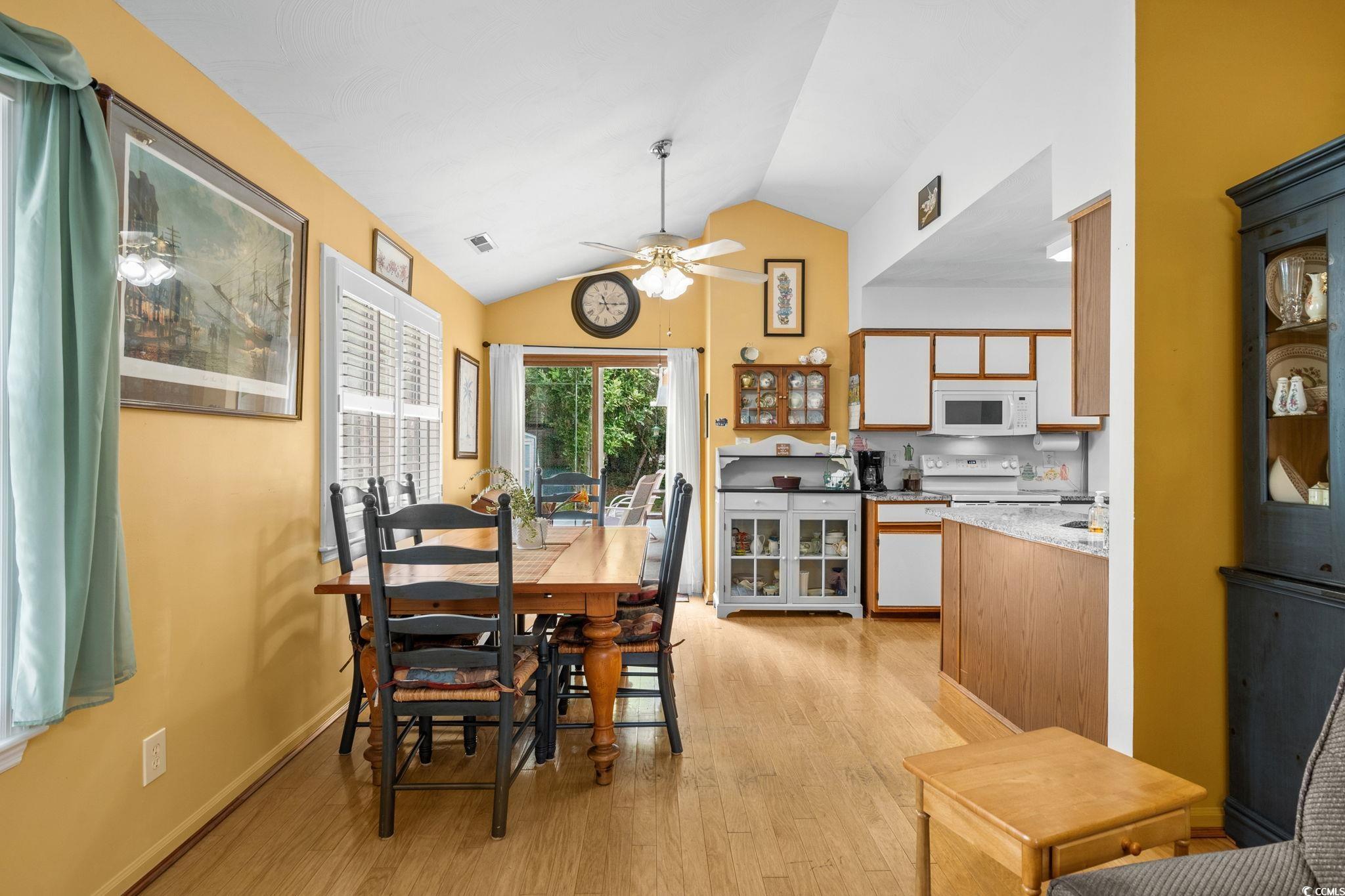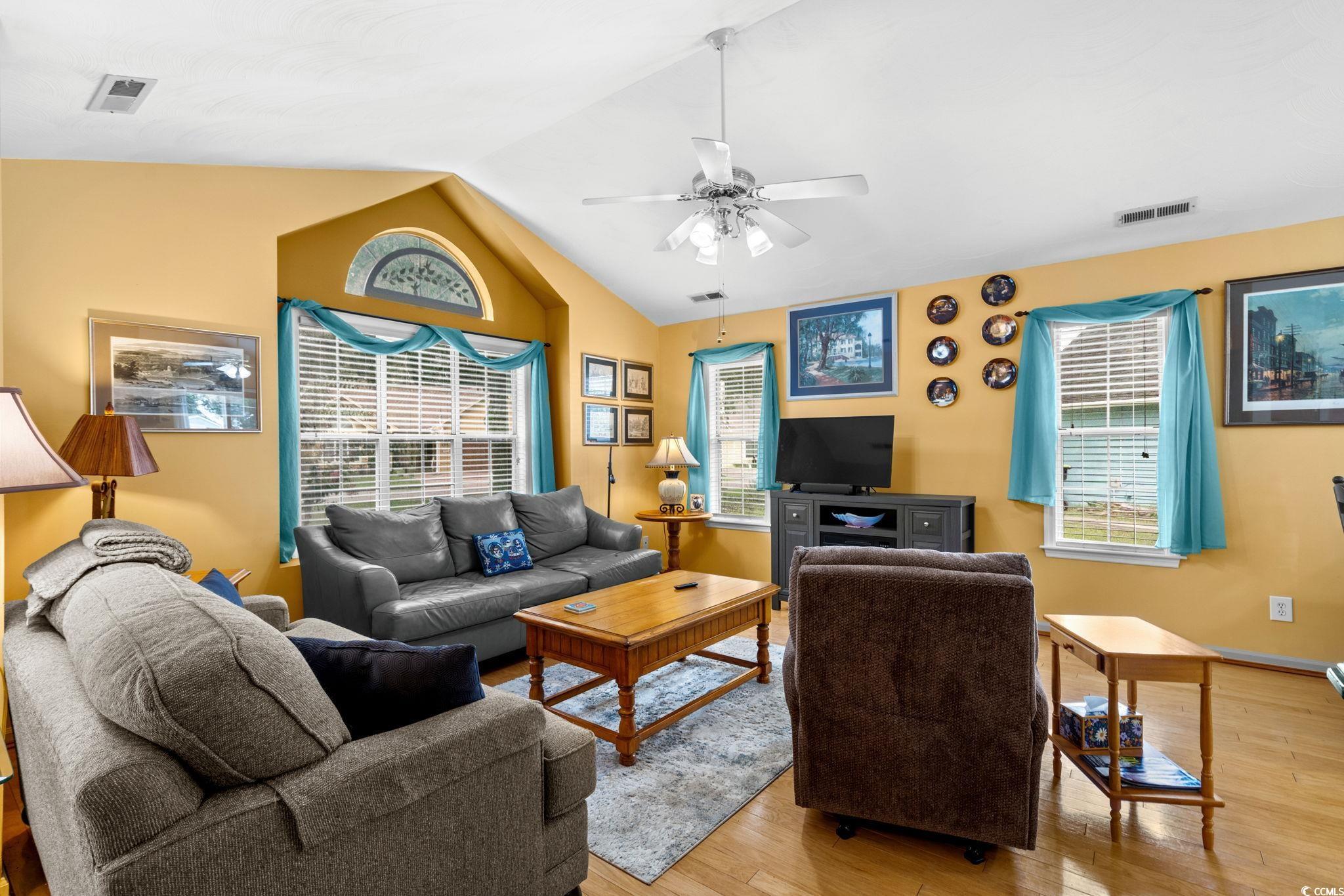 Charming coastal cottage in The Preserve, Little River! This cheerful 3BR/2BA home has a versatile third room thats perfect as a guest bedroom, home office, or den. A wide driveway and single-car garage welcome you home, while mature trees and a large, green yard create a peaceful setting. Inside, vaulted ceilings and an arched picture window flood the living area with natural light. Easy-care wood flooring carries through the open living/dining space to an efficient kitchen with granite counters, breakfast bar seating, and crisp white appliances. The primary suite features a roomy walk-in closet; a second bedroom and full bath are nearby, plus the flexible third room for whatever you need. Enjoy year-round living in the bright Carolina room overlooking the backyard, then step out to the extended patiocomplete with retractable awningfor effortless outdoor dining and grilling. A generous storage shed keeps tools, beach gear, or hobbies neatly tucked away, and the indoor laundry area offers extra shelving and cabinet space. The home also comes with the added bonus that is includes a whole home propane generator! Never worry about having the rigght power to keep things up and running! Tucked on a large lot in an established, tree-lined neighborhood, this home puts you minutes from marinas, golf, waterfront dining, and the beaches of the Grand Strand. Low-maintenance exterior, comfortable layout, and terrific outdoor spaceseverything you want for relaxed coastal living in Little River.