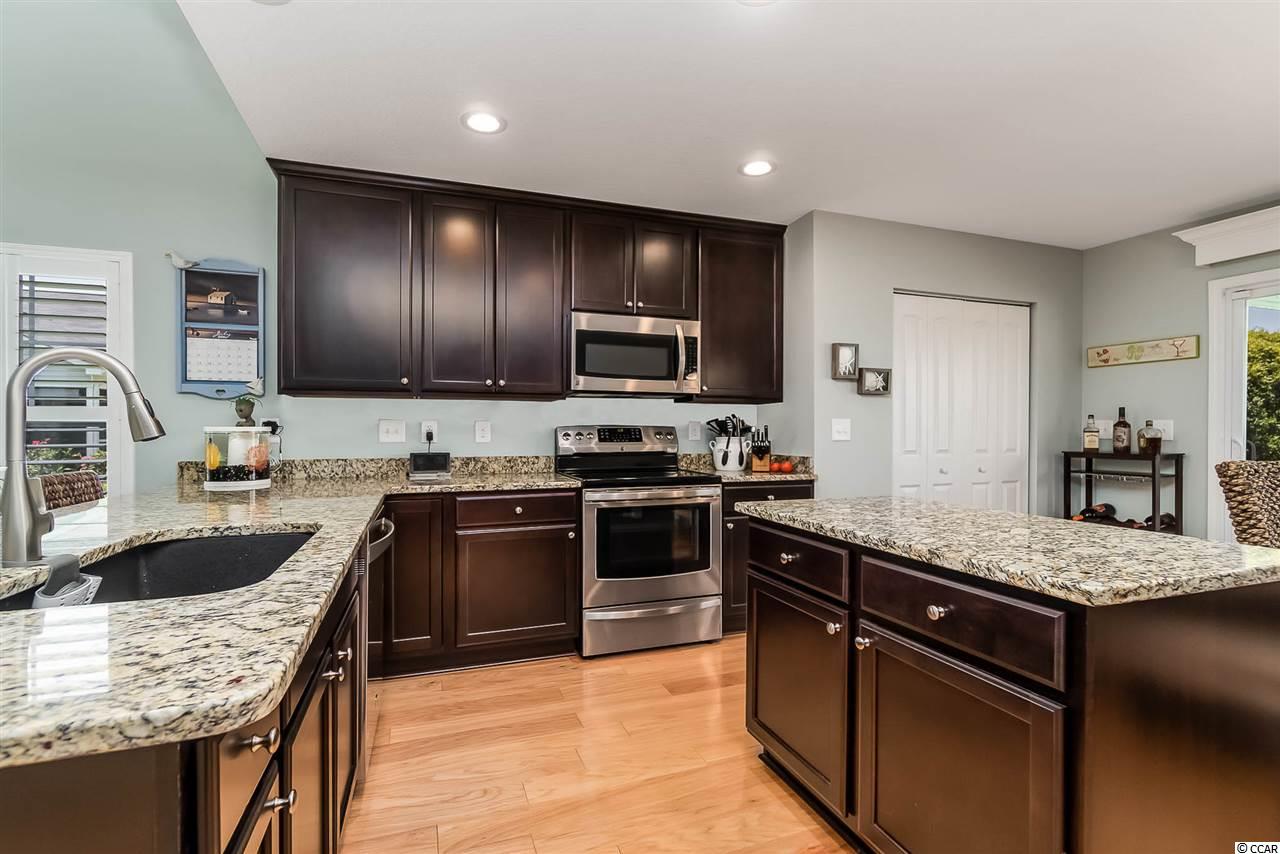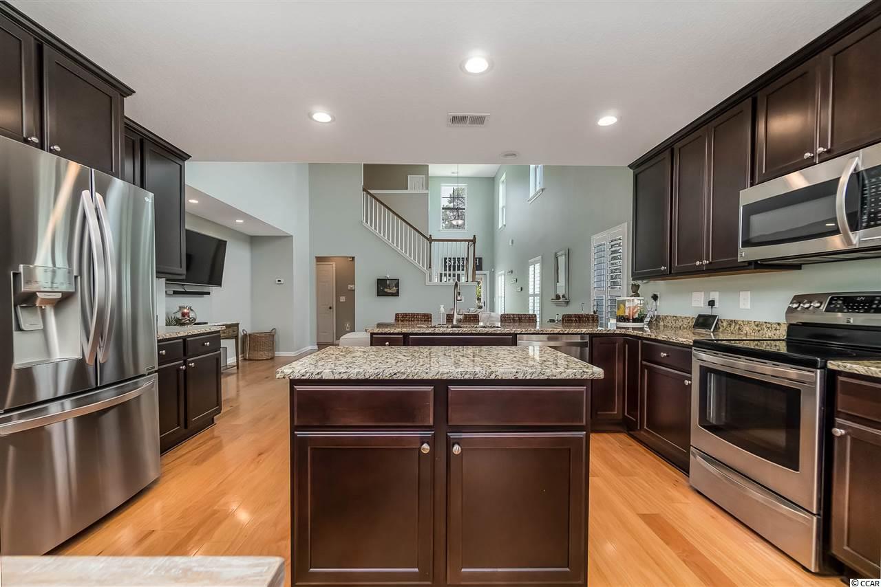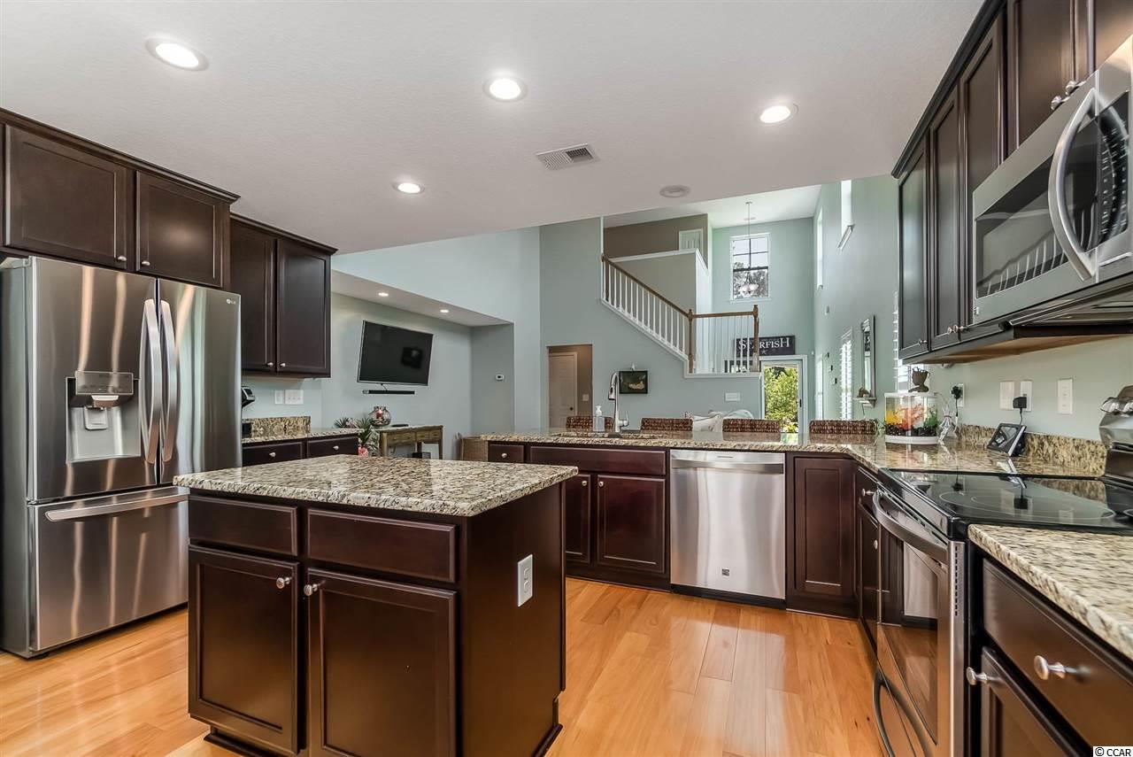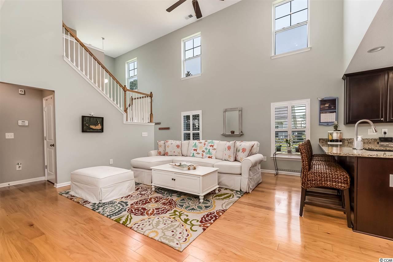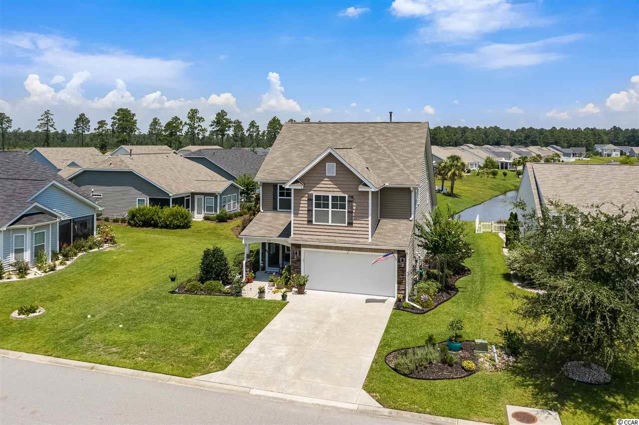 WELCOME HOME! This two-story Hickory floor plan was Summerlyns former model, shows beautifully, and has so many custom upgrades. The home sits on the perfect homesite with lush landscaping, palm trees, and broad, enticing water views. As you approach the home, you will be captured by the eye-catching curb appeal and then you will simply want to sit and relax on the inviting front porch before entering your new home. Once inside, you will be impressed with the two-story great room and open floor plan. Wood floors abound in the foyer, great room, and kitchen. So many extra windows make this home so light and bright, even on a cloudy day! Custom cornices and plantation shutters! The kitchen includes granite countertops, 42 cabinets, can lights, a large pantry, and plenty of cupboard space for storage. The kitchen layout makes it easy for several cooks to be in the kitchen at the same time. Dine at the breakfast bar, large nook, or even on your comfortable screened-in porch. There is also a gas-hookup for all your grilling needs. The spacious first floor master bedroom with window bump out accommodates all furniture sizes and shapes. The ensuite bathroom features a garden tub and shower. And the walk-in closet and linen closet are large as well. A laundry room, half bath, and storage under the stairs complete the first floor. Upstairs you will find a versatile loft, two guest rooms, and a full bathroom. Summerlyn, located in Carolina Forest, is conveniently located between The Farm & Waterbridge and is directly across from the Public Library and Recreation Center. Easy access to Highways 17, 31, and 501 allow you to be at any point on the Grand Strand quickly. It is convenience to all the necessities of Myrtle Beach life great schools, shopping, dining, healthcare, golf, attractions, entertainment, post offices, grocery stores, and of course, the beaches. Don't delay! Book your showing today!