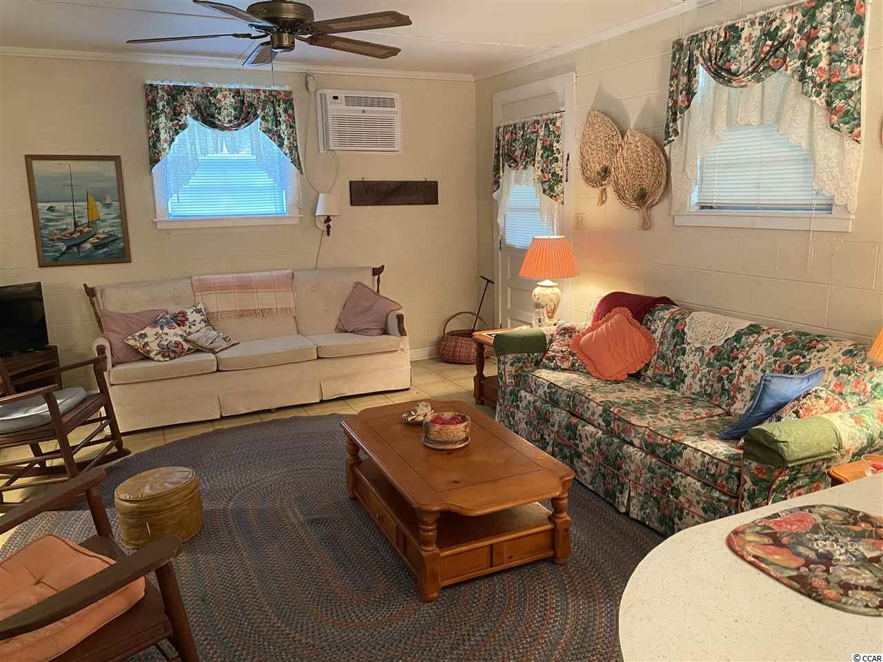 Affordable beach retreat just a golf cart ride to the beach! This adorable sturdy built (block and stucco) cottage has 2 bedrooms and 1 bath and sits on a huge 75 x 155 ft. lot with a fenced in yard filled with beautiful trees and colorful flowers. Home has a new wall AC unit and Gas heat and stove. The shaded screened porch will be perfect place to have your morning coffee. Don't miss out on this affordable home as it will not last long!!