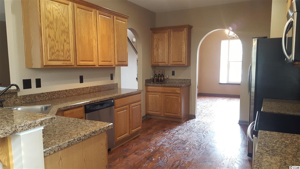 This quality built 2 story 4-bedroom home with large bonus room (or 5th bedroom) with closet, is located in Myrtle Beachs St Davids Township of Windsor Plantation; a natural gas community just a few minutes to the beach with top-notch amenities. Relax in your spacious fenced back yard that backs up to a thick stand of trees offering rear privacy, then dip in the in-ground hot tub on the spacious concrete patio. Spend all the time you want in the air conditioned, painted floor garage with its own full bath. Open the front door and be wowed by wood-flooring throughout the ground level including the owners suite and laundry all on 1st floor, then enter a true chefs kitchen with 5-burner smooth stove, Moen fixtures, microwave, side by side fridge all stainless steel appliances, and pantry. Bring the outdoors in with the quaint sunroom located off of the breakfast nook. Additionally this home features a formal dining room accessed via elegant archways; a very large bonus room, as well as 3 guest bedrooms upstairs. Located only minutes to Myrtle Beach State Park, and a short drive to the famous Murrells Inlet Marsh Walk.