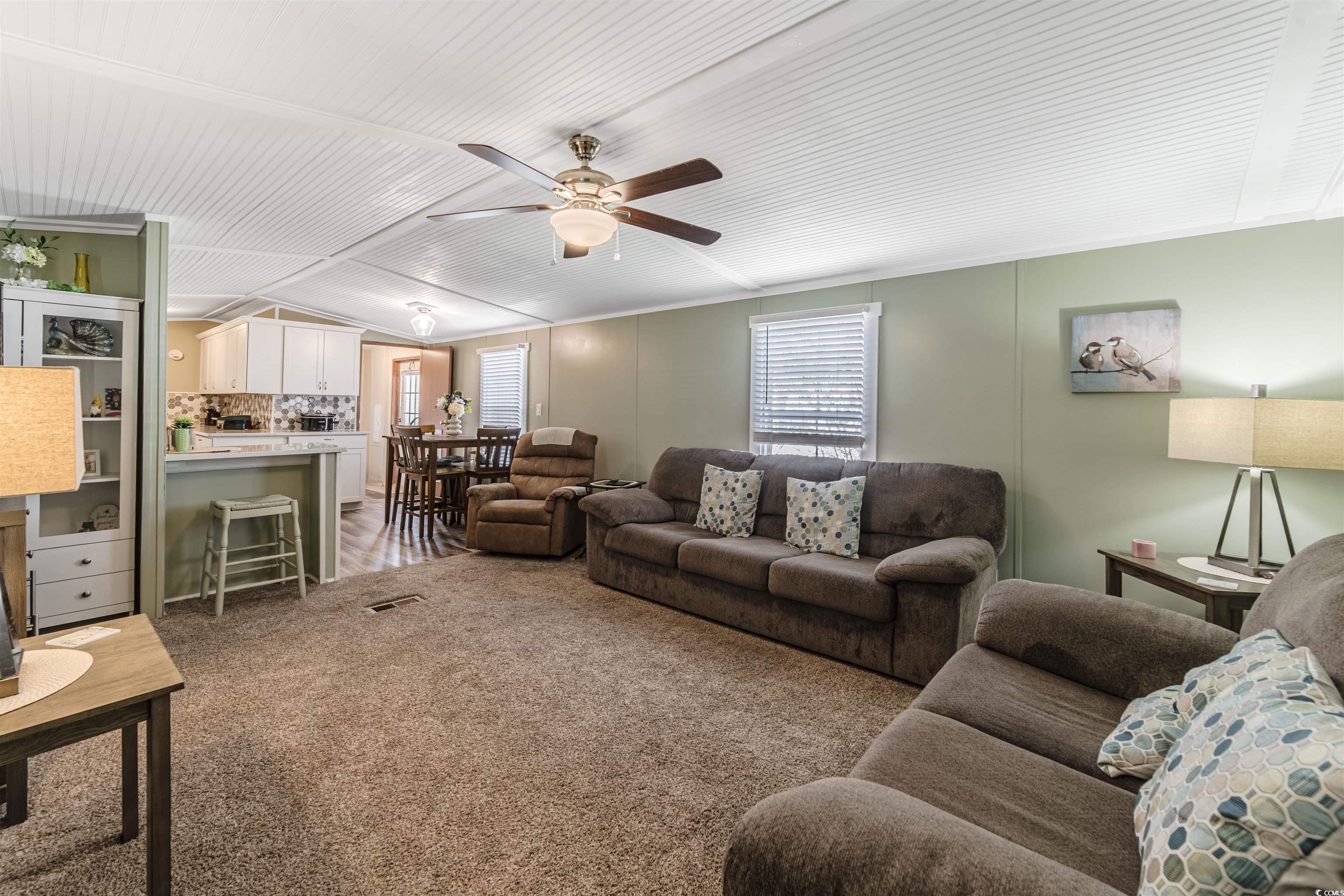 Investors, Retirees, or First time Home Buyers, come see this well maintained manufactured home in The Park at Long Bay, a gated community on Hwy 9 in Longs, SC. You won't find a nicer manufactured home around! This home offers a split Bedroom plan and a recently renovated, spacious Kitchen with an abundance of custom Cabinetry, Quartz countertops, custom Tile backsplash, and Stainless Steel appliances; Comfortable Living area with custom Ceiling, built-in Curio cabinet and fan; Large Master Suite with renovated Bathroom, and walk-in closets; and a Spare Bathroom with new walk-in shower, sliding glass door, & custom Vanity. The flooring has also been updated with LVP in the wet areas and carpet in the living area & bedrooms. Exterior features include: Architectural shingles, Vinyl siding, Brick underpinning, Storage room, Screened porch, Carport, concrete Driveway and a centipede lawn. The Park at Long Bay is a gated community with a mix of Stick built and Manufactured homes. Call an Agent TODAY for more information. Buyers and Agents are welcome to view.
