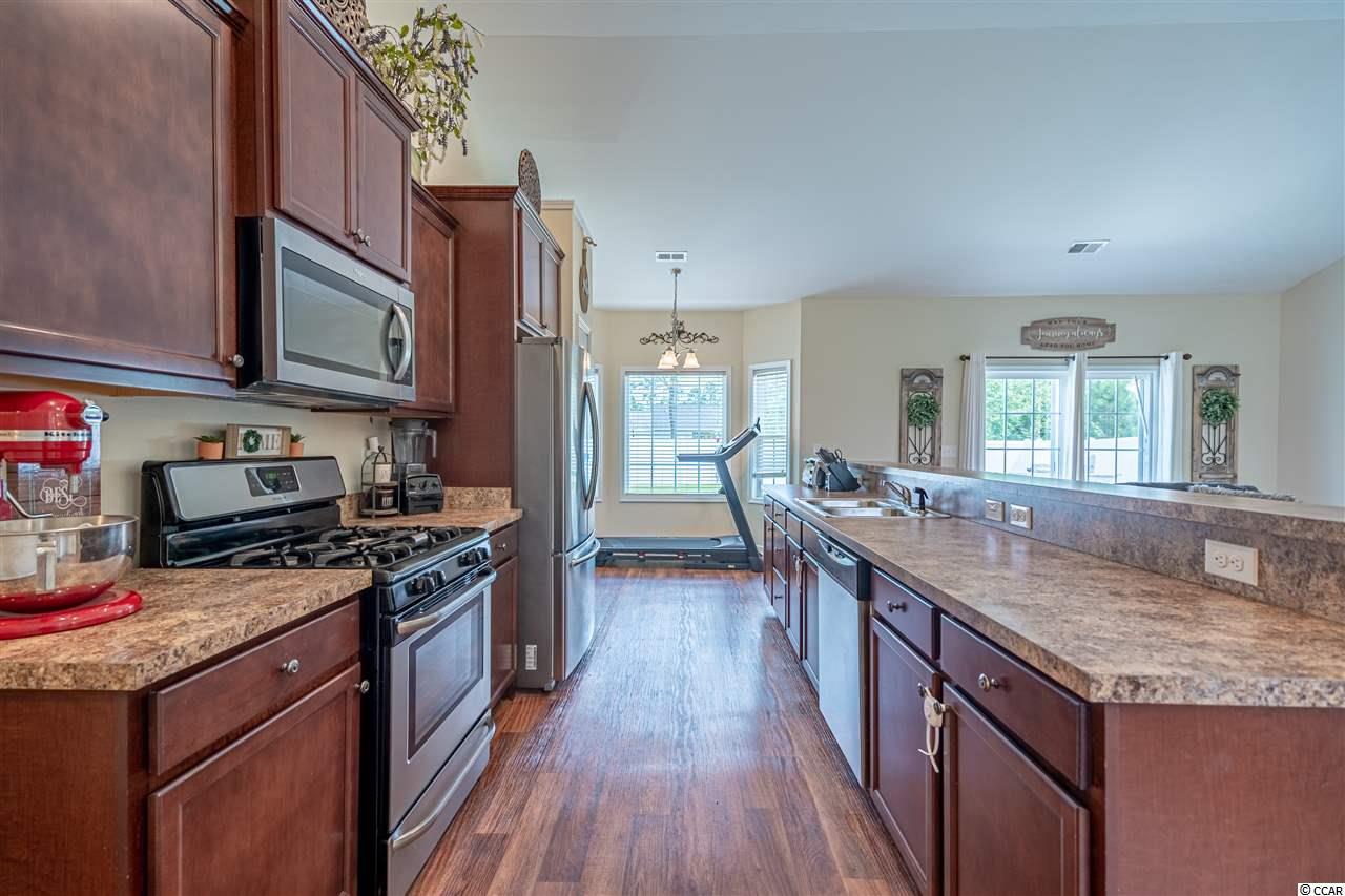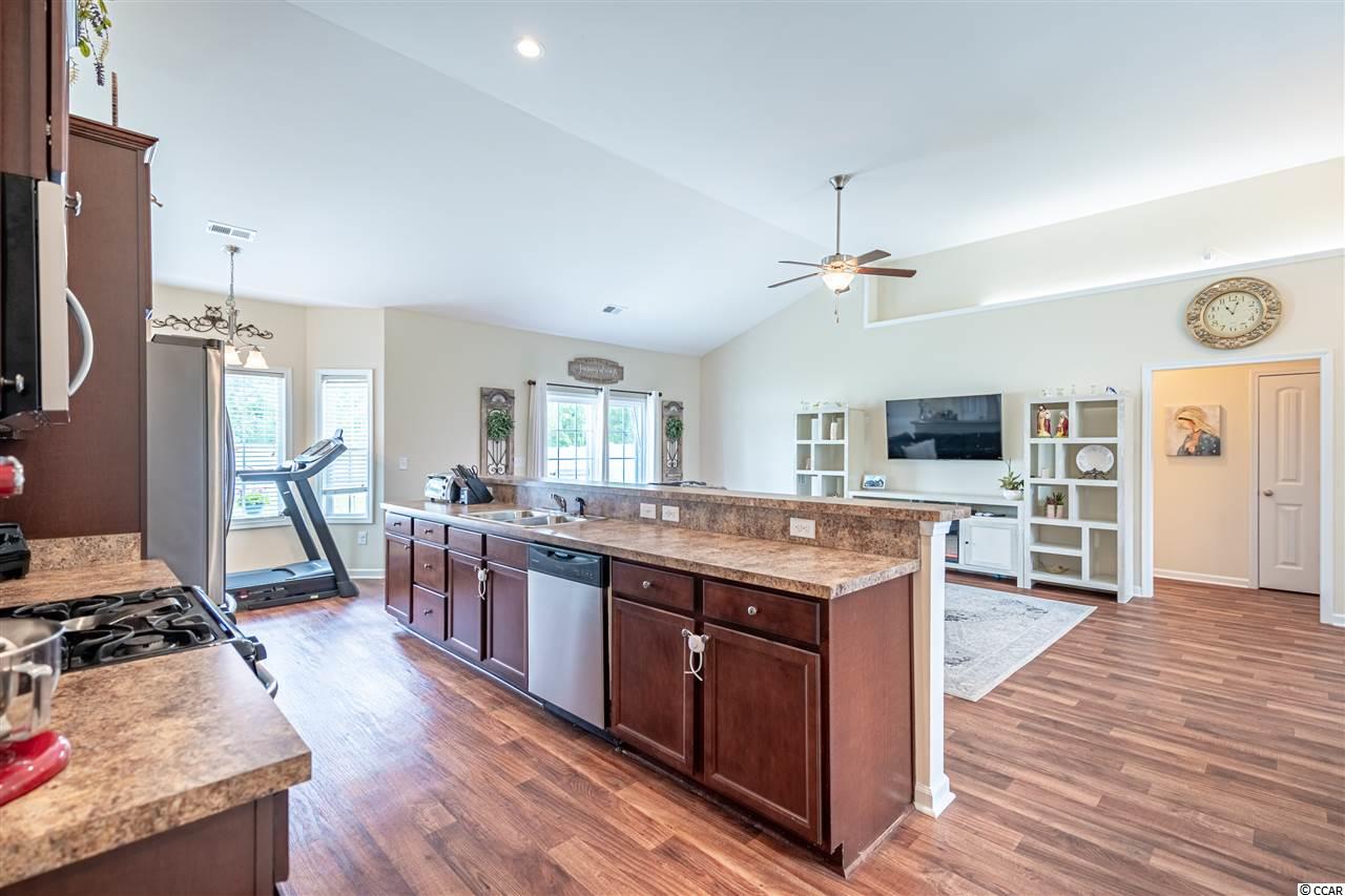 GORGEOUS Barons Bluff North Home! Fantastic curb appeal and attention to detail with elegant brick accent exterior. Youll be impressed from the moment you enter the home with soaring Vaulted Ceilings and large custom windows providing incredible natural light. The spacious floor plan offers great flow for entertaining and everyday living. The high ceiling and arched window over the Formal Dining area provide a luxurious way to dine. Beautiful kitchen with staggered cabinetry, huge island, Stainless appliances, gas stove, and pantry. A dining alcove overlooks the private fenced backyard and patio. The tranquil Owners Suite includes tray ceiling, large walk-in closet, executive height dual vanity, and walk-in shower with transom window. Two other bedrooms, a shared bath, and laundry room round out this amazing home. Notable features include ceiling fans throughout, tankless hot water, upgraded insulation, and natural gas heat. Floored storage space above 2-car garage. Barons Bluff North boasts a neighborhood pool with cabana, extensive sidewalks, decorative lakes, and well-groomed common spaces. Residents love the peaceful, rural setting of the neighborhood paired with its easy access to Conway, Carolina Forest, and Myrtle Beach. Additionally, its located within an award winning school district. Dont miss this opportunity, schedule your tour today!