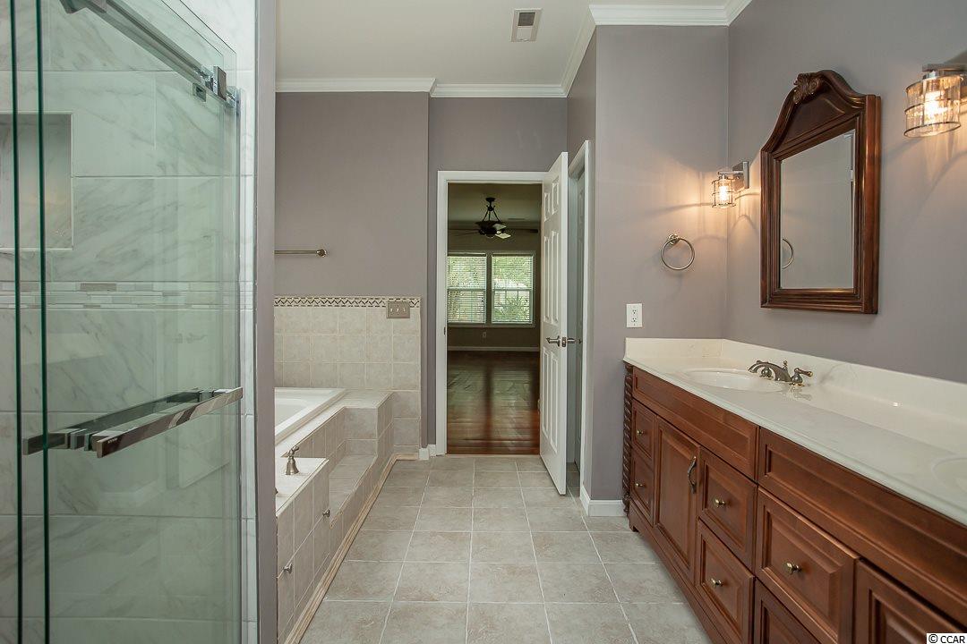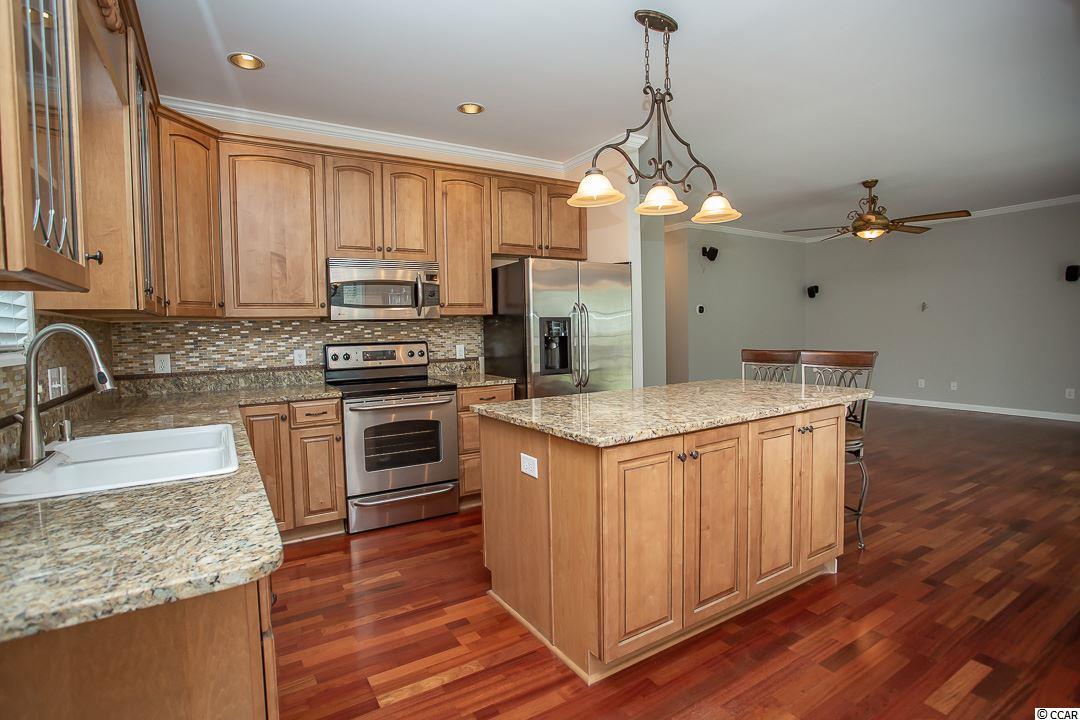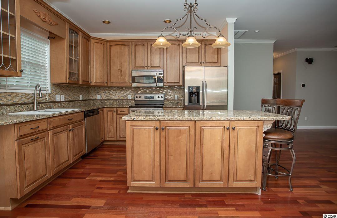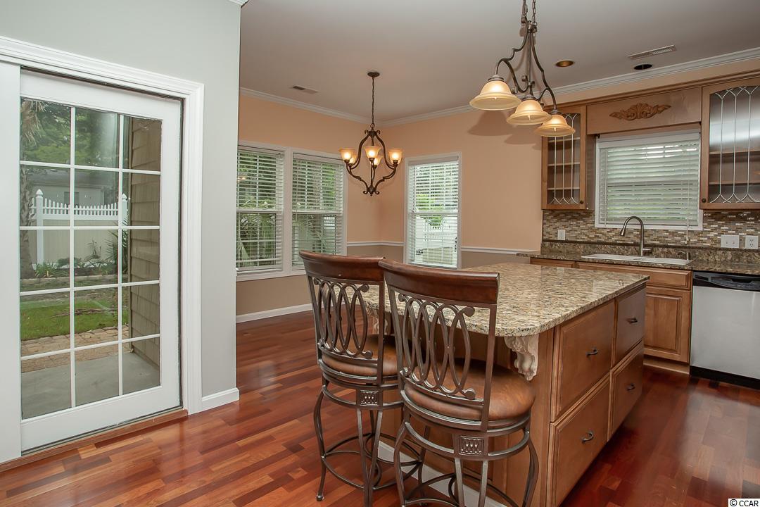 Magnificent 4BR-2BA home in the Windy Hill Beach area of North Myrtle Beach! APPROXIMATELY 300 YARDS TO THE BEACH! Not enough superlatives to describe this home! Crown molding through the whole house, engineered mahogany cherry hardwood flooring throughout the living space and bedrooms, decorative ceiling fans and custom mahogany front door. The large master suite features his and her closets and the master bath has a double sink vanity, a whirlpool jacuzzi tub and a beautiful new custom tiled shower. The kitchen is enhanced with custom cabinetry, tile backsplash, granite countertops, Stainless Steel appliances and work island with breakfast bar. Amazing curb appeal! Mature trees and shrubs surround the home, custom lighted brick mailbox, corner coyns, brick front, cast cement window trims and custom stone paver driveway. The very private backyard is an oasis; completely fenced, tropical landscaping and stone paver patio.The oversized (24x22) side load garage has a mop sink. Attached storage in rear of house. Safety upgrades: 2x6 walls, hurricane windows and ice water shield roof under shingles. WOW! Make an appointment to see this home today!