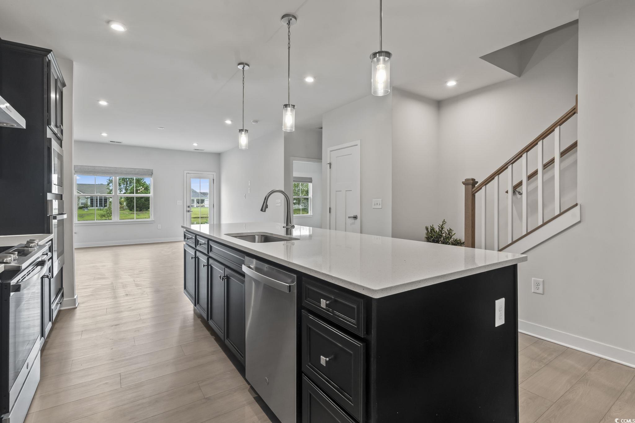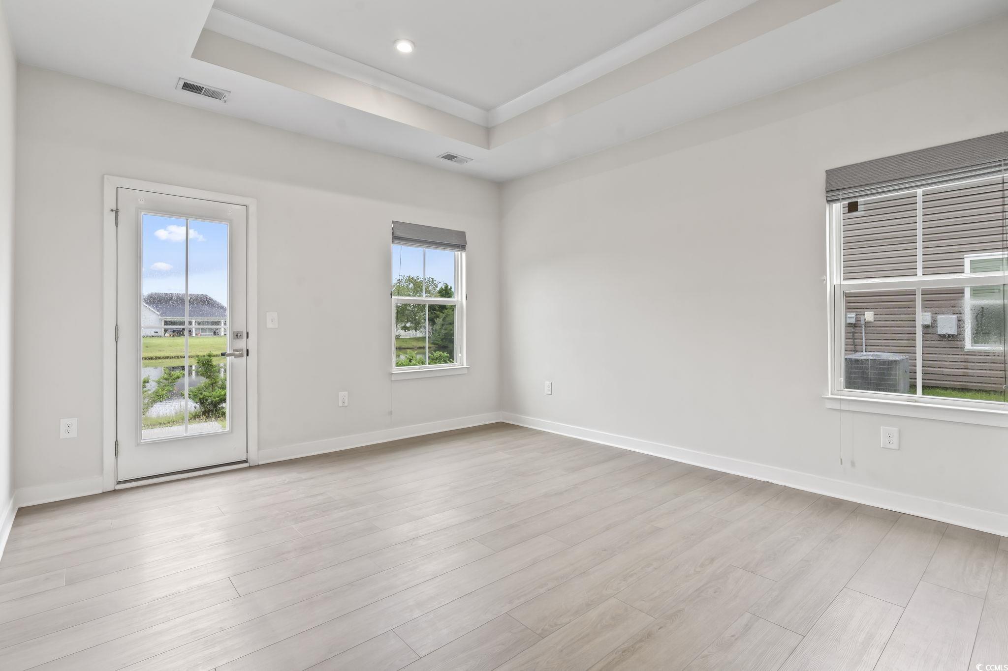 Welcome to 331 Golan Circle, Unit A - a stunning 3-bedroom, 2.5-bathroom townhome with an attached 2-car garage, set on a desirable corner lot with serene pond views. This beautifully maintained residence offers the perfect blend of comfort, elegance, and convenience, making it truly move-in ready. Step inside and be greeted by an inviting open floor plan filled with natural light, where rich wood flooring flows seamlessly throughout the main living spaces. The formal dining area provides the perfect setting for gatherings, while the completely upgraded kitchen is a showstopper-featuring quartz countertops, stainless steel appliances, a double oven, a spacious island, a huge pantry, and abundant cabinetry for all your storage needs. The first-floor primary suite is a private retreat, complete with a beautiful tray ceiling with crown molding, a walk-in closet, and direct access to the extended back patio overlooking the pond-perfect for enjoying quiet mornings or peaceful evenings. The spa-like primary bathroom offers a double vanity, a walk-in shower, and a separate enclosed half bath for added privacy. Upstairs, you'll find two generously sized bedrooms, a full bathroom, and a versatile bonus/flex room that could easily serve as a fourth bedroom, home office, or media room. The outdoor space is just as impressive, with a private backyard and breathtaking water views that create a serene escape right outside your door. Located in the sought-after Forest Pines community, this home is just a short stroll from the sparkling community pool and minutes from some of the area's best amenities. Enjoy easy access to world-class golf courses, the Myrtle Beach International Airport, shopping centers, local dining favorites, and endless entertainment options. And with the beach only a 10-minute drive away, you can enjoy the best of coastal living while still savoring the peaceful privacy of this quiet neighborhood. This is more than just a home-it's a lifestyle. Whether you're seeking a full-time residence or a vacation getaway, 331 Golan Circle, Unit A offers the perfect combination of modern upgrades, thoughtful design, and a prime location close to everything Myrtle Beach has to offer. Schedule your showing today!