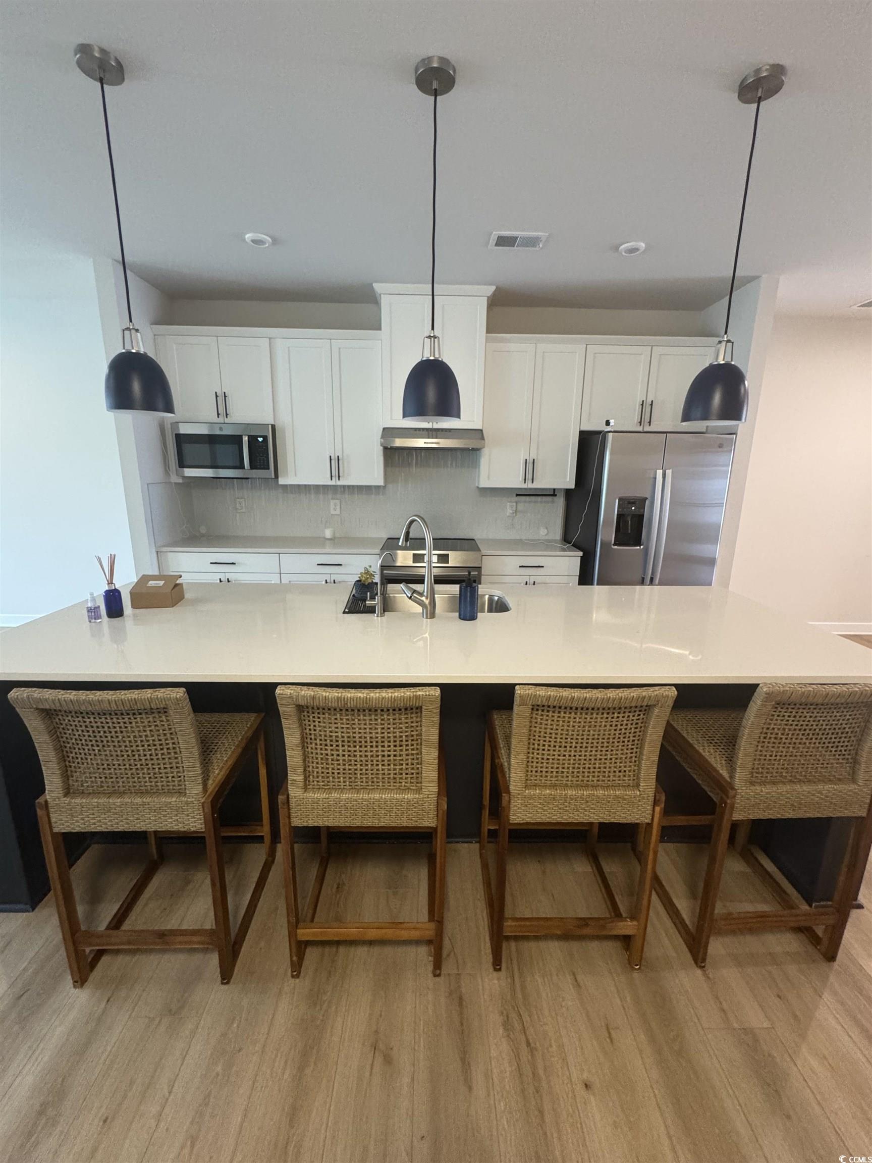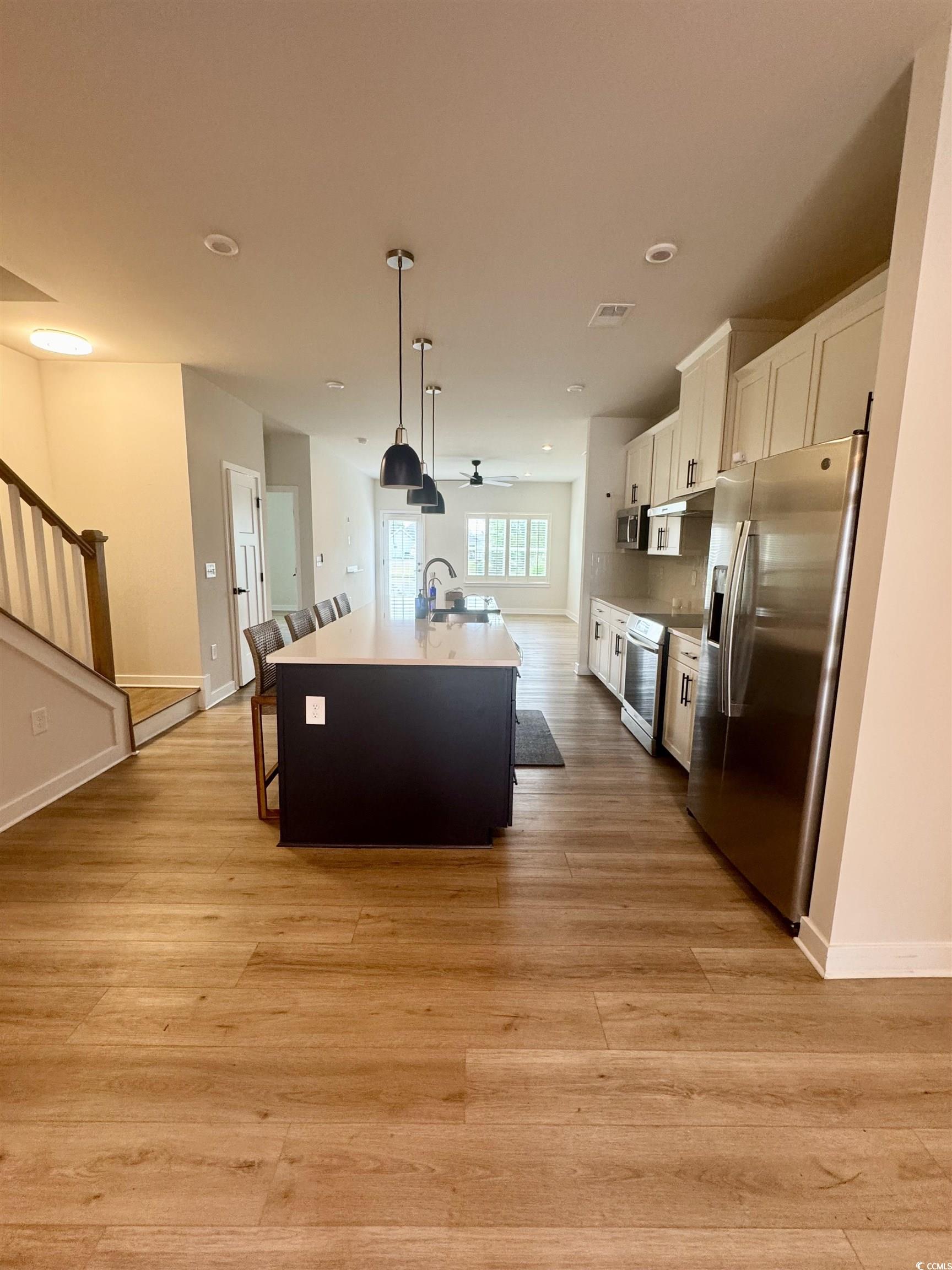 This STUNNING townhome is only 2 years old, making it practically brand new and turn-key ready. NUMEROUS NON-BUILDER UPGRADES, including light fixtures, ceiling fans, pantry shelving, kitchen sink water filter, and gutters, just to name a few. SELLER IS PAYING FOR ONE YEAR OF HOA DUES WITH A RATIFIED CONTRACT! Plantation shutters throughout, mud room, large utility room, and primary bedroom on the 1st floor. Unique, built in vintage storage closet, perfect for wine enthusiasts. 2 bedrooms upstairs with an additional space that could be used as a 4th room or office. Picturesque views of the water and extended patio-appealing for entertaining. Convenient access to Hwy 31, Coastal Grand Mall, dining, shopping and the Myrtle Beach International Airport, make this property a must see!