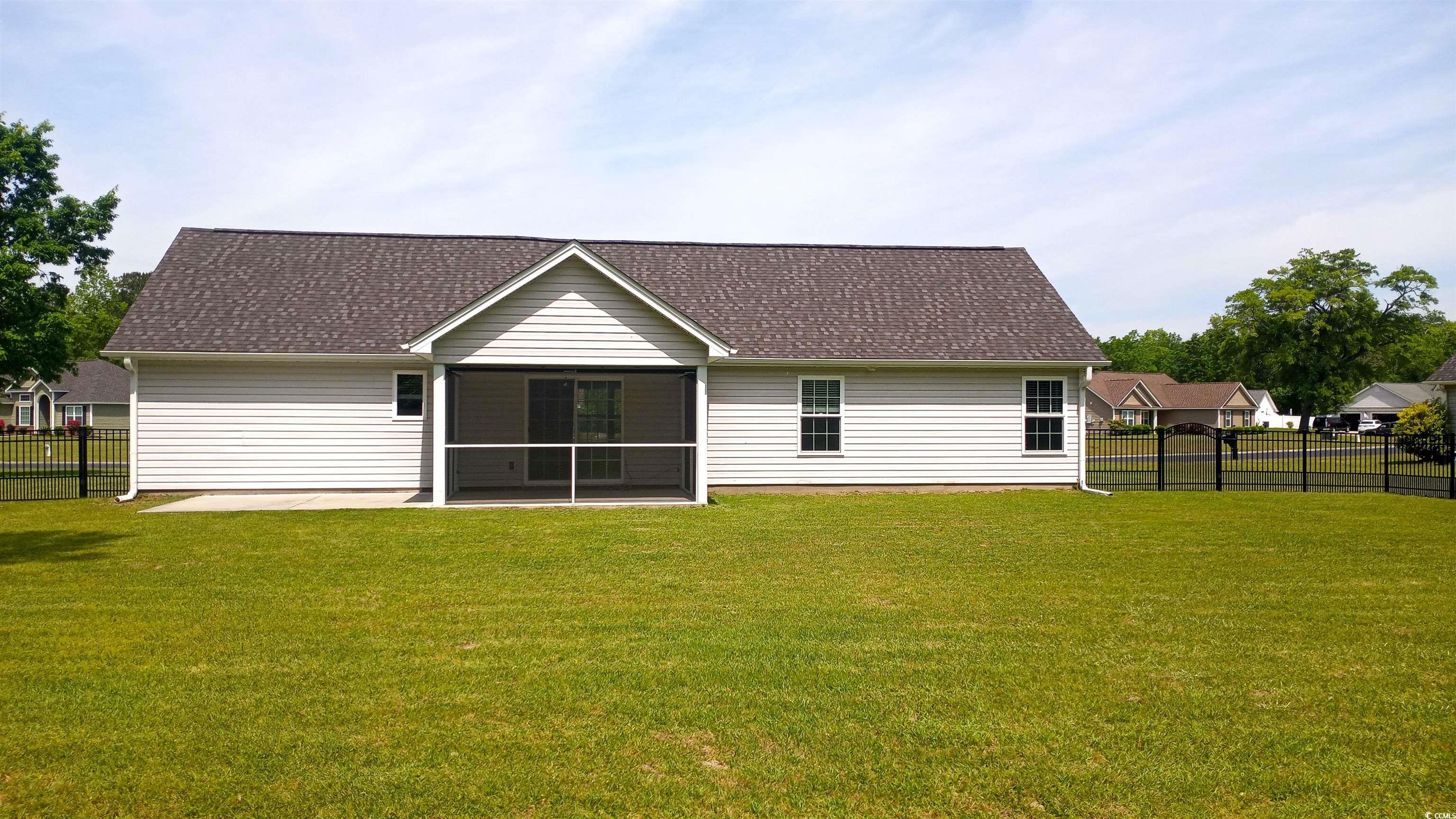 Don't miss out on this 3 bedroom, 2 bathroom home situated on a acre lot on a quiet dead end street in the Yauhannah Landing Community. The community features a private boat ramp and is RV friendly. The extended 2 (3 tandem) car garage provides space for a workshop, motorcycle or golf cart parking and has built in overhead storage and pull down stairs for access to the attic storage area. The home has upgraded vinyl flooring throughout. The living room has vaulted ceilings and the master bedroom has a tray ceiling. The refrigerator, stove, dishwasher, washer & dryer, microwave and window blinds convey. The over the sink window in the kitchen is an upgraded feature. The home is pre-wired for a backup generator. The exterior features include a 14' X 10' screened porch with newly installed Alta Sunroom Roller Shades, a 14' X 10' patio and rain gutters. There is also a 12' X 10' Leonard Storage Shed and an HOA approved pad for boat, trailer or RV parking. The fenced back yard is bordered by a wooded area and has morning sun and late afternoon shade.