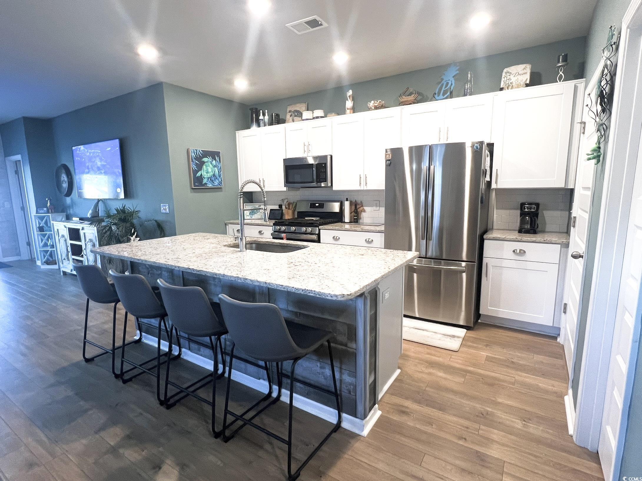 This home is all you need to live a fabulous beach life on the best homesite in the entire Beach Village neighborhood in Surfside Beach! Stunning 5 Bedroom with Masterbedroom on 1st floor, 4 bedrooms upstairs, plus a loft and home has an amazing Lake view, just a golf cart ride to beach, hot tub, and newly built with gas heat & central air all for a great price. Run, dont walk to become the owner of this fantastic home ! The exterior living on this home does not disappoint with the lake view, hot tub and two maintenance free verandas. Every day is a brand new day sitting and watching the sunrise LAKESIDE sipping your coffee on your comfy rear porch. Evenings are just as special relaxing in the hot tub staring at the stars. Come relax and watch the wildlife in its natural habitat. Swans, geese and ducks are common sights along with other graceful species of birds. When youre done bird watching at your lake head to the beach. That's so easy to do at this home just 2 miles from the OCEAN! And can be done by golf cart, car or even a decent walk or jog. Other wonderful features include Loft on 2nd floor, 2 car garage,Gas Heat & Central Air, Dual zone thermostats, tankless hot water heater, 9' high ceilings on 1st floor, and the newer washer & dryer is included. Smart Home with Smart features like Ring doorbell and smart garage door app available. Luxury Vinyl Plank Flooring, Granite countertops and White Upgraded Kitchen Cabinets. Stainless Steel Microwave, Dishwasher, Oven and Refrigerator included. Tile Backsplash and walk in pantry. Beautifully crafted tile walk in shower in the Masterbathroom. Second floor bathroom is a Tub/shower combo. Large closets. Generous bedroom sizes. Low Monthly HOA includes Cable Tv, Internet and Trash pickup. Contemporary Beachy Exterior with front and rear porches. Come Chillax at this Beach Retreat and claim it as yours. Nothing left to do but BYOB - Bring your own Bathing suit.