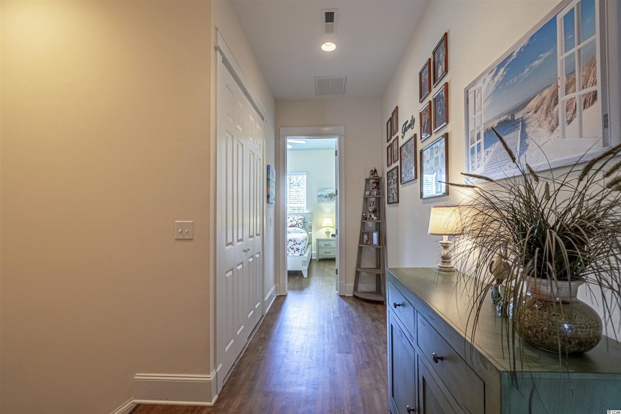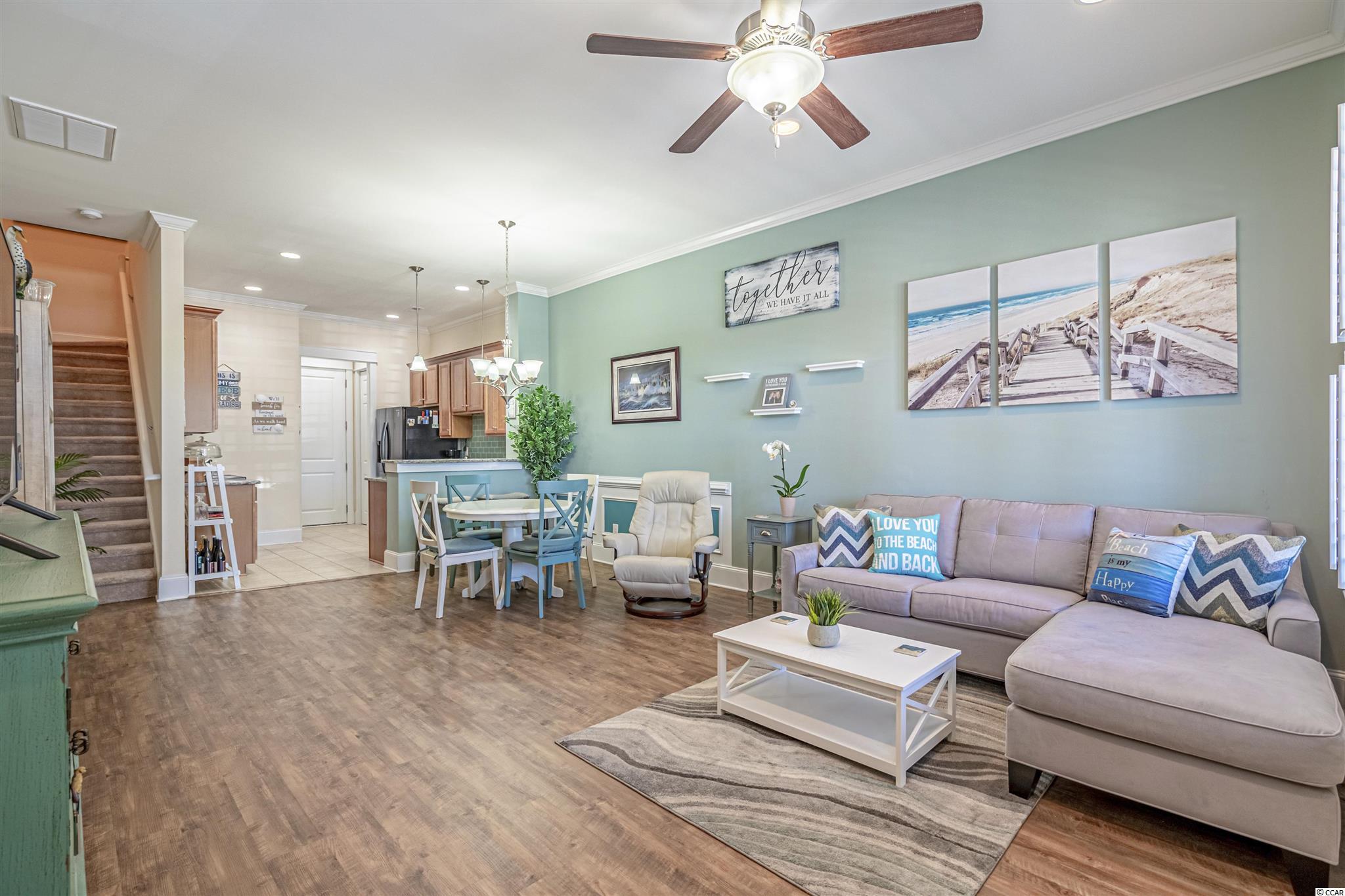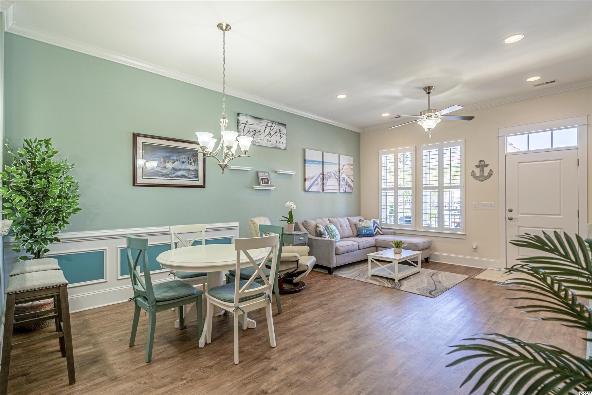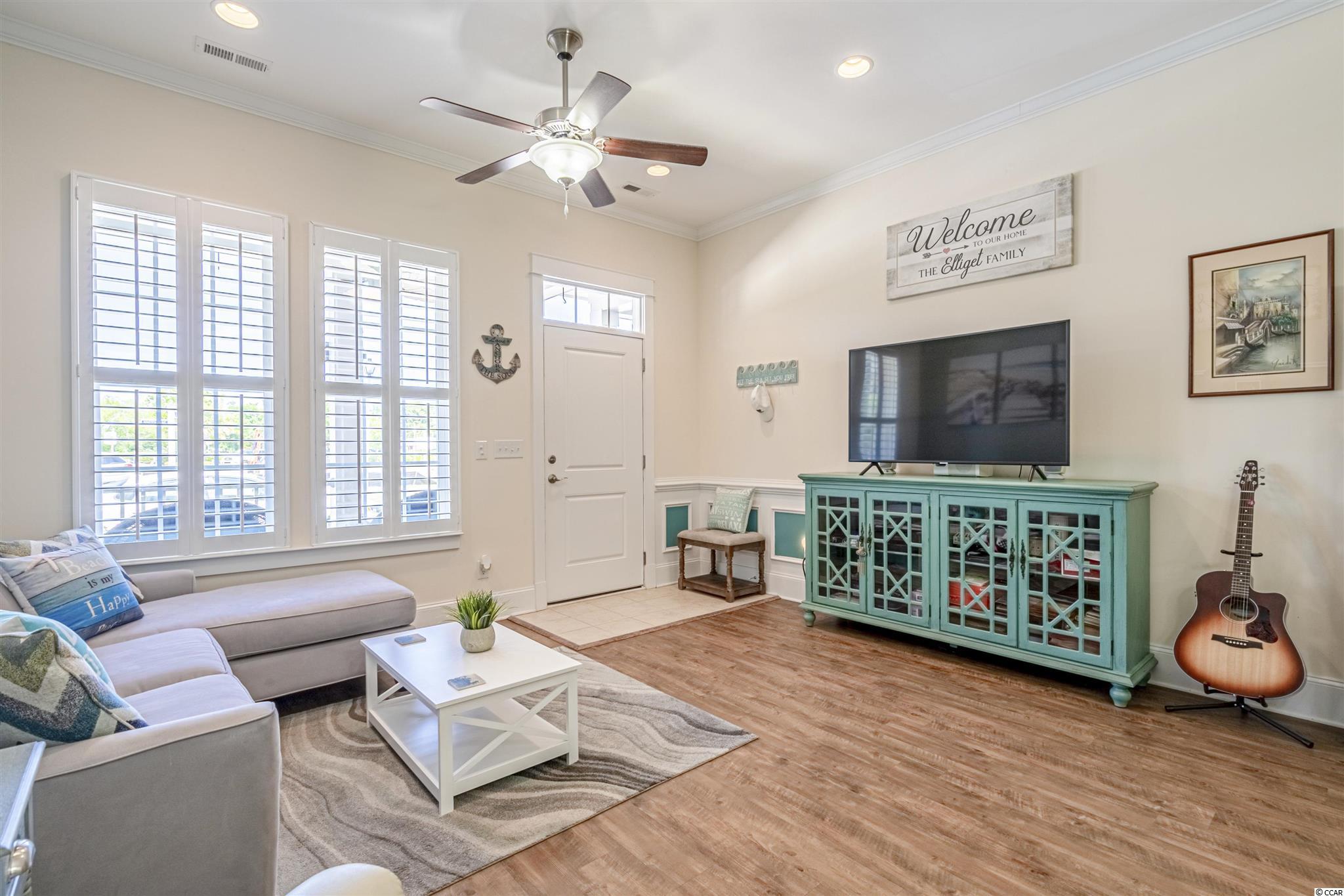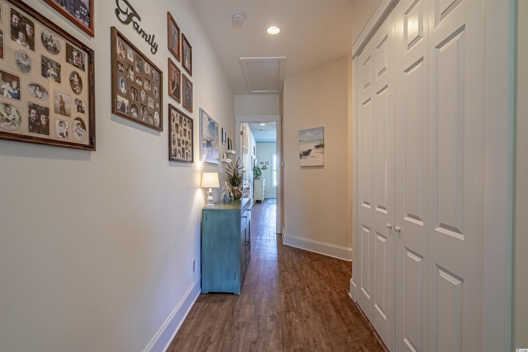 This immaculate and spacious townhouse in the quaint St. James Square community is only 1.3 miles from the beach! It is a former model home lightly lived in by the original owners. It was used as a second home for the last four years since it was built. The front porch welcomes you into the open plan living area on the first floor with a spacious living and dining room and upgraded kitchen. The 10ft ceilings throughout, crown molding, wainscoting and plantation shutters add a touch of class that makes you want to live here! As if the soft close cabinets, generous pantry space, granite countertops and impeccable appliances are not sufficient, the owners recently installed luxury plank flooring on both floors. From the kitchen youll access the half bathroom and 1 car garage. In the back of the home is parking as well as a driveway leading to the completely finished garage. If a neat and clean garage is what you need, this is it! Another unique feature of this home is the spacious hallway on the second floor where the full size laundry area is located. The almost 1,500 square feet of living space and tall ceilings offer a spacious feel throughout. The landing area is large enough for beautiful pieces of furniture and leads to the two master suites. One bedroom has a full size luxury ensuite with walk in closet, soaking tub and double vanities. The St. James Square community has its own main street with live-work townhouses containing an array of shops where you can grab coffee, sandwiches, and even a massage! A quick trip down 38th Ave N has you at the beach in no time and you can walk to the grocery store a stone throw away. Broadway at the Beach is 1 miles from St. James Square with restaurants and attractions to enjoy. Similar properties are scarce so dont wait but schedule a tour today! Live showings as well as live video walkthroughs are available at your convenience. The current owner is having a home built and requires a 6 month lease back.