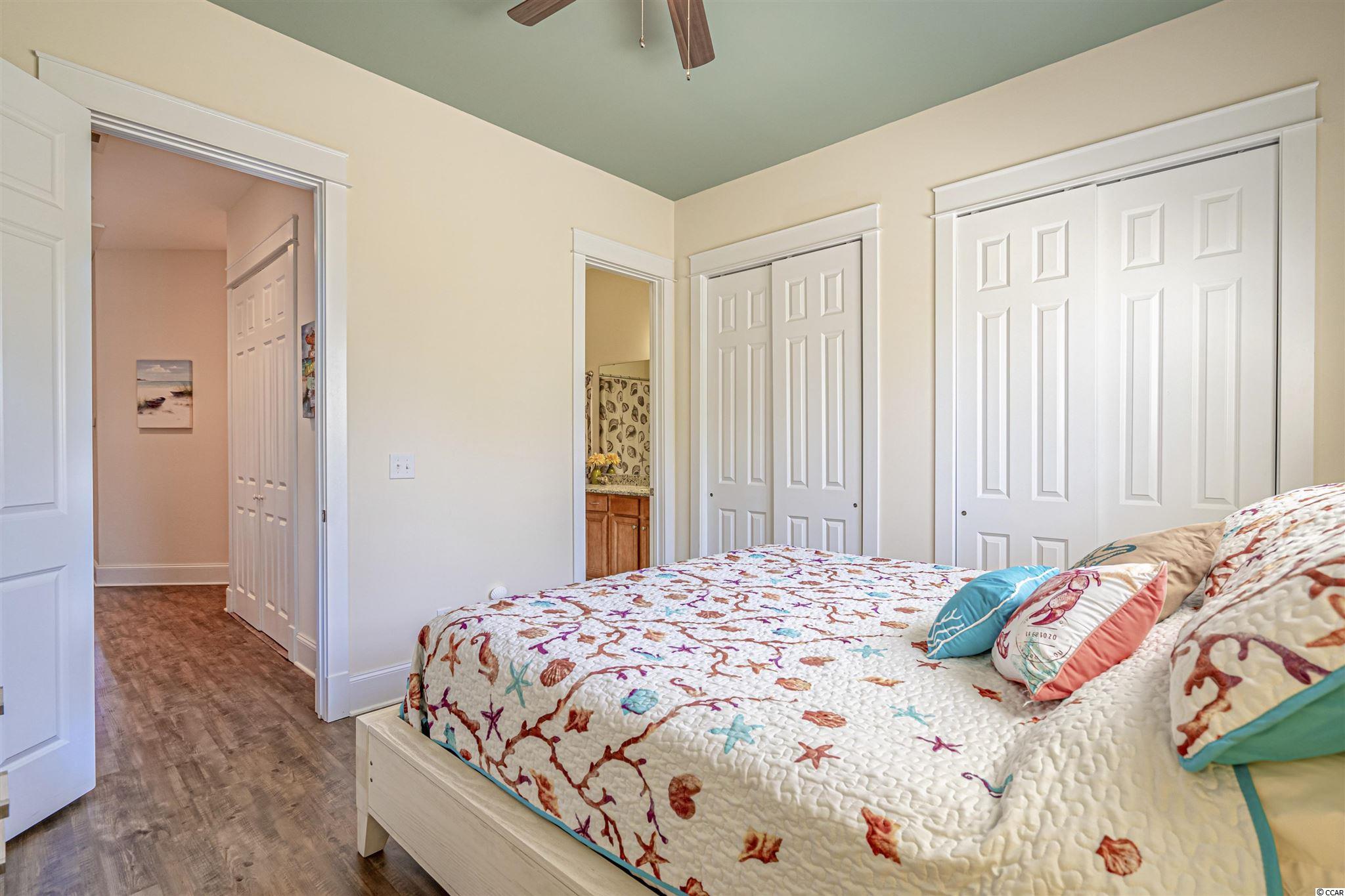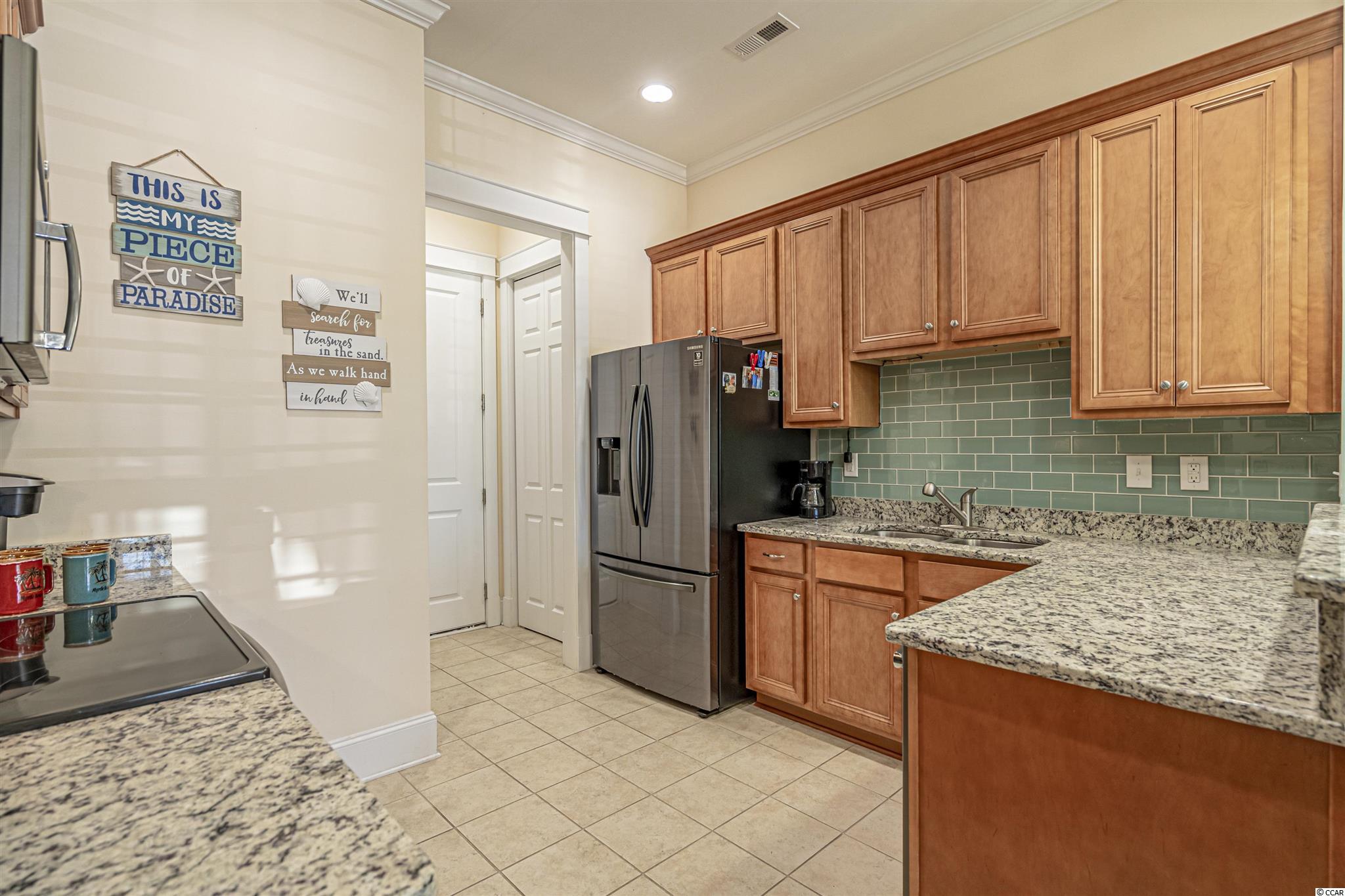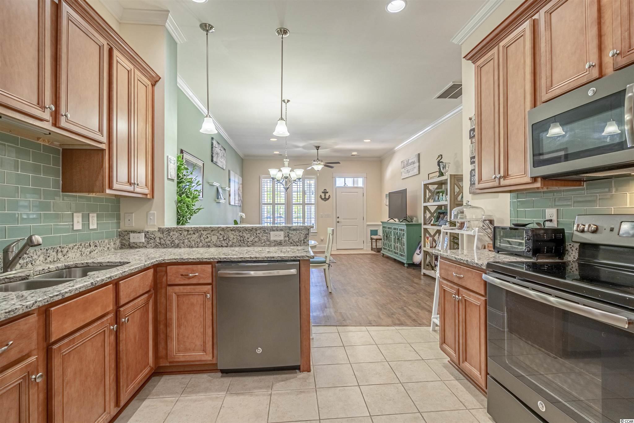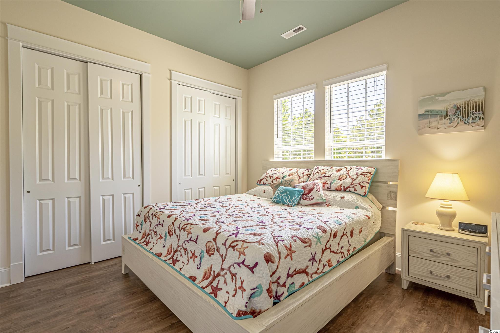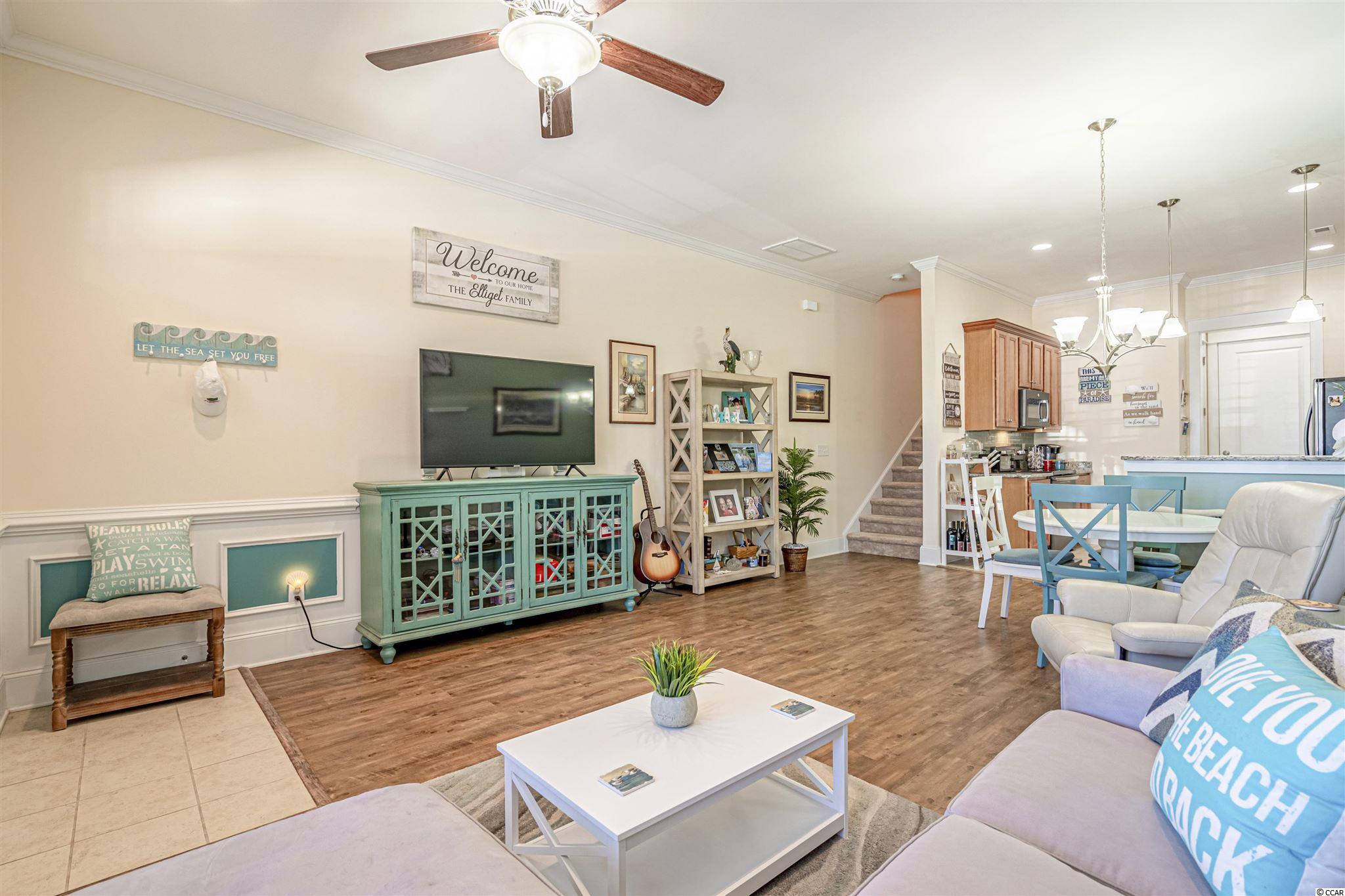 This immaculate and spacious townhouse in the quaint St. James Square community is only 1.3 miles from the beach! It is a former model home lightly lived in by the original owners. It was used as a second home for the last four years since it was built. The front porch welcomes you into the open plan living area on the first floor with a spacious living and dining room and upgraded kitchen. The 10ft ceilings throughout, crown molding, wainscoting and plantation shutters add a touch of class that makes you want to live here! As if the soft close cabinets, generous pantry space, granite countertops and impeccable appliances are not sufficient, the owners recently installed luxury plank flooring on both floors. From the kitchen youll access the half bathroom and 1 car garage. In the back of the home is parking as well as a driveway leading to the completely finished garage. If a neat and clean garage is what you need, this is it! Another unique feature of this home is the spacious hallway on the second floor where the full size laundry area is located. The almost 1,500 square feet of living space and tall ceilings offer a spacious feel throughout. The landing area is large enough for beautiful pieces of furniture and leads to the two master suites. One bedroom has a full size luxury ensuite with walk in closet, soaking tub and double vanities. The St. James Square community has its own main street with live-work townhouses containing an array of shops where you can grab coffee, sandwiches, and even a massage! A quick trip down 38th Ave N has you at the beach in no time and you can walk to the grocery store a stone throw away. Broadway at the Beach is 1 miles from St. James Square with restaurants and attractions to enjoy. Similar properties are scarce so dont wait but schedule a tour today! Live showings as well as live video walkthroughs are available at your convenience. The current owner is having a home built and requires a 6 month lease back.