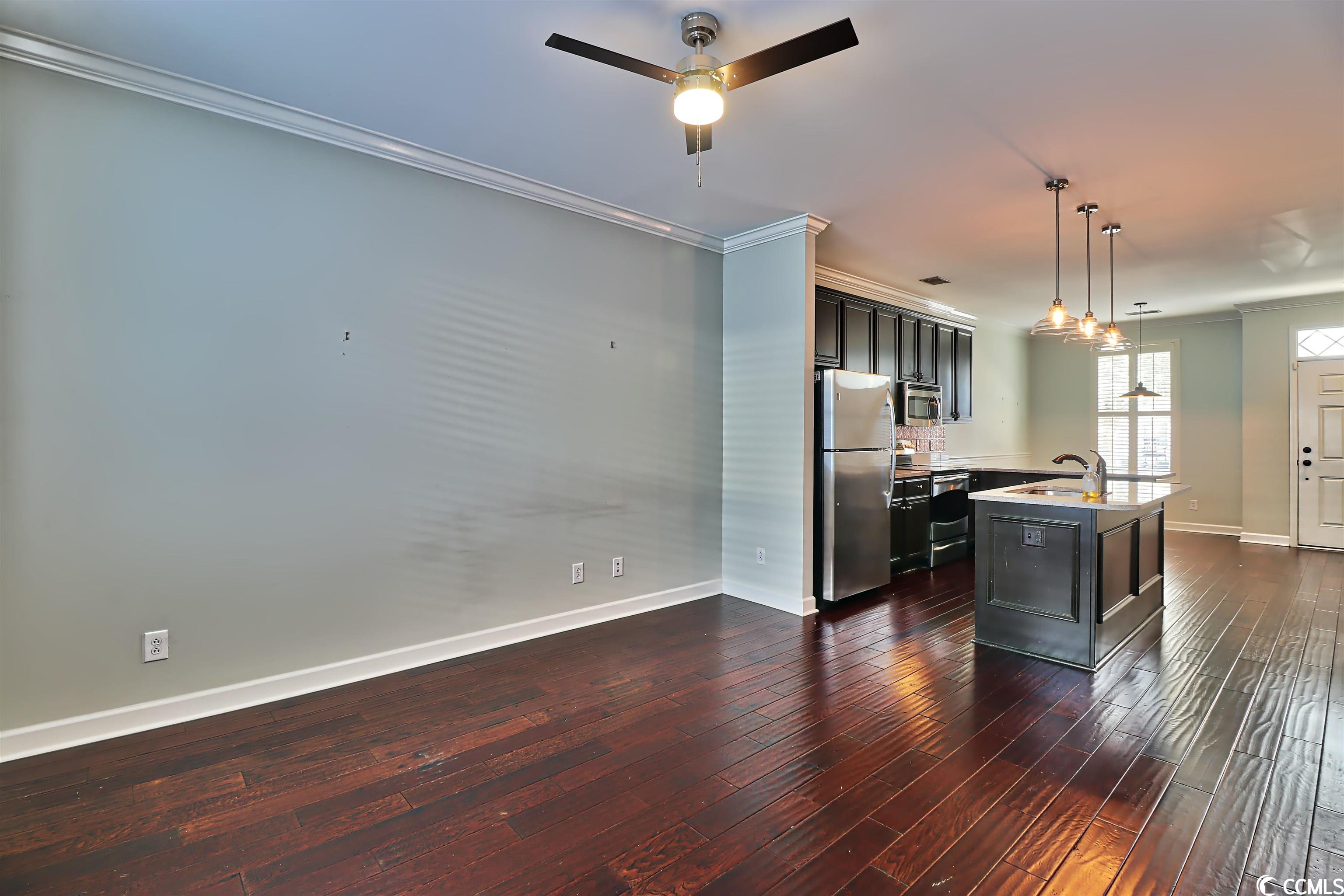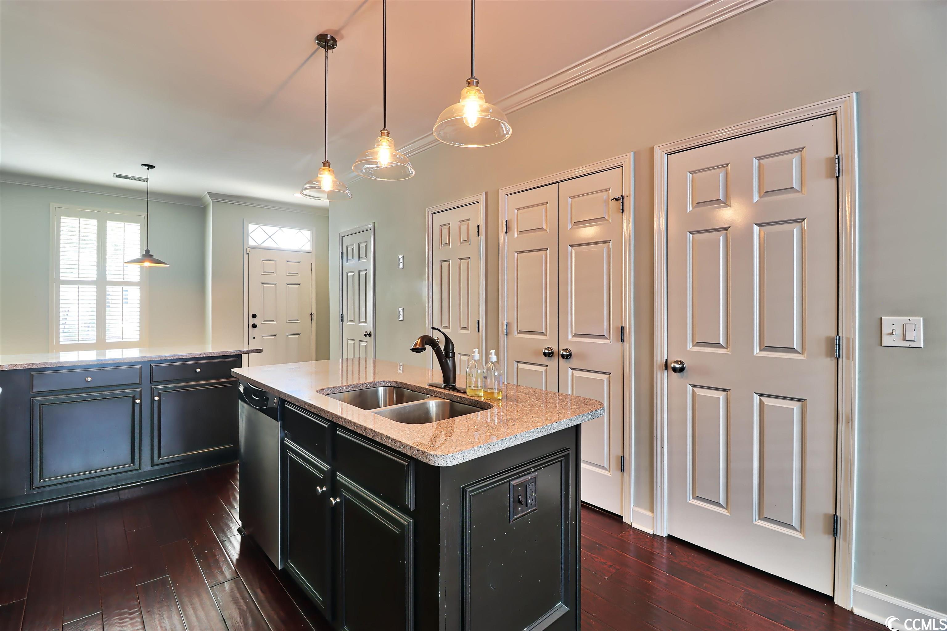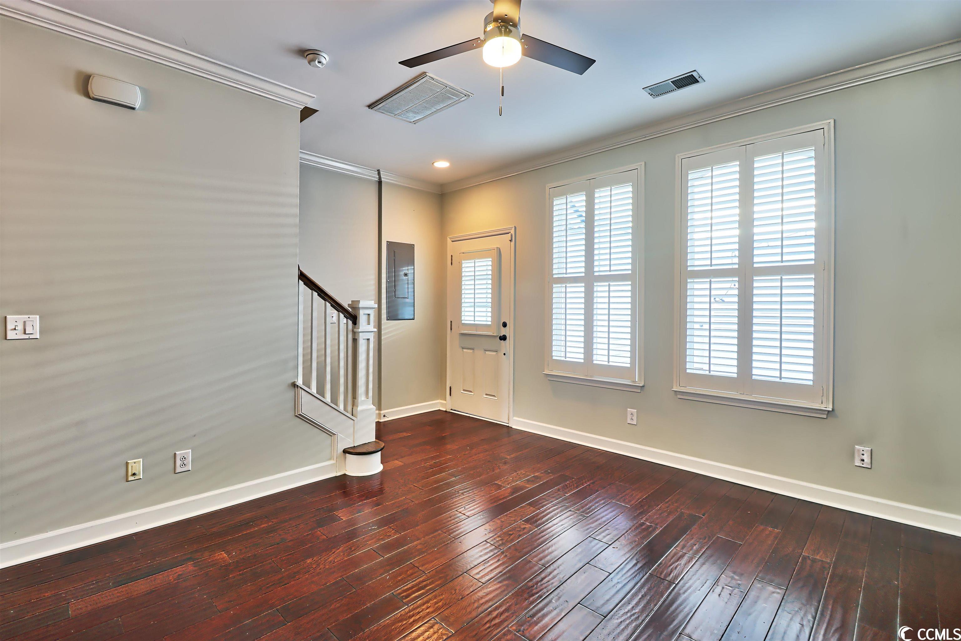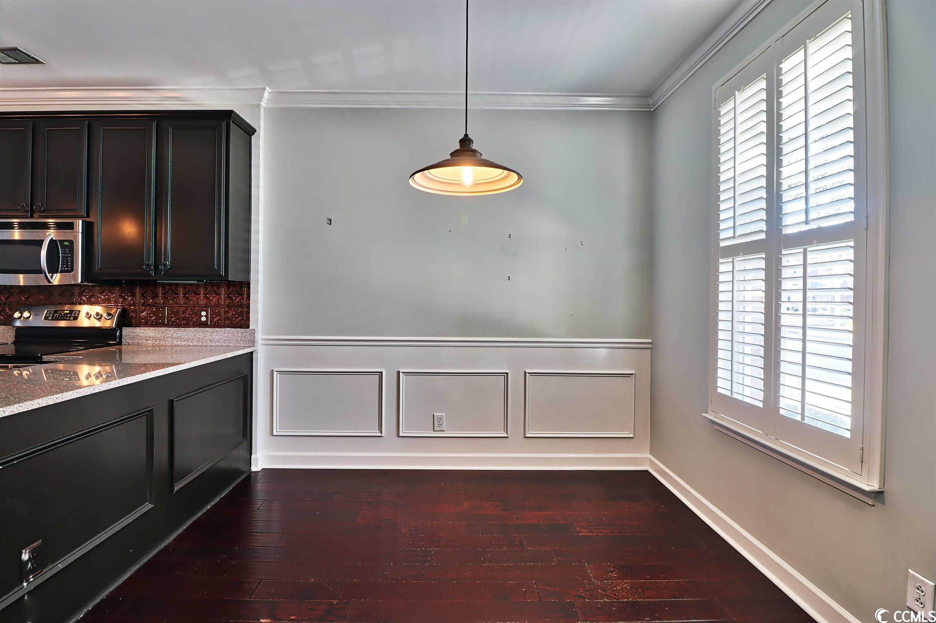 Welcome home! Unique townhouse in the heart of Myrtle Beach! At the end of a quiet street, this unit is in a walkable community. St. James Place includes restaurants, coffee shops, hair salons, a bank, and boutiques. This property features granite countertops, stainless appliances, a copper backsplash! Designer lighting and upgraded cabinets add to its charm. Hardwood flooring, neutral walls, plantation shutters and wood blinds are a bonus. The green space between the townhouse and the garage is very private and includes outdoor lighting. The garage is painted and the ceiling is finished. Call today for a tour! This townhouse is a gem.