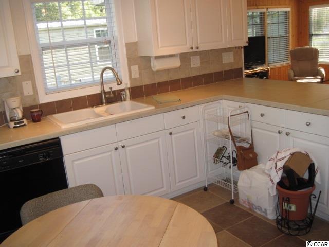 2 BR 1 BA manufactured home in Captain's Cove MHP, a quiet community for folks 55 & older, located in Murrells Inlet, SC, approx. 15 minutes South of Myrtle Beach. Community has a clubhouse & pool, with lots of activities for residents who wish to participate. Near Murrells Inlet's famous waterfront restaurants & close to Huntington Beach (Oceanfront) State Park & beautiful Brookgreen Gardens. Also near lots of golf courses & many types of entertainment. Only minutes from a modern hospital & doctors' offices. This home was renovated, and the following improvements were completed in 2010 and 2011. Original subflooring was replaced with plywood, laminate floor covering was then installed in liv rm and bed rms, ceramic tile was put in kitchen, hall, and bath room. Walls were redone in 5/8's drywall. Kitchen was updated with new cabinets, counter tops, sink, faucets, lighting, microwave above stove, and thermo-pane windows. An addition to liv rm was added, increasing it's size to 14x21, 4 thermo-pane windows, a new insulated door and storm door were also added to liv rm. Bath had new walls, floors, toilet, sink, cabinet, mirror and lights replaced. Heat pump was replaced at that time as well. Then in 2015 a new 9x11 covered back porch was added. A large 9x20 storage building also goes with home. This home is in excellent condition and is priced to sell, a must see.