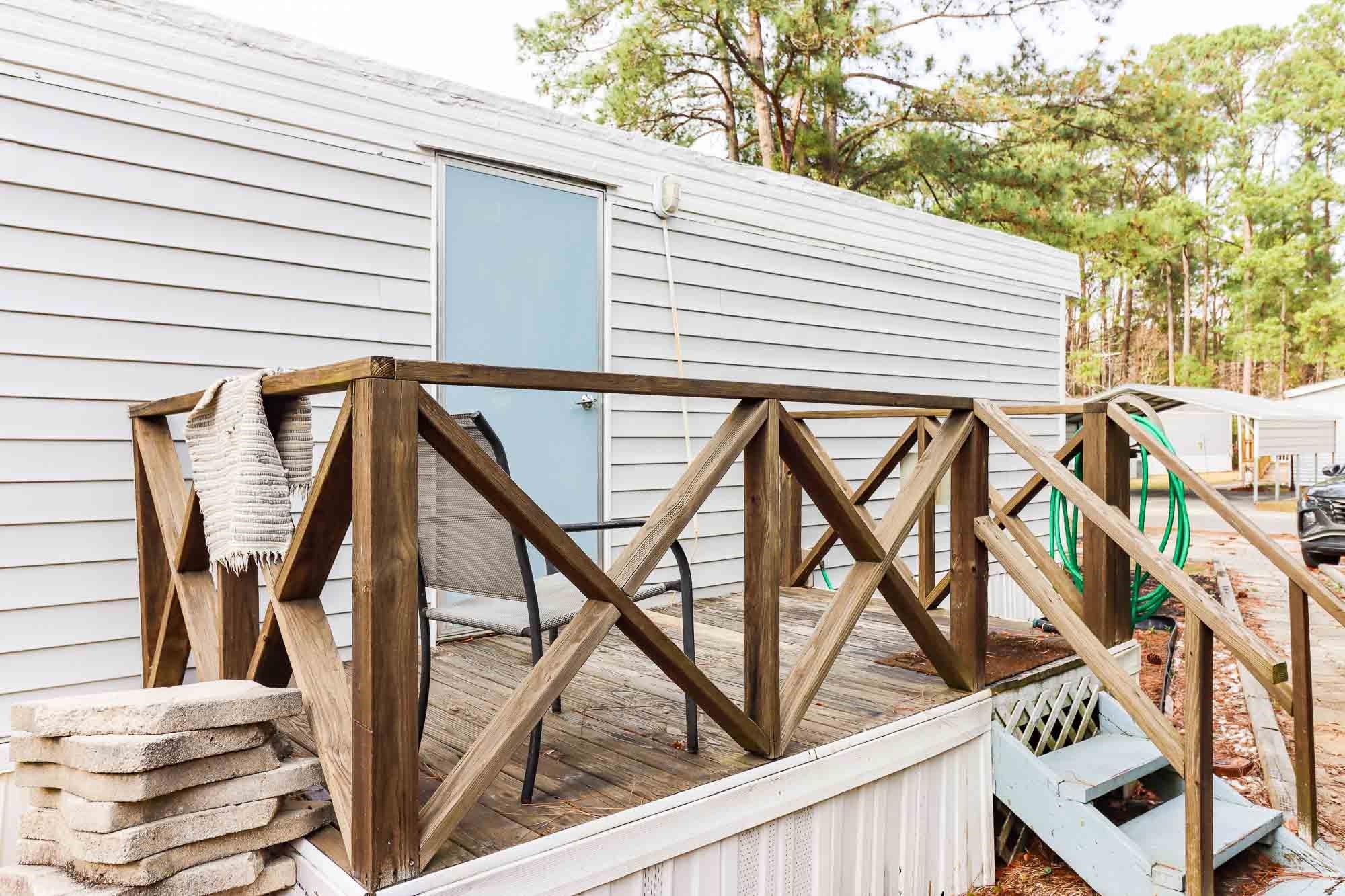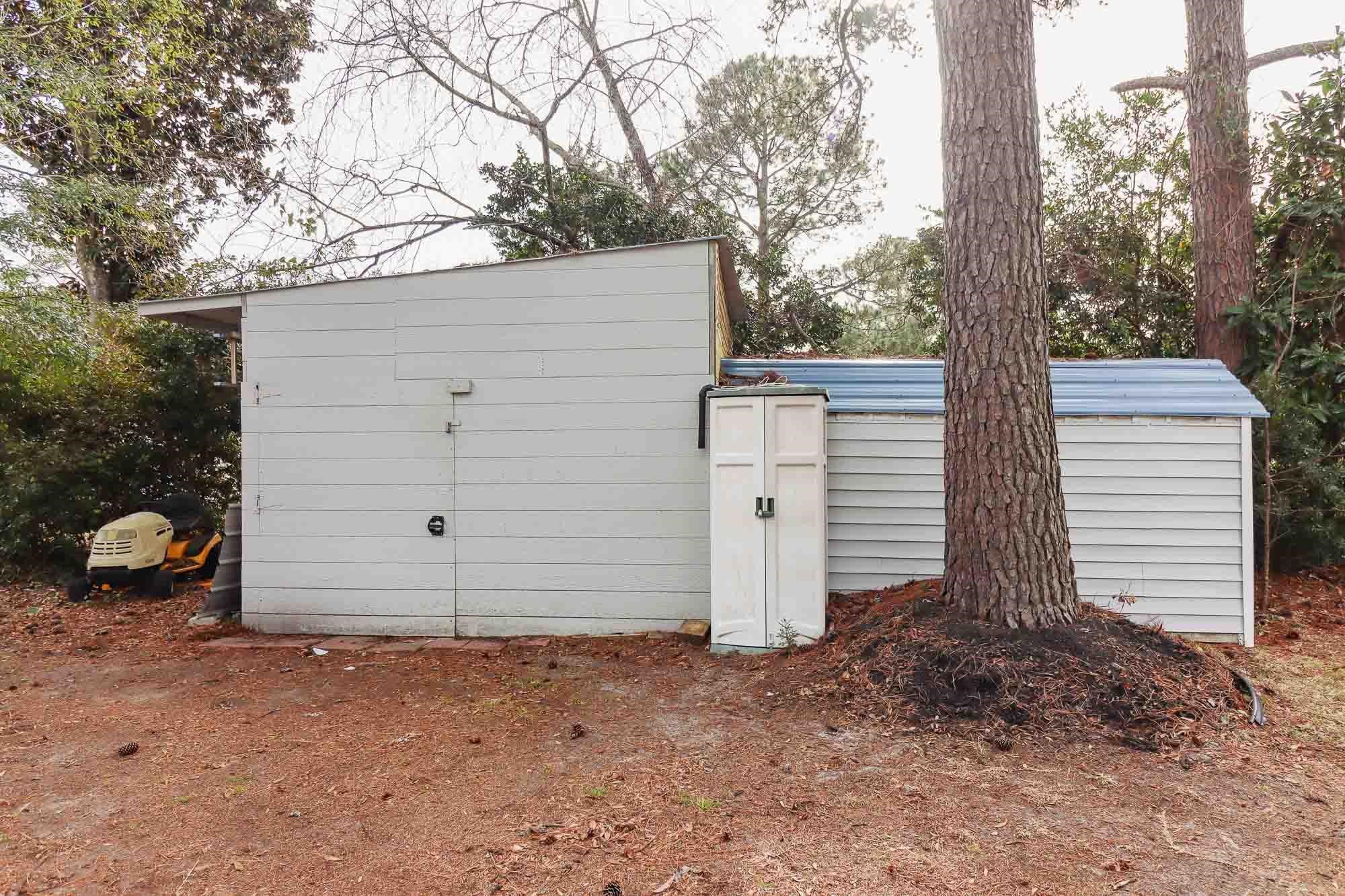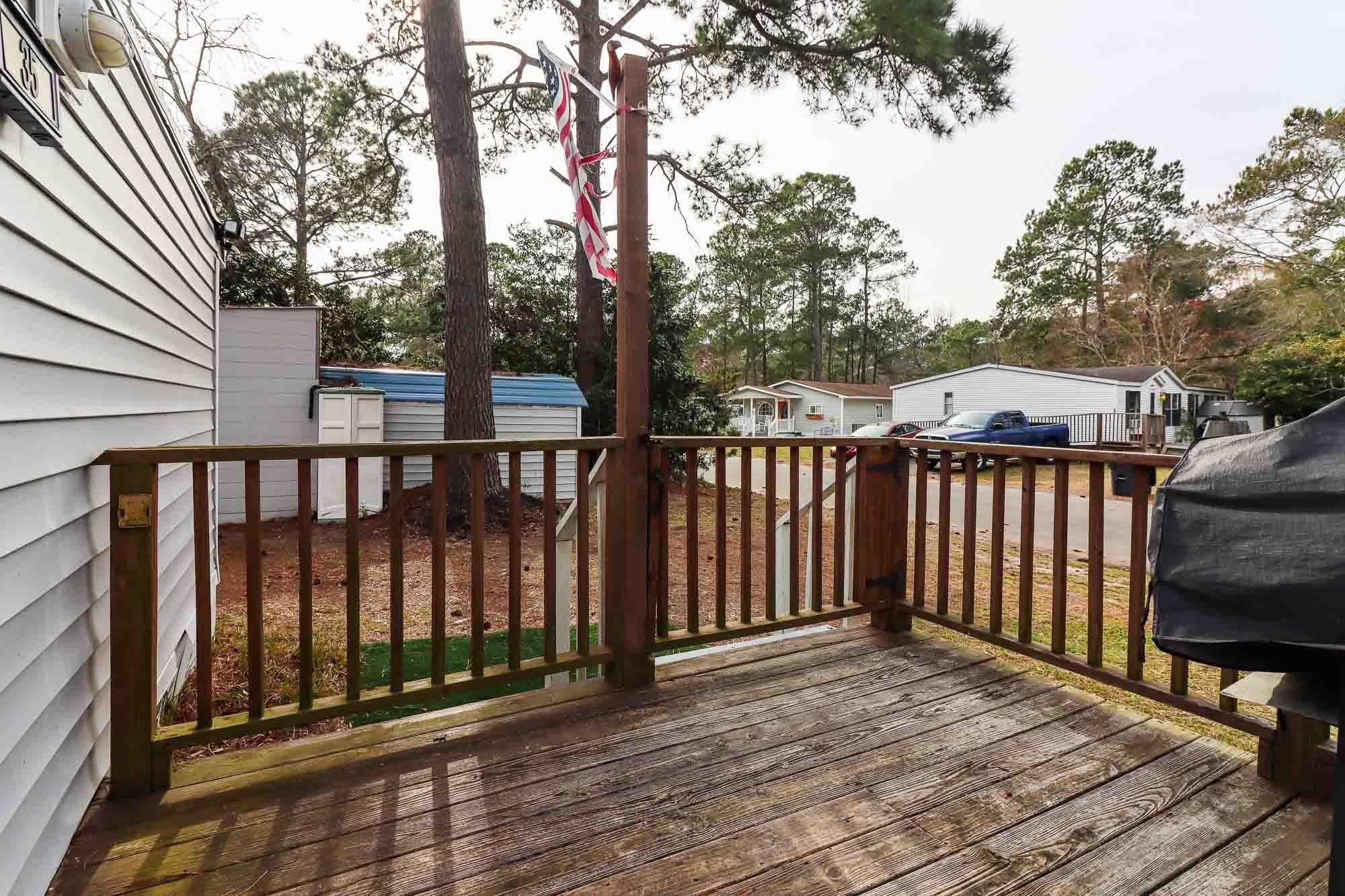 Welcome to 35 Offshore, a 2-bedroom, 1-bathroom home in the picturesque Windjammer community of Murrells Inlet. This residence offers a blank canvas, inviting you to unleash your creativity and make it your own. As you step inside, the open living room welcomes you with its airy atmosphere and seamless flow to the rest of the home. The kitchen boasts generous counter space and ample cabinet storage. One of the bedrooms is thoughtfully designed to allow for the addition of another bathroom, providing flexibility and convenience. A separate entrance by the washer and dryer hookups adds to the practical layout of the home. Step outside, and you'll discover two separate decks, creating ideal spaces for outdoor entertaining or simply unwinding and enjoying the surrounding nature. Additionally, a sizable storage shed adds extra convenience for your storage needs. Residents of Windjammer can take advantage of a sparkling pool, offering a refreshing retreat on hot summer days. Conveniently located off 17 Business, this home is just minutes away from the beach, The Murrells Inlet Marshwalk, Brookgreen Gardens, The Market Commons, exceptional golf courses, shopping destinations, and a plethora of dining and entertainment options. Don't miss the opportunity to make this charming property your own sanctuary in the heart of Murrells Inlet. Book your showing today!