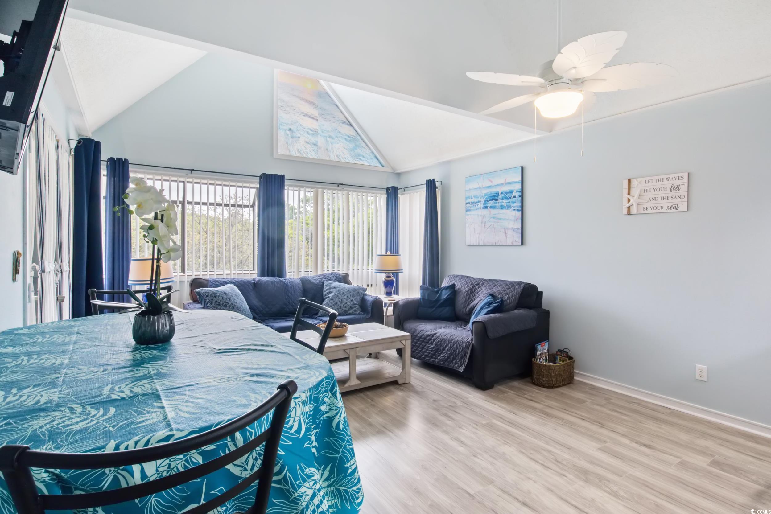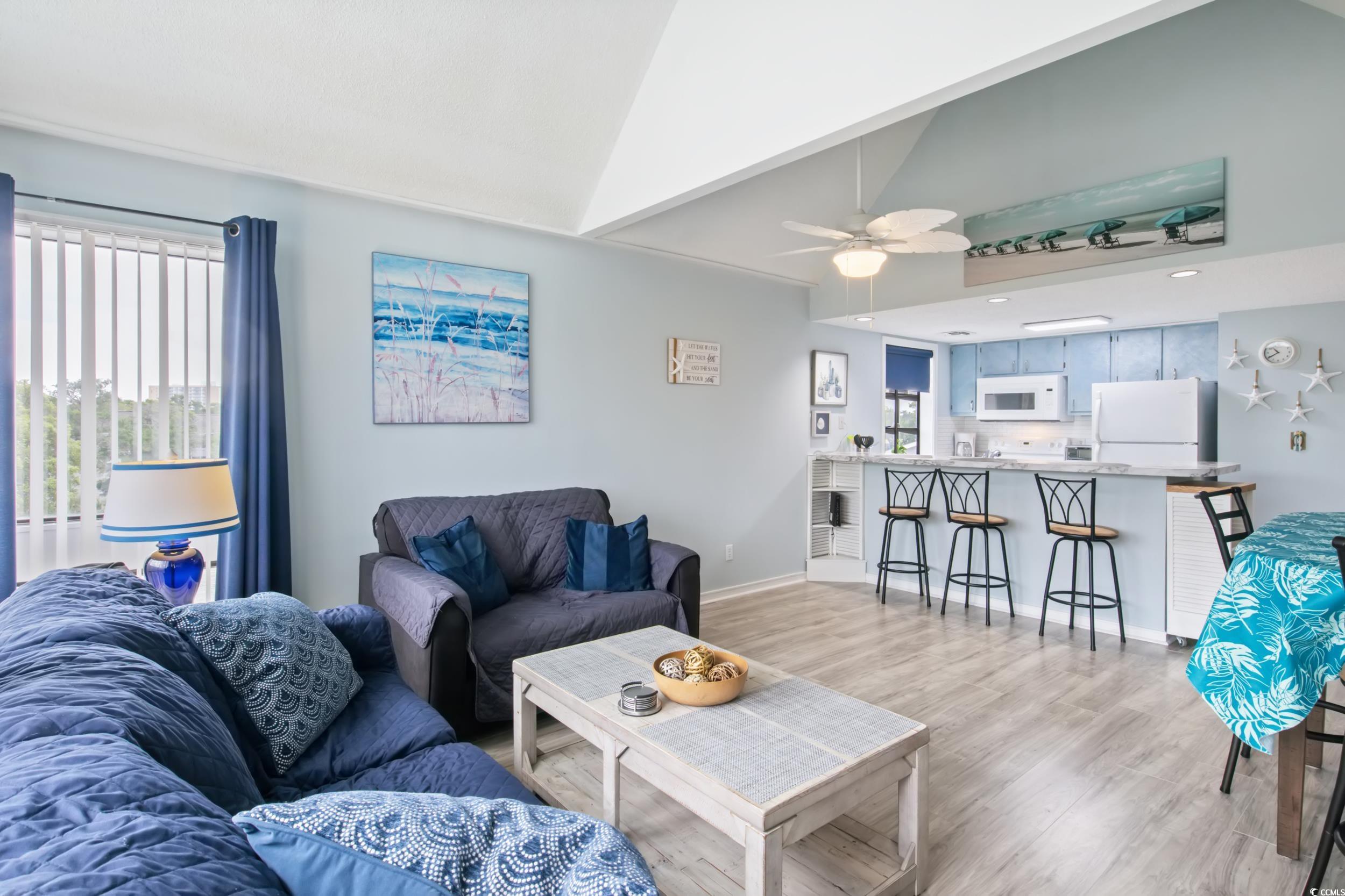 Exceptionally Nice 2/2 condo a block from the ocean. Fully furnished with large windows and vaulted ceilings, lots of natural light. This is a turnkey condo with great potential as rental. 3 blocks to the longest wooden pier on the east coast. This community is known for its amenities... 2 pools, sauna, steam room, playground by picnic area and grills. Tennis court, Workout Rm, Onsite Sports Bar & Grill (Harry the Hats) and an arcade with pool tables & video games. 4 minutes to Barefoot Landing, Tanger Outlets, Bass Pro Shop, and Walmart. Priced to Sell!