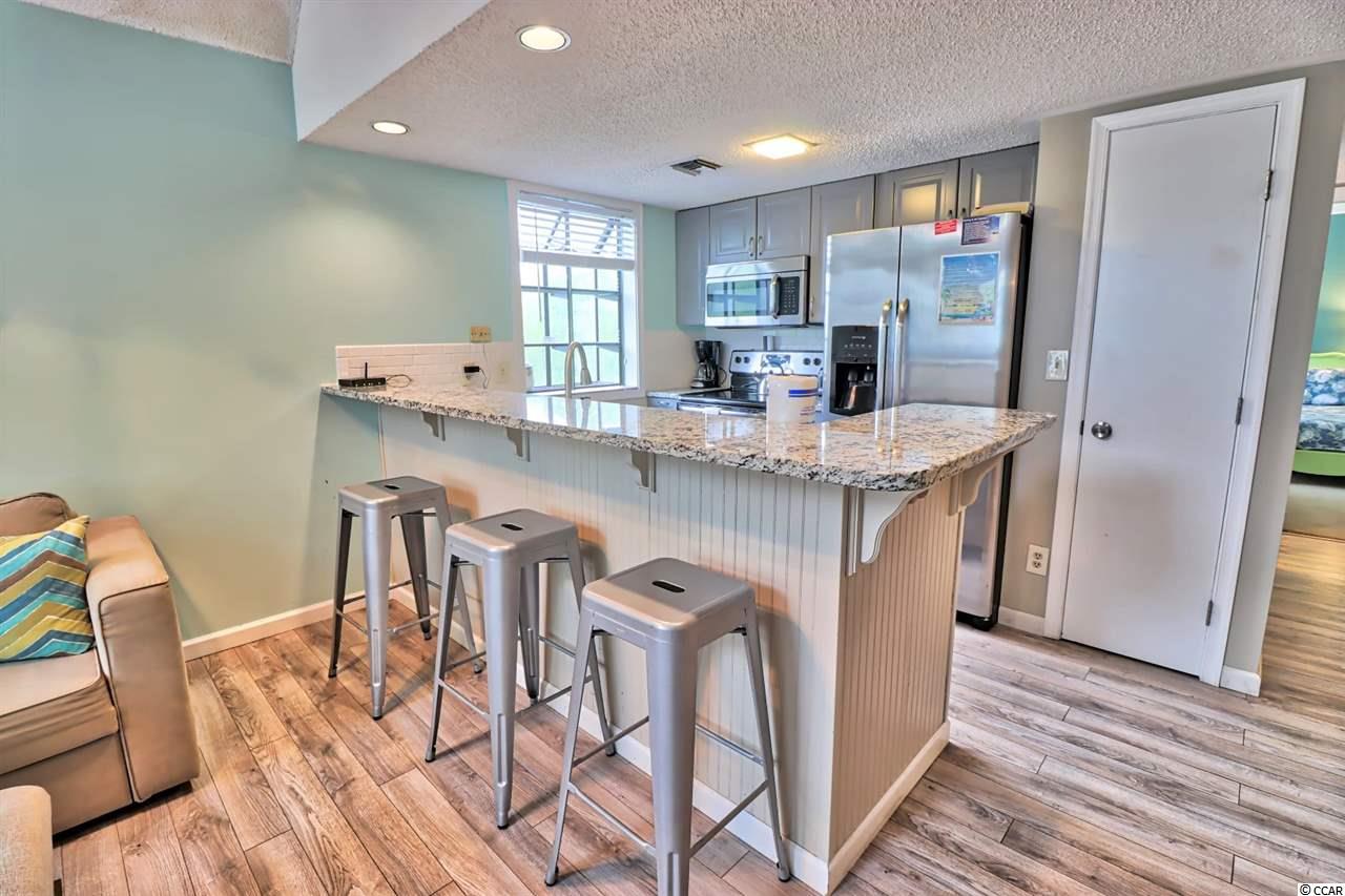 This Fully furnished 2 bedroom 2 bath is the nicest in the community. Beautifully updated with upgraded cabinetry, granite and stainless steel appliances. HVAC was replaced in 2016. Owners may have a golf cart, pets, and motorcycle. The complex has an on-site restaurant, tennis courts, numerous grilling areas, two pools, Jacuzzi, sauna, steam room, and playground. Harry the Hats also has a large indoor arcade with pool tables. This is a turnkey opportunity to enjoy life at the beach in the Shore Drive area of Myrtle Beach! This is a perfect getaway or investment property and is within walking distance to the beach.