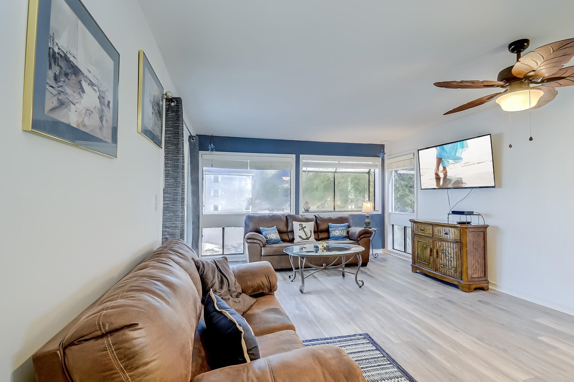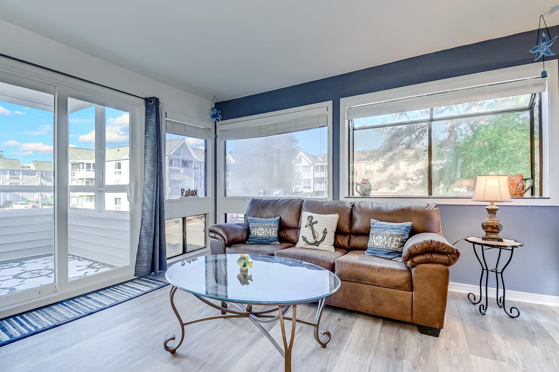 Priced to sell, this exceptionally clean unit in the popular Arcadian Dunes is just a short walk to beach and only steps to the pool. Open and bright end unit with lots of windows and natural light and used only as a 2nd home. Recent updates include new HVAC in 2021, smooth ceilings (no popcorn), new sliding glass balcony door, new LVP flooring in living area, new ceiling fans, and new lighting and fans in baths. Arcadian Dunes, a ""true"" beach community, has great amenities including onsite ""Harry the Hat's"" restaurant, two large outdoor pools, sauna, steam room, hot tub, multiple picnic/ grilling areas, tennis court, playground and fitness room. Located close to Tanger Outlets, Barefoot Landing, Apache Pier, Bass Pro, Ocean Annie's plus much more. Walking distance to lots of local dining and entertainment.
