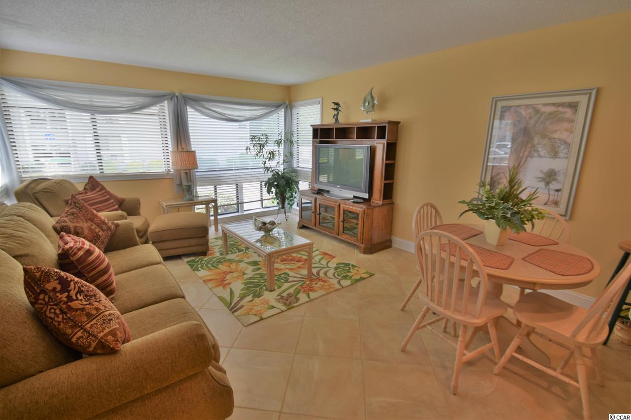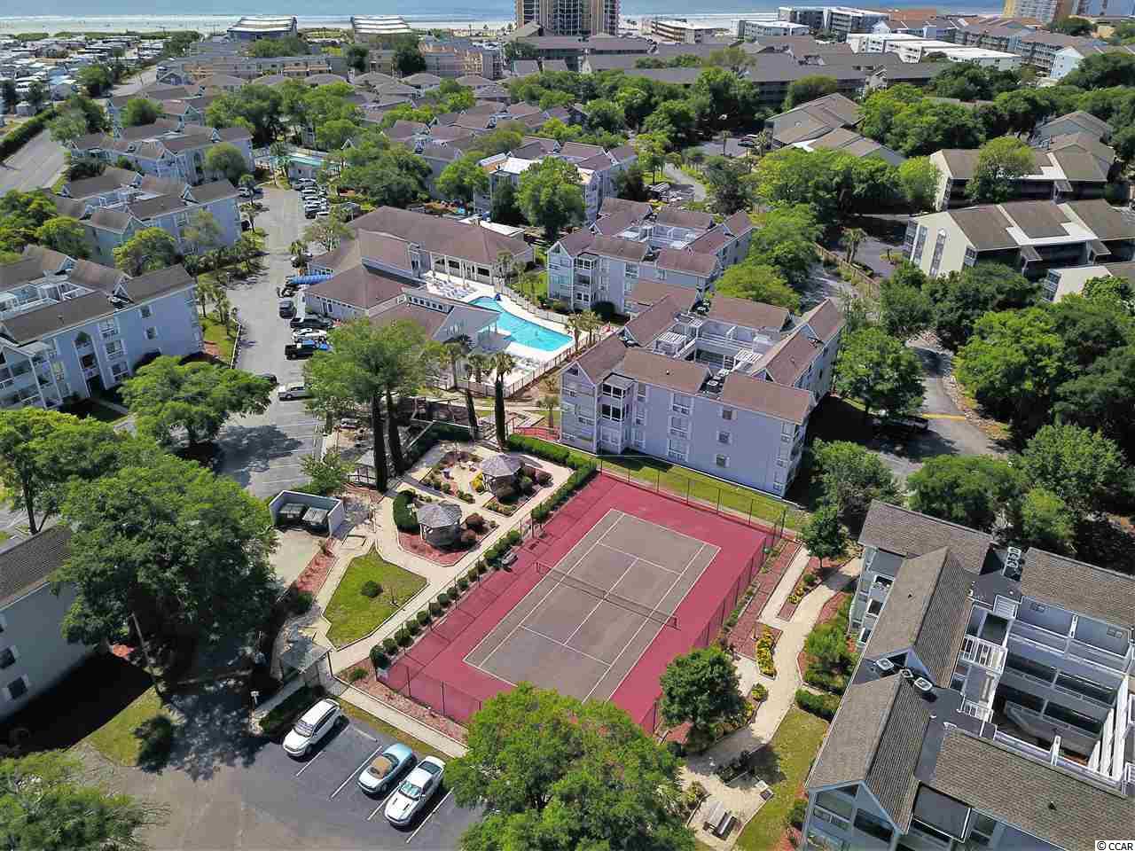 Immaculate First Floor unit with 2 bedrooms and 2 bathrooms in the popular Arcadian Dunes. This Property has amazing amenities; tennis court, grilling areas, 2 pools, hot tub, sauna, on site Bar & Grill, horseshoe pits, playground, and much more. The beach is only one block away with sidewalks that lead you to the beach access. This unit has large tile flooring throughout, tons of windows letting in natural light, bright colors, and plenty of storage. Two of the windows are bumped out allowing you to custom decorate this area with your personal flair. Both bathrooms have custom tile showers, beautiful cabinets, granite counters, and updated fixtures. The stack washer and dryer are located by the 2nd bathroom. The kitchen comes equipped with granite counters, tile back splash, black appliances, tile wrapped breakfast bar, and a tile accented wall to flow with the back splash and bar. There is a balcony that can be accessed from the large master bedroom and the living room. This unit is being sold furnished. Great for a second home or an investment property. You will definitely get that ""I'm at the Beach"" feel when you enter this unit and the Arcadian Dunes Property. Traffic is very minimal in this location because Lake Arrowhead Rd turns into Shore Dr which dead ends, keeping people from just driving through. Also this is a great location for walking to restaurants, bars, shopping, the Apache Pier, and the World Famous Ocean Annie's. All information deemed reliable but not guaranteed. Buyer responsible for verification.