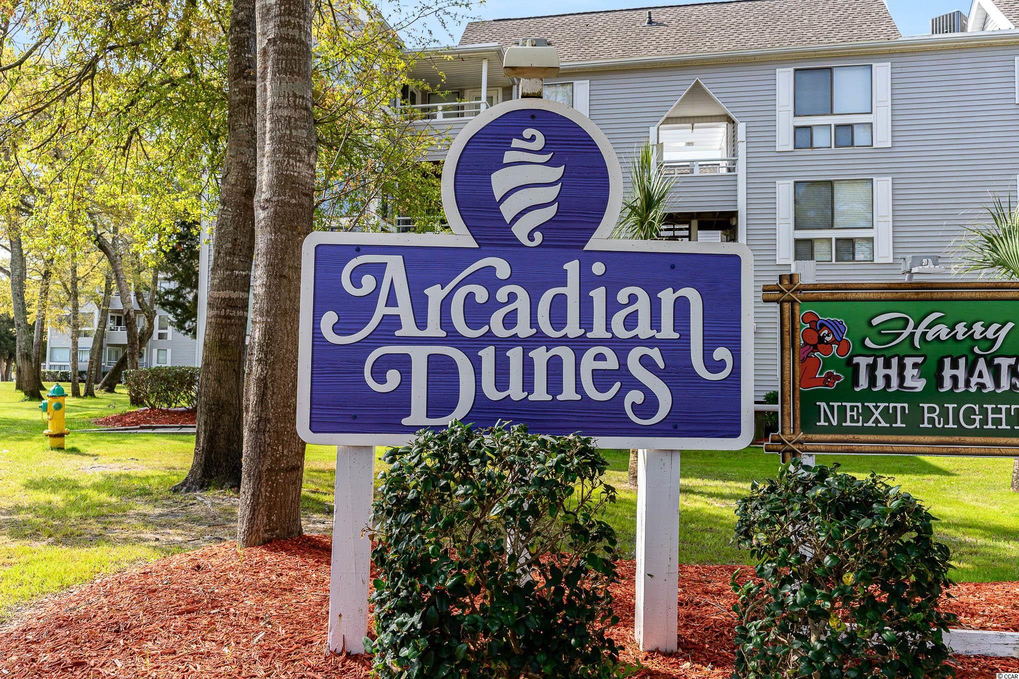 Restaurant Row area! Turn toward the ocean on Lake Arrowhead Rd at the Galleria shopping center (Burger King on corner). Straight through the stoplight at Kings Rd (Finn McCools on the corner), Arcadian Dunes is on your right. Go in 2nd entrance to Arcadian Dunes (will see sign that says Harry the Hats) The office will be right in front of you. Building 19. Call Dan with any questions 843-222-0700.Courtesy of Latitude 34 Realty