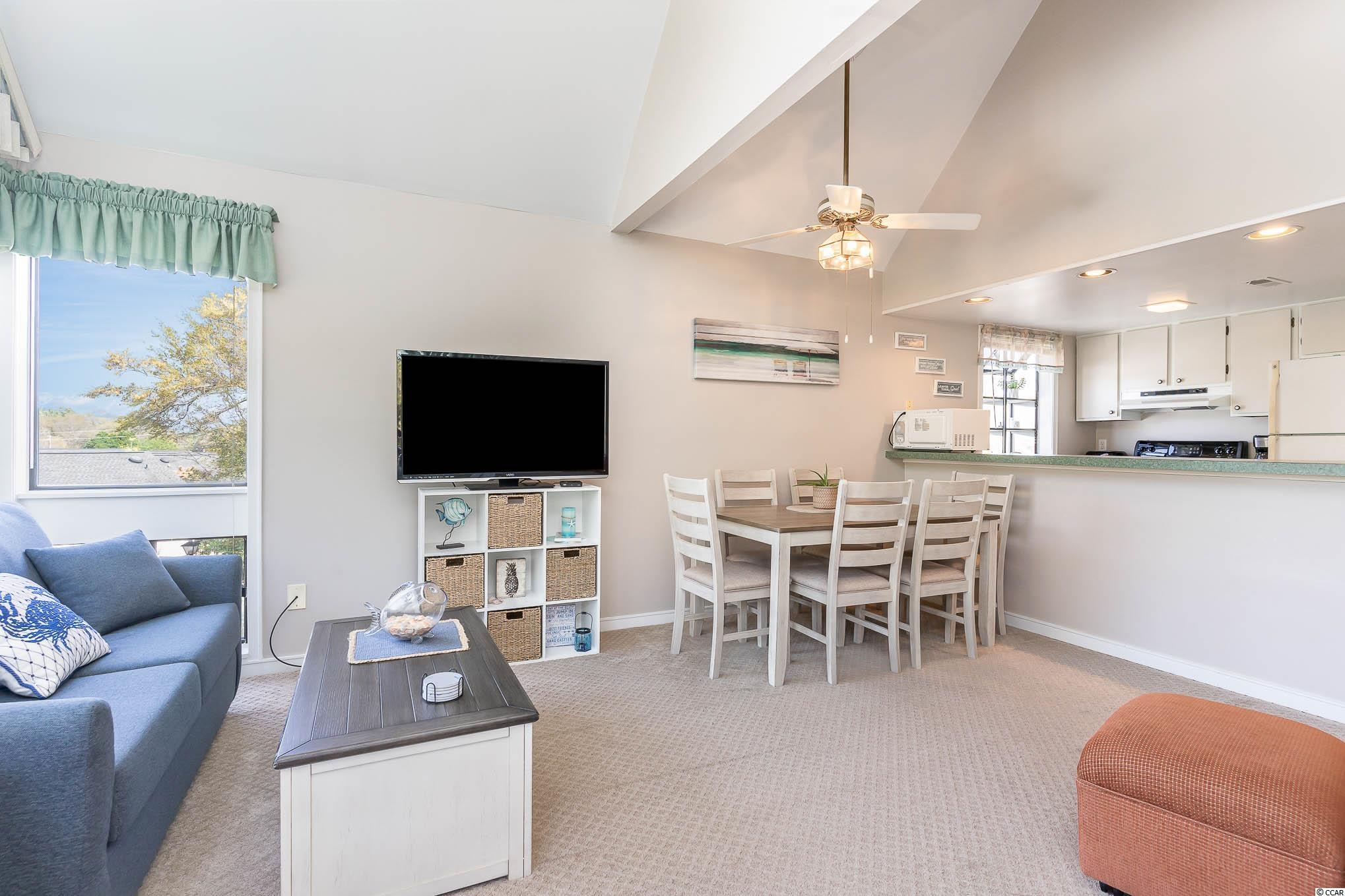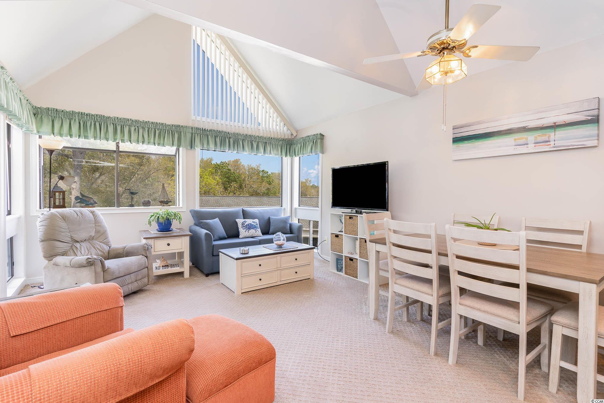 Nicely furnished, Bright and Spacious 2BR / 2Bath condo, with Vaulted ceilings and Large windows. The balcony overlooks a peaceful tree-line. Located 2/3 blocks from the ocean in Arcadian Dunes. This is the beach life! The community has 2 Pools, a Club House with a Sports Bar and Grill, Bar service on the main pool deck, an Arcade. Sauna & Steam Room, Fitness Center, Tennis Court, 7 or 8 BBQ areas