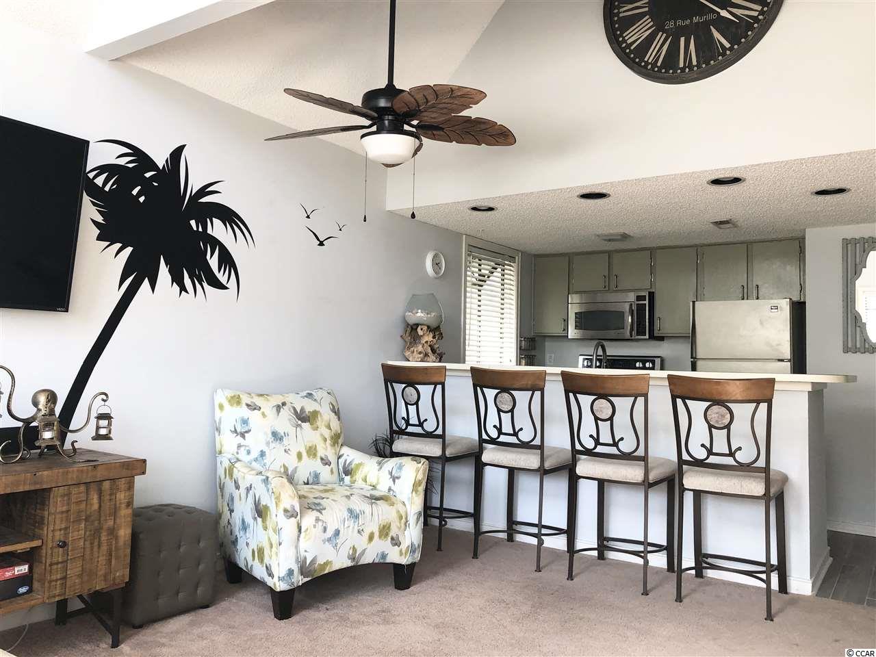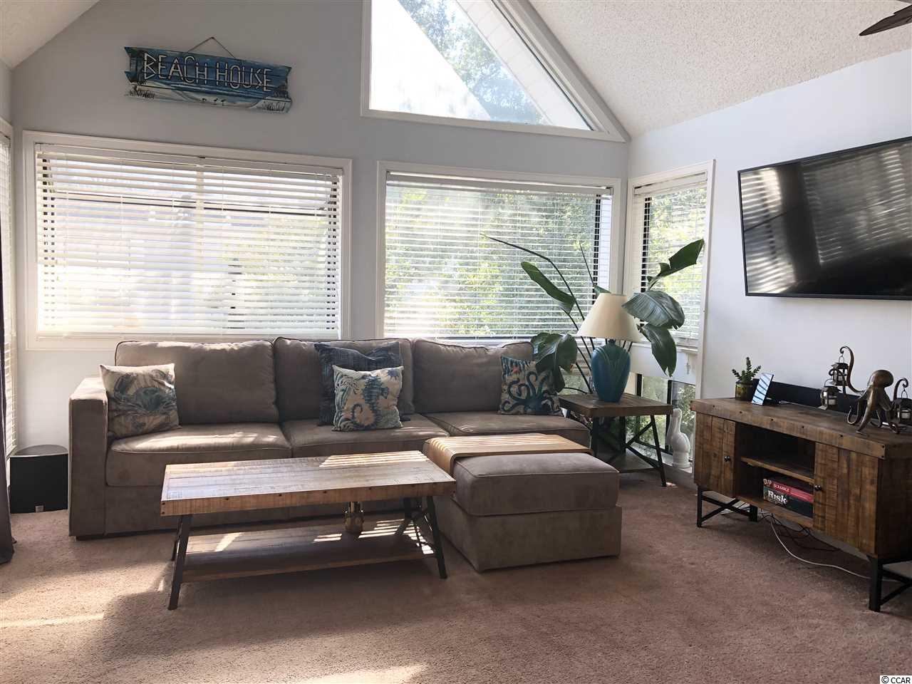 Enjoy the Breeze on a Golf Cart Ride or Walk to The Beach from this Spacious Tastefully Furnished 2 Bedroom 2 Bath condo! Enter through the Large Tiled Foyer and into the Vaulted Ceiling Living Space with Huge Beautiful Windows and Abundance of Natural Lighting! Off of the living room is a Cozy Screened in Porch, which is also accessible through the Master Suite! Master Suite includes Vaulted Ceilings, Walk in Closet, Queen Size Bed, Spacious bathroom with Whirlpool Tub and Tiled Shower! Guest room boasts high ceilings, twin bed as well as a bunk bed! Conveniently do your Laundry in the Brand New Washer and Dryer provided! Amenities include Onsite Restaurant with Bar, Gym, Outdoor Pool, Hot Tub, Sauna, Steam Room, Playground, Tennis Court and Outdoor Grilling!