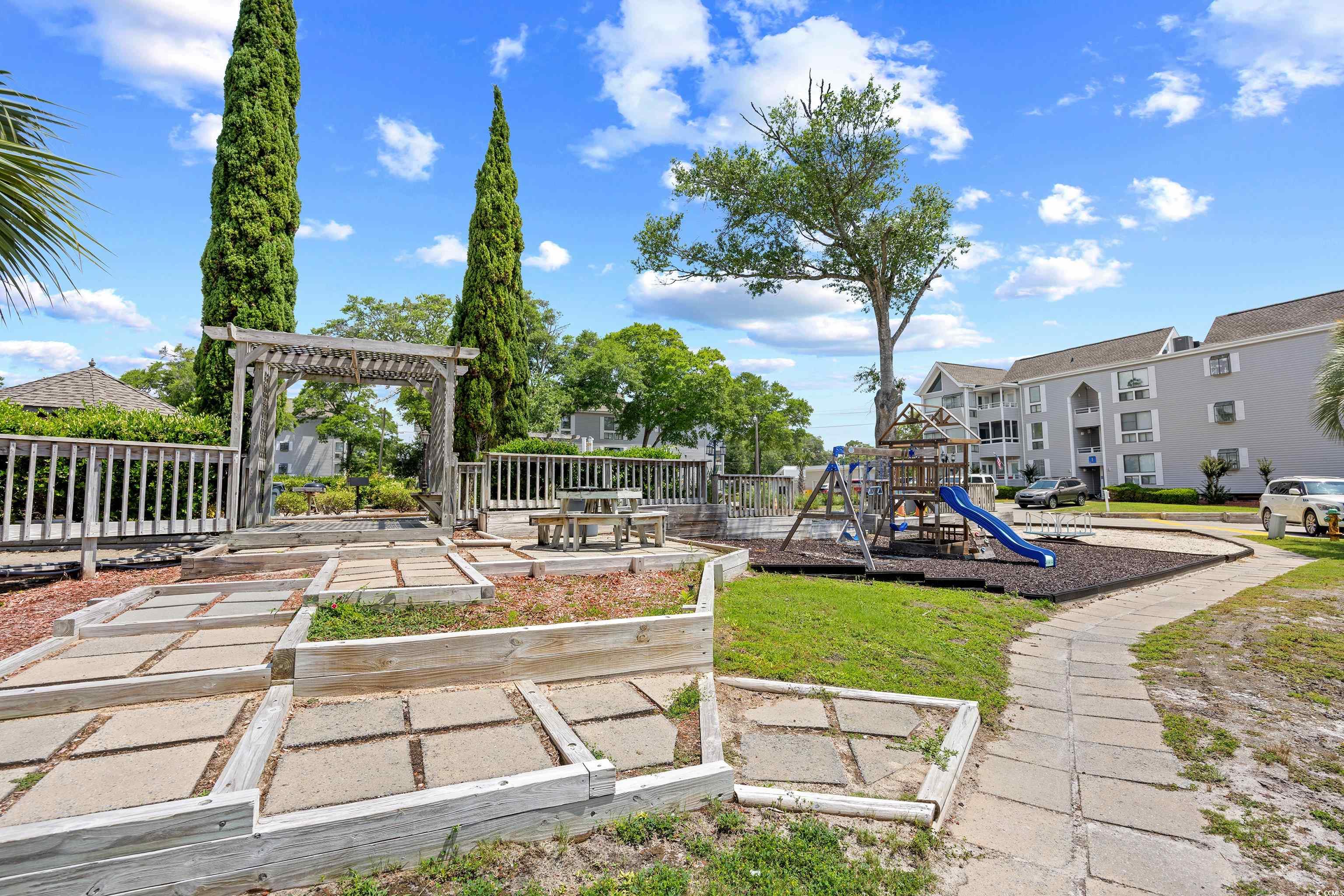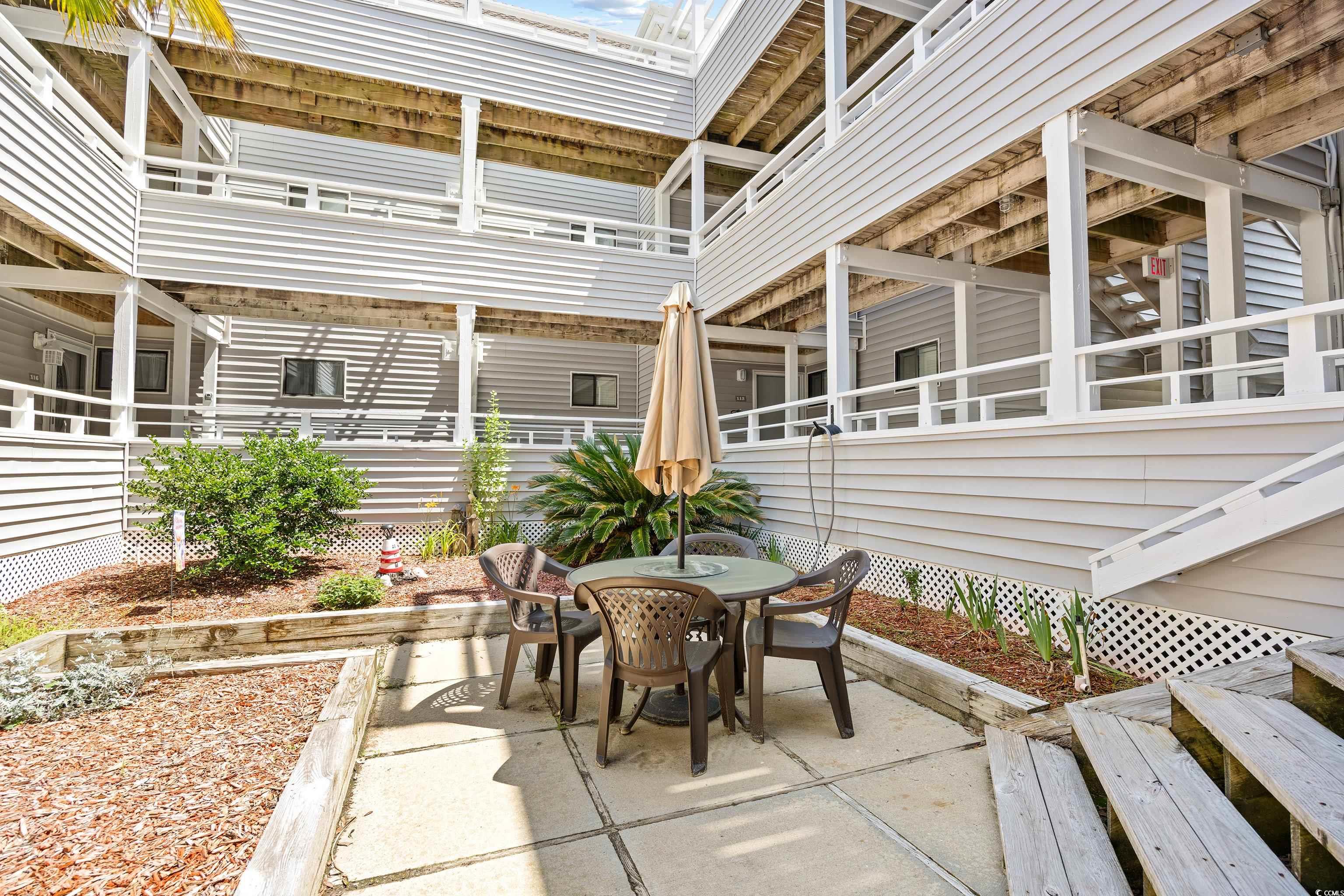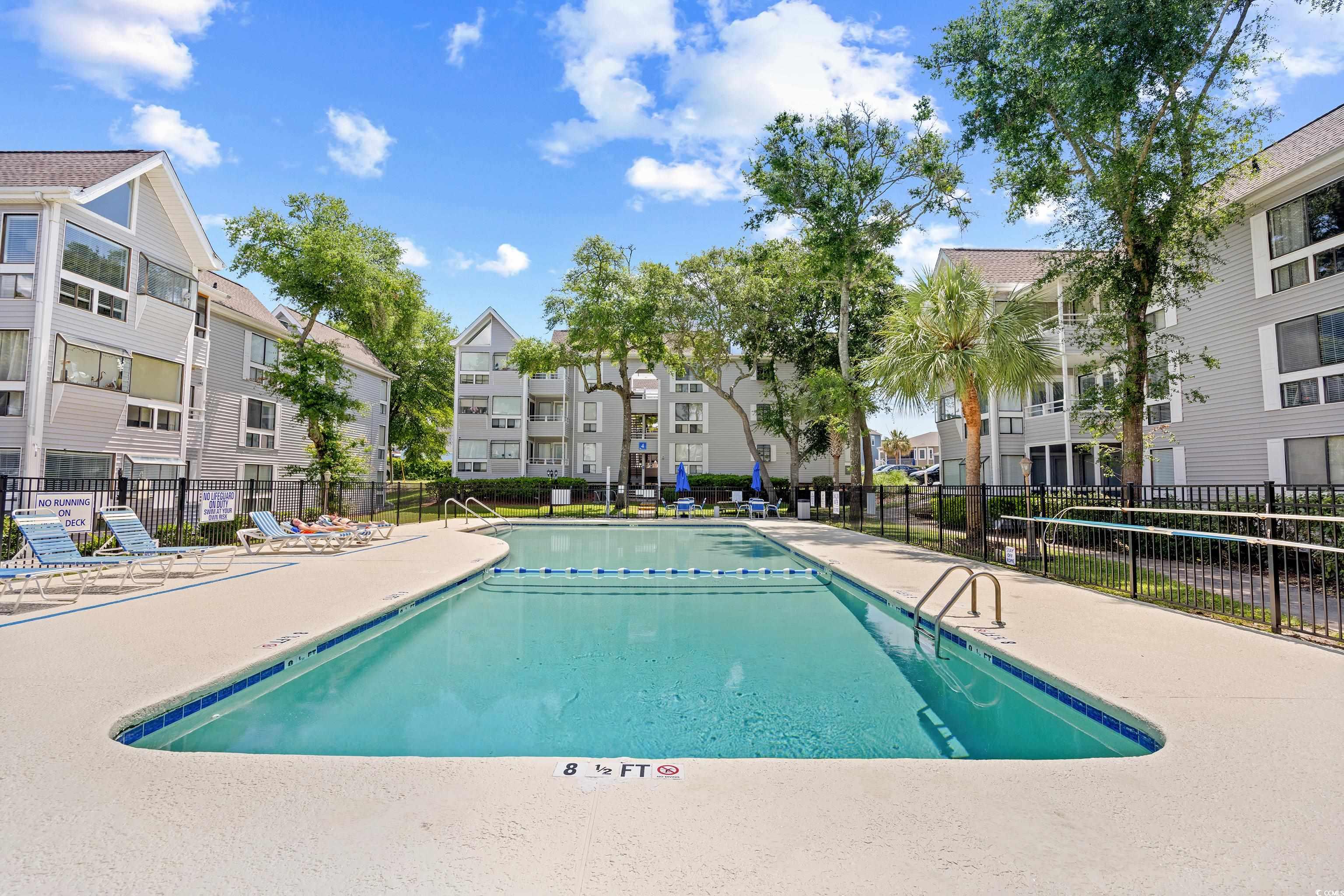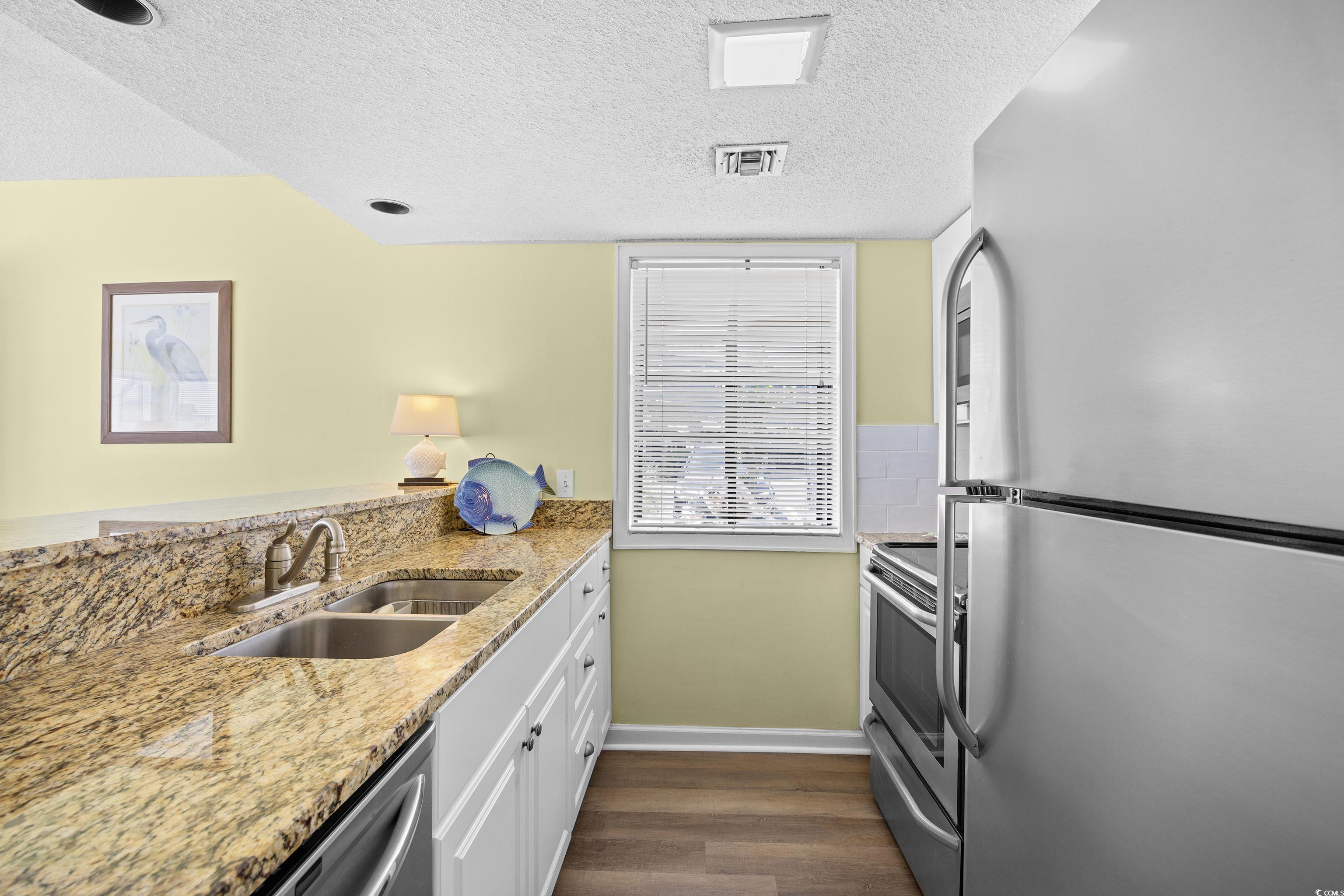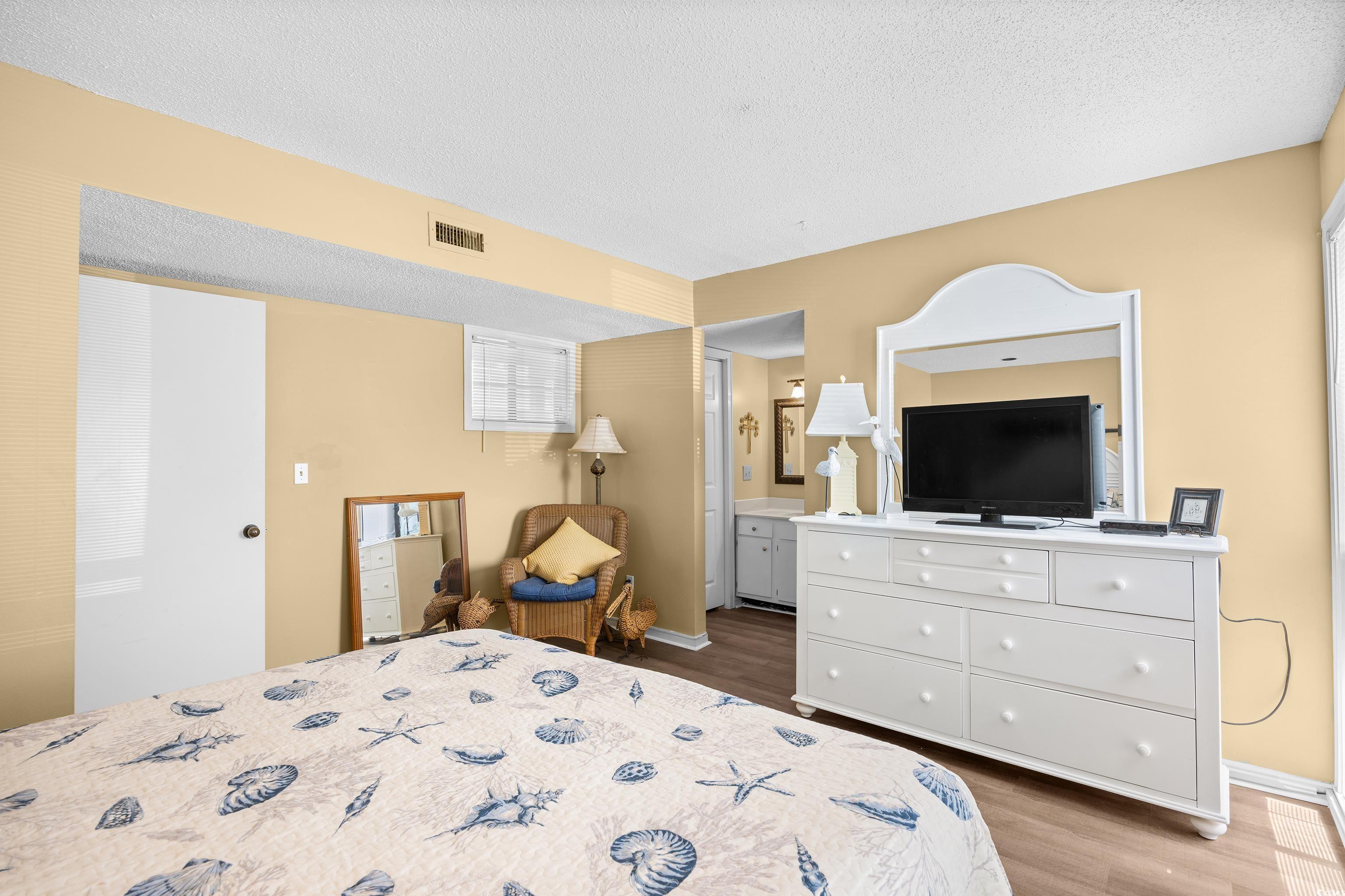 Updated and ready for summer and a new owner! See this move-in ready first floor condominium, fully furnished, with new LVP flooring in all rooms (tile in baths), and a great layout. Enter the foyer and there is a large storage closet on the left. Beyond is the primary suite with full bath and new door to porch. Back to entry and living/dining/kitchen and see upgraded cabinets, granite counters, and stainless appliances. The living/Dining area is nicely furnished and there is a new sliding door to the porch. The 2nd bedroom and bath are ready for your family or friends. Arcadian Dunes is loaded with amenities including two pools, one of which is directly behind building 4, a hot tub, sauna, steam room, tennis courts, and a playground. On-site picnic areas with grills and Harry the Hat Bar & Grill, don't have to leave the neighborhood! But you will want to! Check out Apache Pier, Ocean Annies, and Broadway at the Beach, and the Beach!!