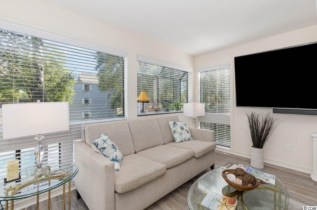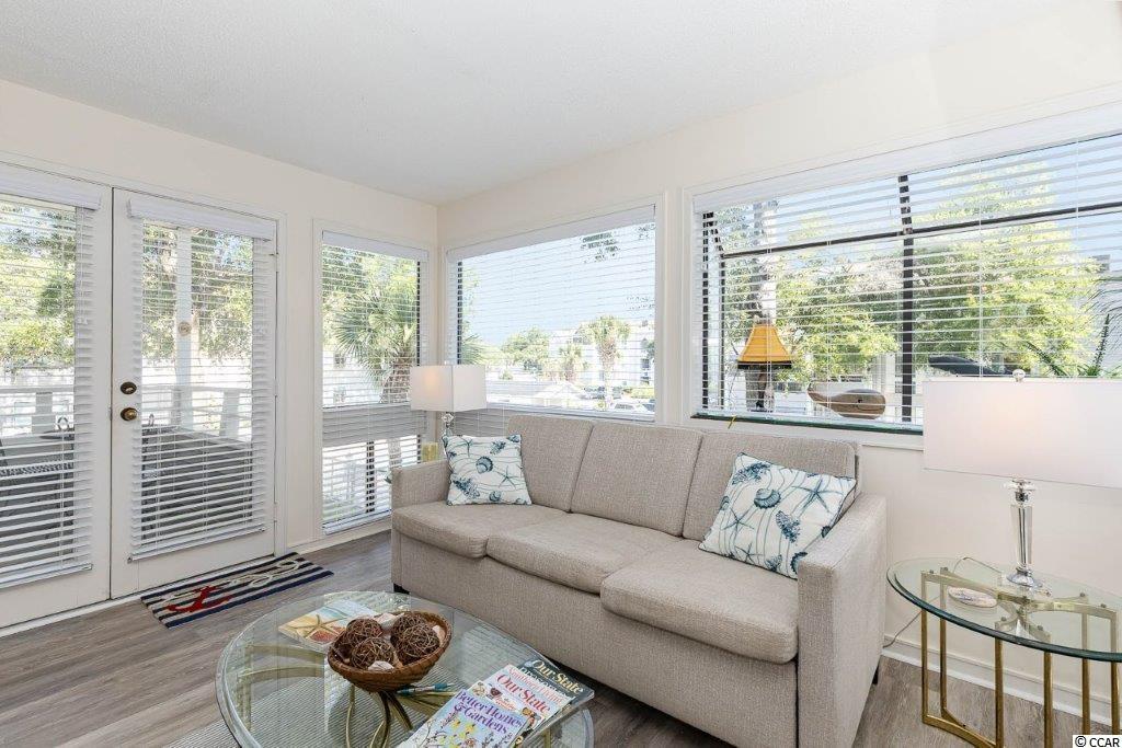 Clean, modern, and updated this 2-bedroom 2 bath condo in Arcadian Dunes is a must see! New LVP flooring, and custom blinds. Bright airy, open floor plan, the living area features floor to ceiling windows allowing for plenty of natural light and perfectly decorated in tranquil neutral colors with beachy accents. Beautiful French doors lead out to the balcony from the living area and master overlooking the pool a great place to start your day or gazing at the stars above before turning in. The kitchen includes granite countertop and tile backsplash, ample counter, and storage space and a breakfast bar. Large master suite with a sitting area, and balcony access. Master bath features large vanity, linen closet, and walk in shower. The second bedroom is also good sized, with sunlit windows and a large closet. Arcadian Dunes amenities include multiple pools, walking paths, playgrounds, and barbecue picnic areas. Harry The Hats beach bar & grill is located just steps away and the beach is only a short walk.