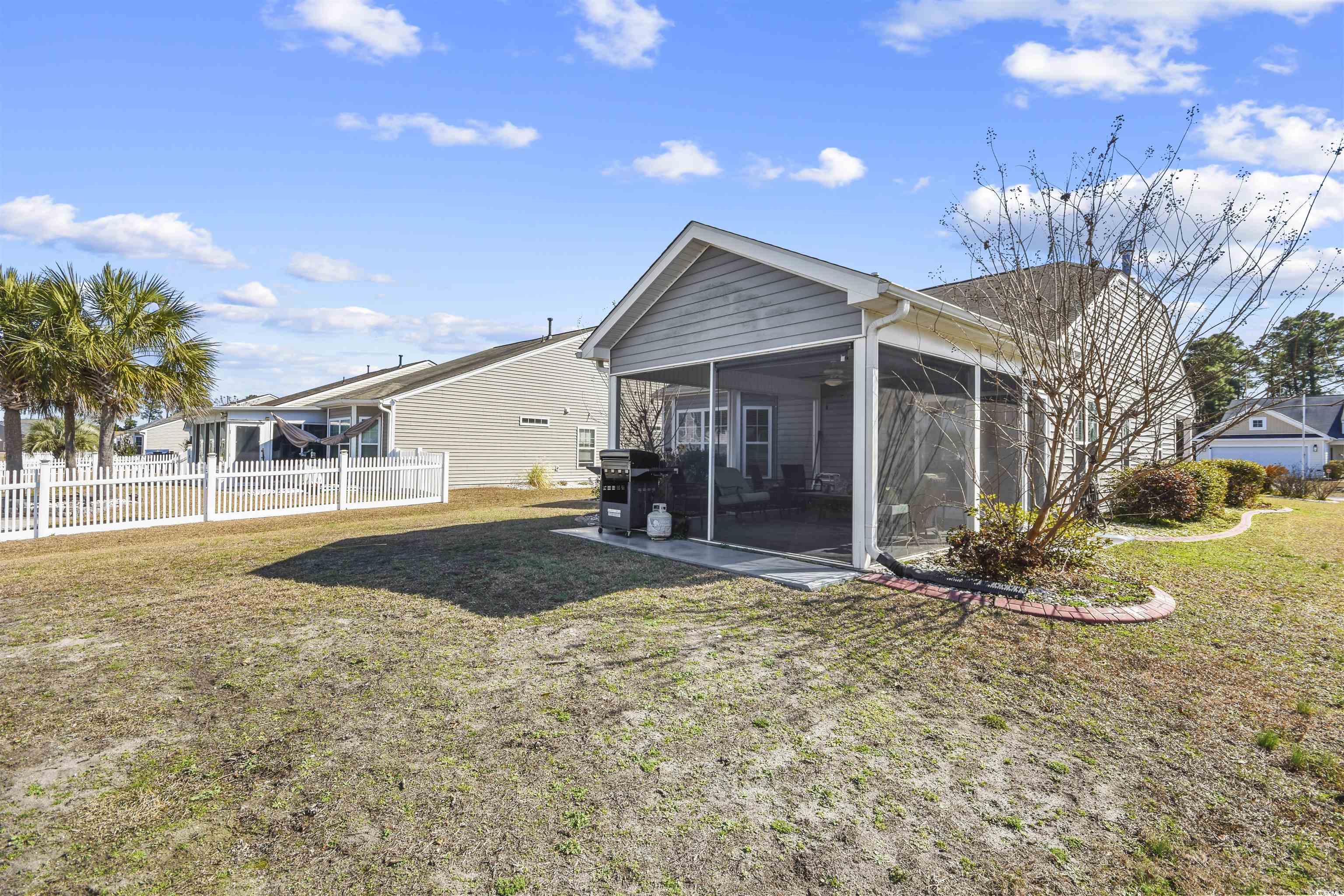 Welcome to this charming 3 bedroom, 2bathroom home, offering breathtaking lake views and an inviting atmosphere in the sought-after Carolina Forest community. From the moment you step inside, youll be greeted by an open and airy floor plan with vaulted ceilings, a tiled natural gas fireplace, and hardwood flooring throughout. The kitchen is a perfect blend of style and functionality, featuring granite countertops, black appliances, a tiled backsplash, ample cabinetry, a pantry, and an extended breakfast bar, making it an ideal space for cooking and entertaining. The primary suite is a peaceful retreat with a beautiful bay window overlooking the lake, a spacious closet, and an ensuite bath. The large 13 x 15 screened porch is perfect for enjoying the serene water views, whether you're sipping your morning coffee or unwinding at the end of the day. The two-car garage includes an extended attic space for extra storage, while the natural gas heating and fireplace provide warmth and energy efficiency year-round. Located in the desirable Summerlyn community, residents enjoy access to a saltwater pool, playground, and an amenities center, all with low HOA fees. This home is also conveniently close to a new elementary school, a library, parks, a senior center, a sports complex, shopping, dining, and the beautiful beaches of the Grand Strand. Don't miss this incredible opportunityschedule your showing today!