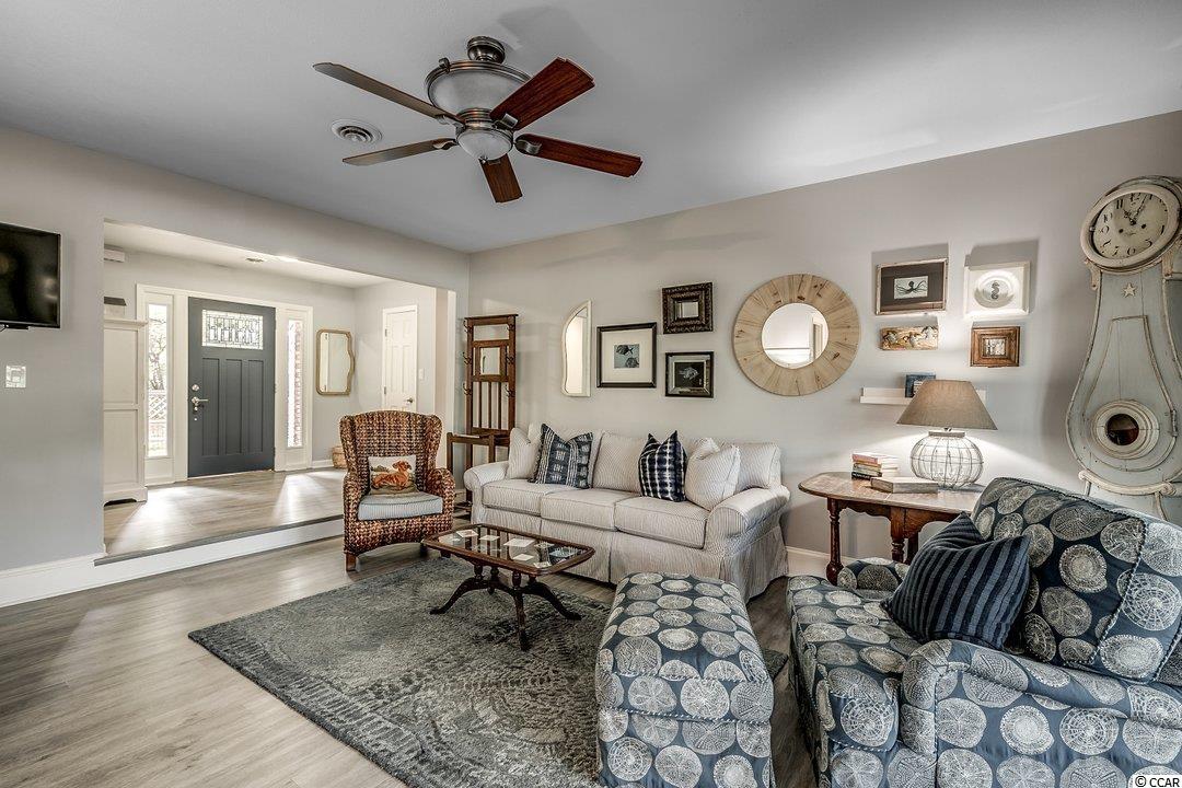 Walking in the front door you will be ready to call this home. Located in Hagley Estates in Pawleys Island this charming brick single-level home has 3 BR and 2 baths. Spacious Master Bedroom boasts custom trim, walk-in closet with shelving, and plantation shutters. Updated Master Bath with shiplap ceiling features a vanity with tiled backsplash and large walk-in tile shower. The remaining bedrooms have ceiling fans, walk-in closets, and plantation shutters. 2nd bathroom with a shiplap ceiling and partial shiplap wall has a vanity and shower. Updated kitchen with a shiplap ceiling has solid surface countertops, custom oak cabinetry, tile backsplash, stainless steel appliances which include a double oven, breakfast bar, and pantry. The Formal Dining Room and Sunken Family Room are the perfect places to spend time with family or entertain friends. The owner's favorite spot is the screened porch that has been converted into a sunroom with large windows, a ceiling fan, and views of the 1st Fairway of Founders Golf Course. Other features include one car garage, a large laundry/utility room with a ceiling fan and shelving, an outdoor shower, and a pergola in the front yard. 354 Old Ashley Loop's off-road location and the wooded setting offer privacy. Make your appointment today! ***Interior photos coming next week.***