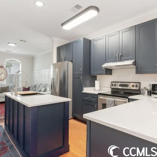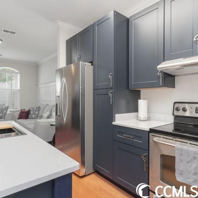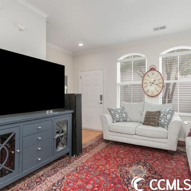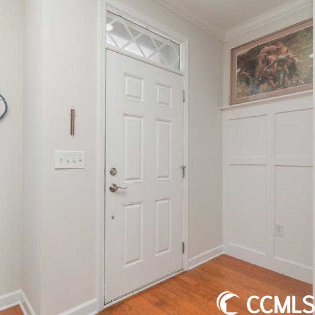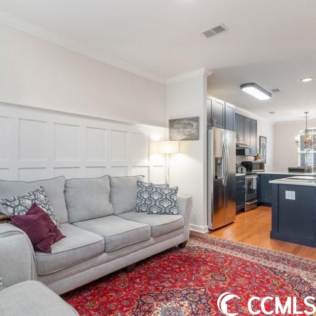 This beautiful 2 bed 2.5 bath townhome in the highly sought-after St. James Square community is a must see! Just updated with new quartz counters and new blue cabinets in the kitchen, a new water heater in 2023, new screens on all windows plus board and batten was added on both floors, this home features oak flooring and crown molding on the first floor, a fenced courtyard and a private one car garage. Additional updates in 2022 included a new refrigerator, new sod in the backyard, new garage door opener and new LED lights. Wonderful floor plan boasts a separate dining area enhanced by raised panel wainscoting that is adjacent to the spectacular kitchen with gleaming stainless appliances, quartz counters, abundant storage space in the gorgeous new cabinets, work island with new double sink, a pantry and a breakfast bar. The nice sized living room is enhanced with board and batten accent and is perfect for entertaining and there is also a guest half bath on the first level. Upstairs, there are two bedrooms, each with ensuite bathroom and plenty of closet space plus board and batten accents in both bedrooms and the hallway. The private fenced courtyard is the perfect spot to relax with your morning coffee and is convenient to the one car garage. St. James Square is located in the heart of Myrtle Beach where you can walk to the grocery store and restaurants and only minutes from Broadway at the Beach with entertainment and dining options galore, the airport, Market Common, Myrtle Waves Waterpark and more! Best of all, just a golf cart ride to the ocean! Whether you are searching for a beach retreat or your new forever home, don't miss this wonderful opportunity! Make an appointment to view this lovely home today!