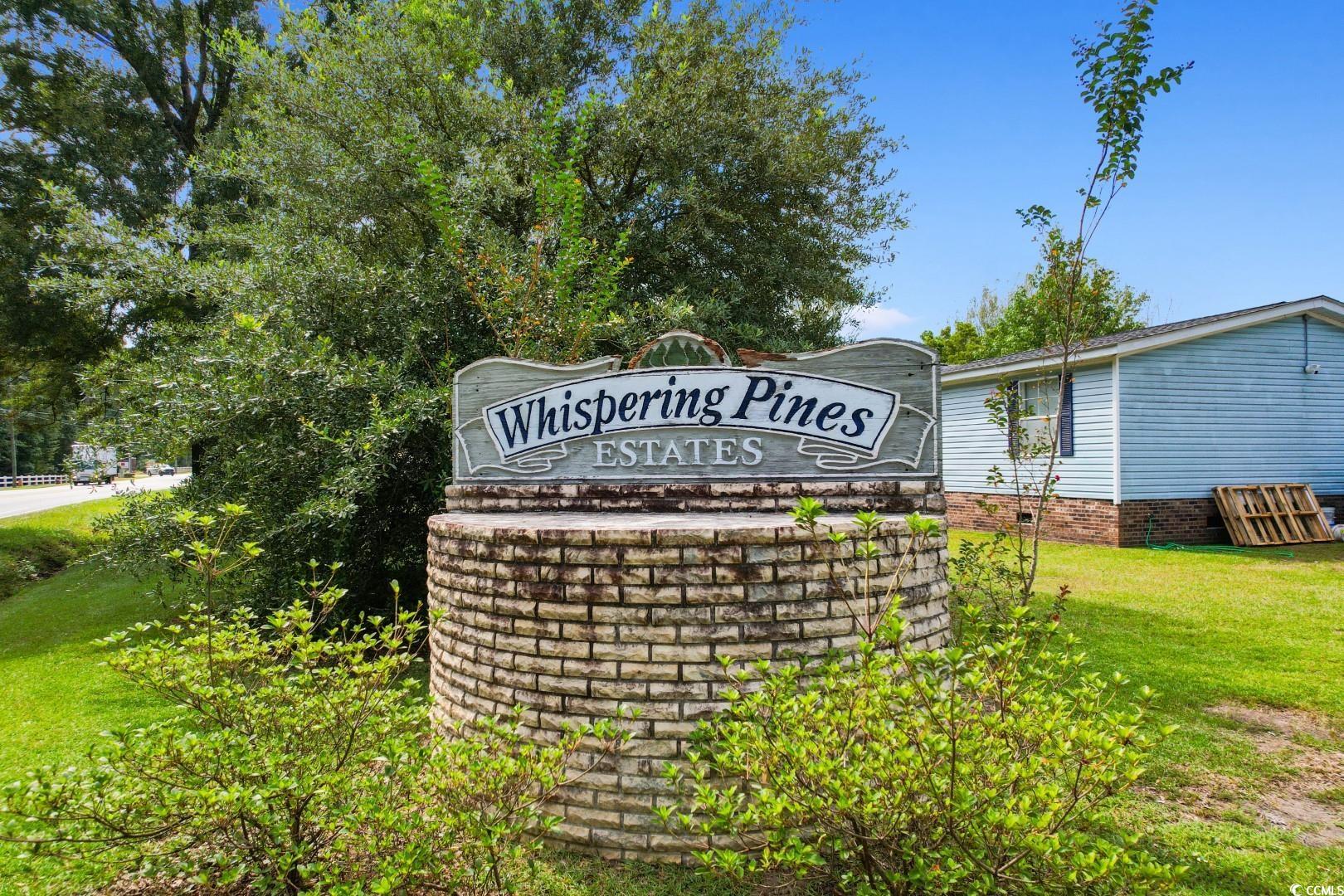 Don't miss your opportunity to own this 3 bedroom, 2 bathroom modular home with NO HOA in a quiet, highly sought after area of Whispering Pines in Myrtle Beach! This home has beautiful natural light coming through the front window and features a spacious open floor plan with a fireplace for chilly nights. The large kitchen offers all white appliances, plenty of cabinet space for storage and granite countertops. The bedrooms have significant space, ceiling fans, granite countertops in the bathrooms, while the master bedroom features double sink vanities, walk-in closet and a garden tub. There is also a 10x12 Leonard shed in the back yard for extra storage room! Enjoy evenings relaxing on your enormous front porch listening to nature. Whispering Pines is located in a community with friendly neighbors, just a short drive to the beach and all of the area's schools, grocery stores, and all of the Grand Strand's finest dining, shopping, and entertainment. You won't want to miss this! Schedule your showing today.