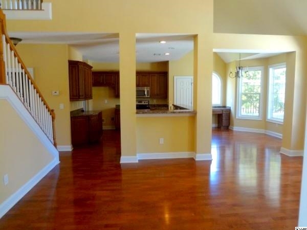 A gorgeous 4 bedroom 2.5 bath home in Waterford Plantation in the desirable Carolina Forest area. This home has a formal foyer, living room and dining room. The great room has vaulted ceilings and is perfect for casual gatherings. The kitchen has solid surface counters, plenty of cabinets, brand new stainless steel range, microwave hood, and dishwasher. There is also a breakfast bar and breakfast nook for casual eating. The master bedroom is on the first floor and has a walk in closet, the master bath has a garden tub and a separate shower. There are 2 bedrooms, a bathroom and a bonus room that can be the fourth bedroom. Enjoy the screen porch over looking the fabulous in-ground swimming pool. There is plenty of room for a barbecue and table and chairs to have parties and family gettogethers. This home has been freshly painted, new carpet and new fixtures. The home is close to fantastic shopping at Tanger Outlets or Coastal Grand Mall, amazing restaurants, exceptional schools, first rate medical care, golf for all handicaps and ages, Coastal Carolina University, Horry Georgetown Technical College and of course our magnificent beaches.