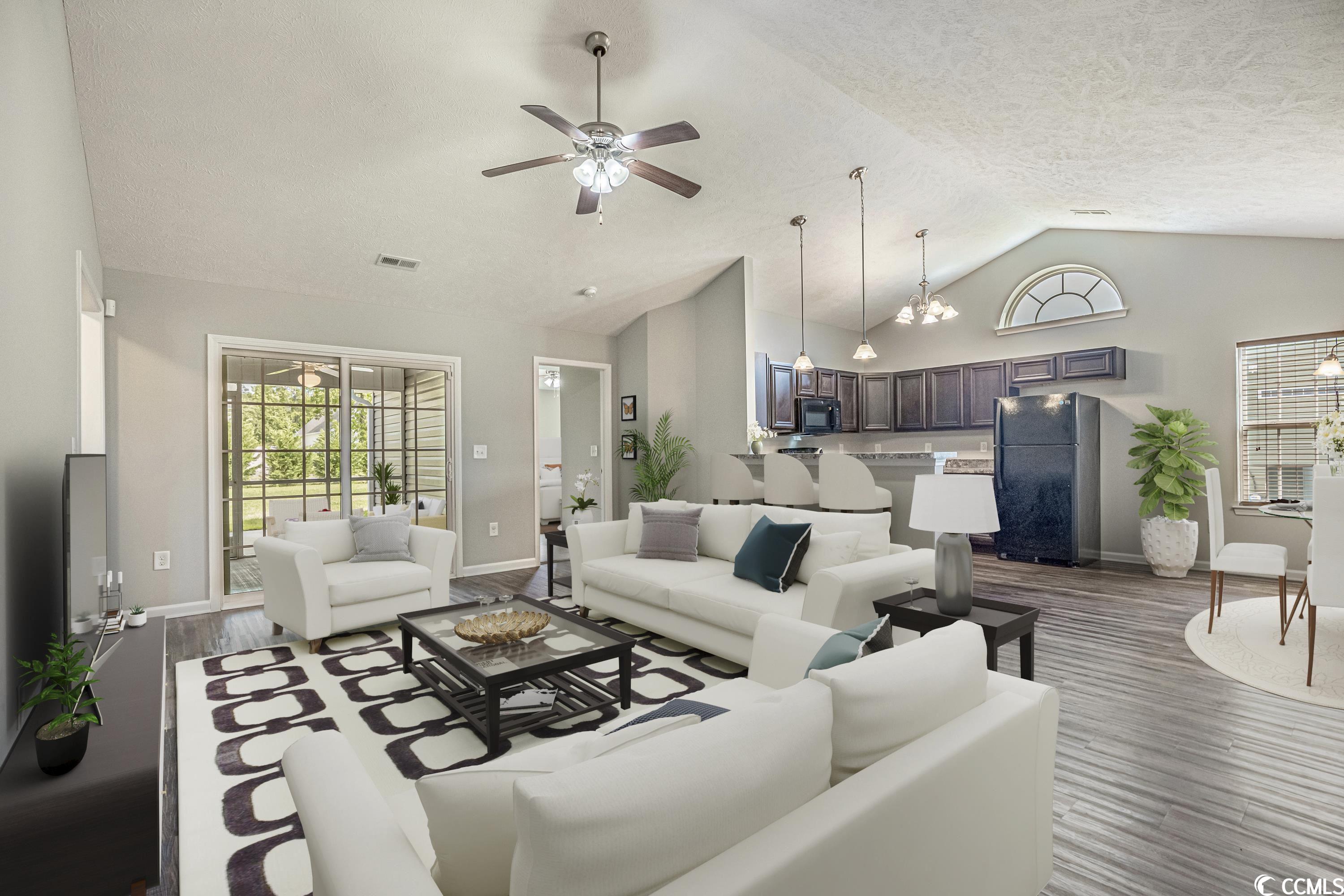 Welcome to your new home in Highland Park! This 7 year old property offers 4 bedrooms and 3 bathrooms in an excellent community near all. With its one-level design, the vaulted ceilings and natural sunlight add to an open concept feel. The screened-in porch is a perfect spot for relaxation and outdoor dining, offering serene views of the large well-maintained yard. Entire home FRESHLY PAINTED, power washed, and in refreshing move-in condition! Large master bedroom with tray ceiling is completed with a with huge walk in closet and separate from the other 3 bedrooms and 2 bathrooms for added privacy. With an attached 2 car garage and low HOA, this one level home is truly turnkey. Located less than 15 minutes to the beach, you are also close to great shops, dining, golf courses, restaurants, airport, tennis, 2 colleges, and private and public schools.