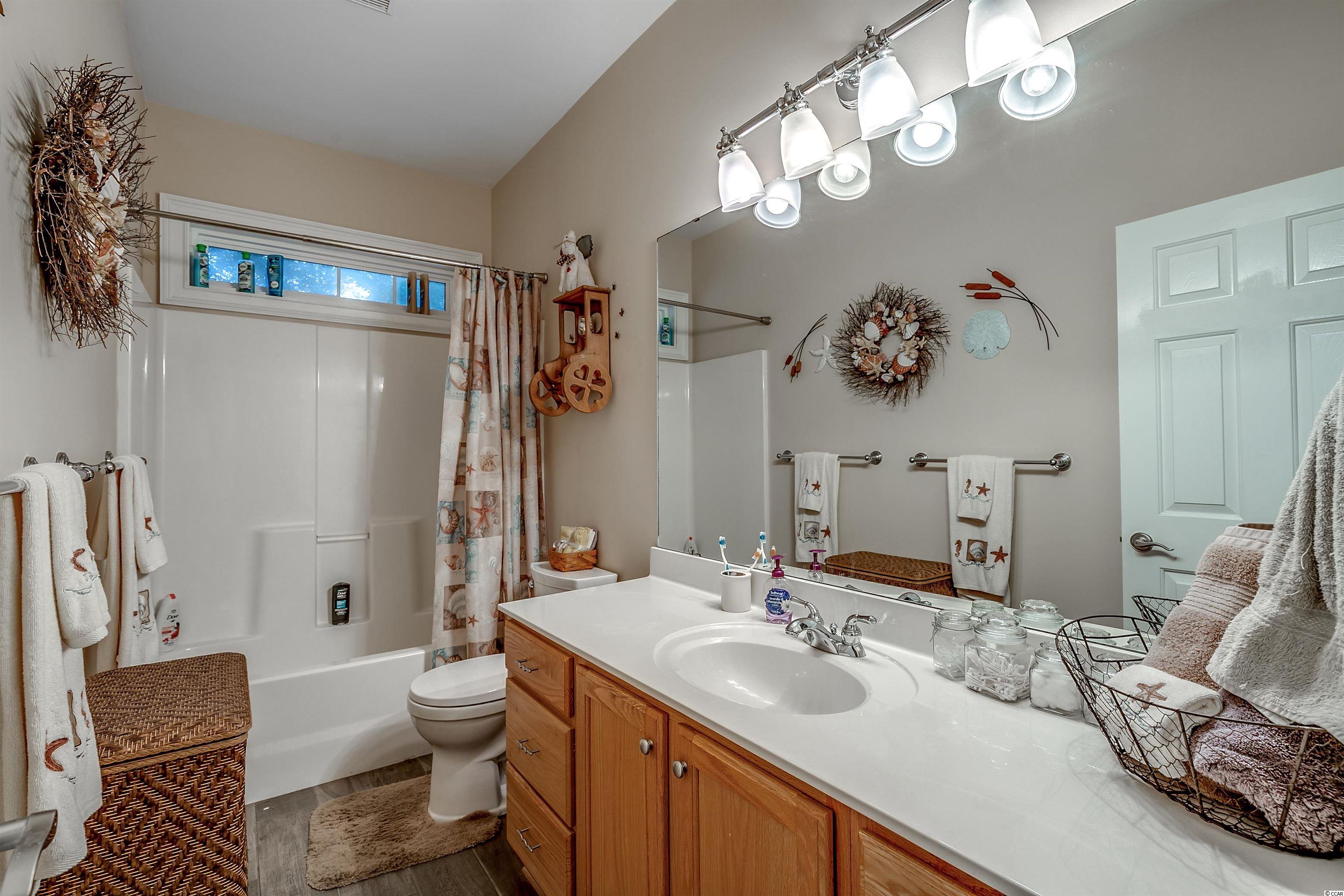 Spacious 4- bedroom 3 bath all brick single level house in Hagley Estates. High ceilings. Open floor plan with split floor plan. Home has a great room and living room with a fireplace, great for entertaining! Dining room area left of foyer. Master suite boasts large garden tub, tiled shower, new cabinets and vanities (his and hers), spacious walk-in closet. There are 2 other bedrooms and bath are located across house. The upstairs bedroom has a full bathroom with shower but no separate closet, enough space for new buyer at add if needed. Home has updated tiled floors, kitchen counter tops. Huge fenced in back yard, large enough for entertaining or a pool with ease. Home has an irrigation, Shed, Washer/Dryer stays with home. Home has a termite bond (Sentricon) with home team. AC units also have transferrable bond at buyers cost (Carolina Cooling). The fireplace is dual with wood/propane. Kitchen range area is also dual fuel, Sellers are using electric. Great location to shopping, beaches and golf. All measurements and square footage are approximate and not guaranteed. Buyers are responsible for verification of all information. Call today for your appointment!