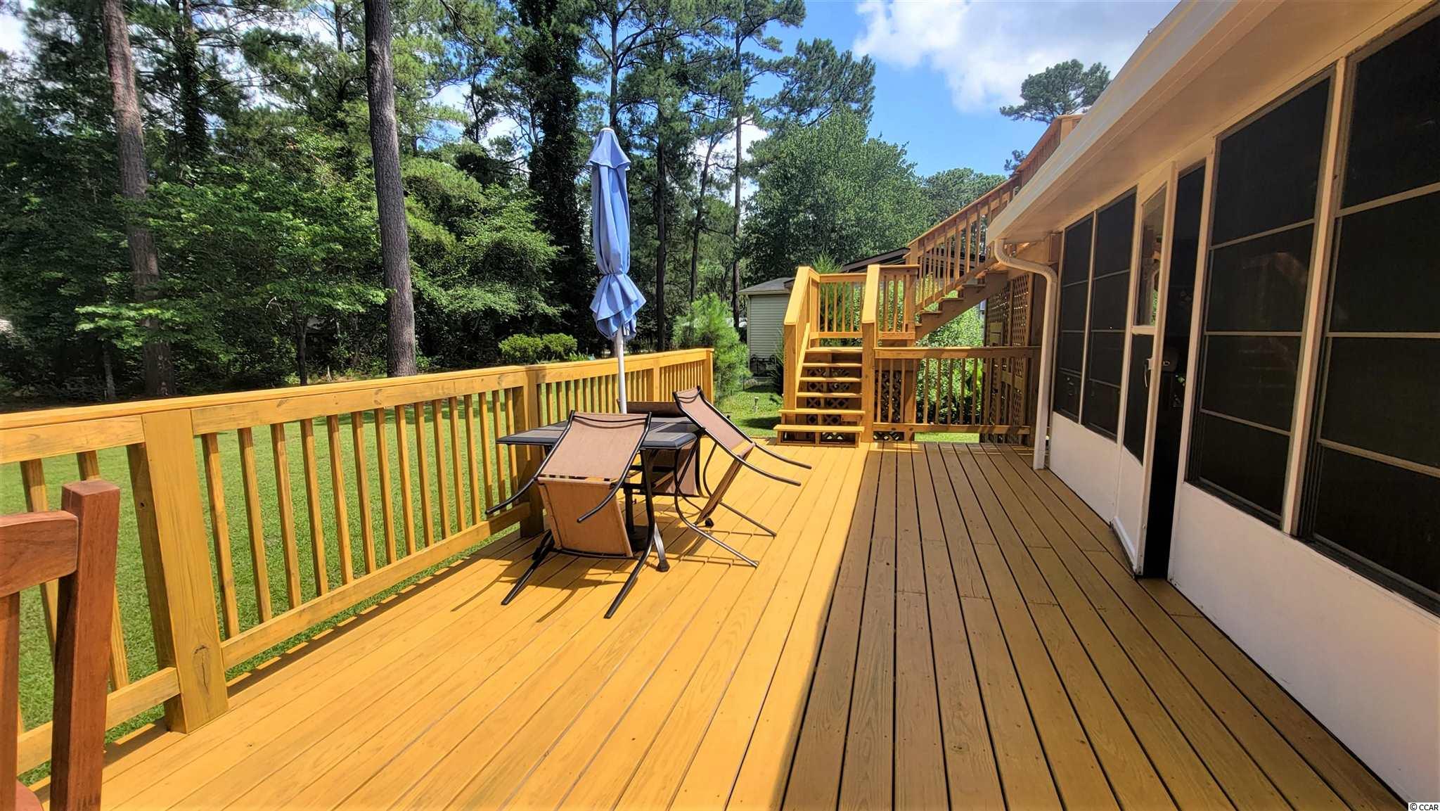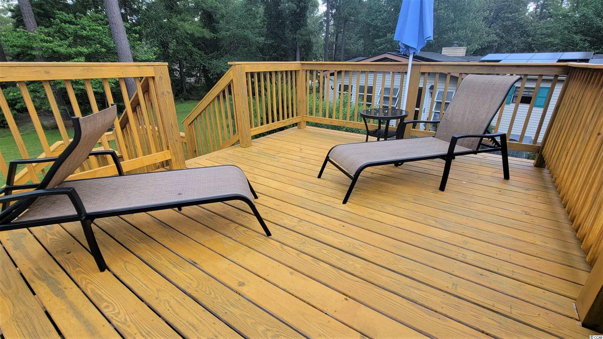 Nestled in a Park Like Setting - This 3Bd/2Ba 1500 sq. ft. home has aged like a good wine, is in a great neighborhood and is minutes to the beach. You'll be amazed at this gem's pristine condition and pleasing neutral designer colors. From the covered front porch, you'll enter into an open concept living space with cathedral ceilings, gleaming wood laminate floors and a cathedral ceiling that adds volume. There is ample room for all your furniture. The chef in your family will love the kitchen with tile floors, tons of storage & counter space and a pantry for the extras. A relaxed dining area is adjacent to the kitchen. The home features the preferred floor plan - a split bedroom plan, all bedrooms are spacious. Master Bedroom with attached Master Bath features a soaking tub, double sink vanity, a step-in shower and a walk-in closet. Plus two guest bedrooms and a guest bath. You'll find a separate laundry room, complete with washer & dryer, overhead cabinets, a folding area plus cabinets and a closet for supplies. From the living area, step out into the screen porch and from there go out onto the 16' 24' deck to enjoy the privacy this back yard offers. Move up one flight to the roof top deck - listen to the birds sing and enjoy the serenity of living in this wonderful piece of paradise. Ocean Forest features paved streets, a picnic BBQ area & a friendly country atmosphere. Convenient to everything, but away from the hustle & bustle. Only 5 min. to the quaint town of Calabash, 'The Seafood Capital of the World' where you can buy fresh shrimp right off the boats. You're just minutes from all the amenities offered by this coastal region: retail & consignment shopping - shop 'til you drop; a myriad of restaurants whose offerings will please any palate; tee off on one of the 65+ championship golf courses within a 25mile radius; cruise thru art galleries, join a class to learn , jewelry making or pottery. Click ''MORE''. Kayak the ocean & rivers. Catch your limit on a deep-water fishing charter or from a pier. Try your hand at flounder gigging. Embrace lady luck on a moon lite floating casino cruise. Stop by Patios in Little River for a drink & listen to live music under the stars. Love the beach? You're just a sip of lemonade & a few short minutes to the sugar white sands of pristine serene Sunset & Ocean Isle Beaches. Ideally located between Wilmington 45 min N & Myrtle Beach SC 15 min S. Home Warranty