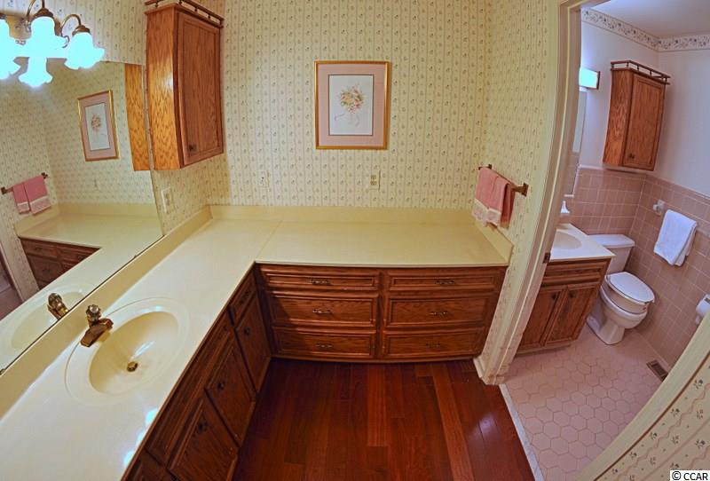 This charming brick home is located in Little Rivers Eagle Nest Estates golf course community. Situated along one of the lush green fairways, this home affords a view of both the golf course and a lake that youre sure to enjoy from your dual-level back porch under tall shade trees. The home features a side-loading garage finished with wood panel walls and a second, loop-style driveway out front for plenty of parking space. Built on a hill, this home features a basement under one side with room for a workshop and a garage-style door to make storing your riding mower as easy as can be. Inside, youll love the extra-large living room equipped with three ceiling fans and a large brick fireplace, and the kitchens dining area has a bay window overlooking the large, shady backyard. The master suite is also quite spacious and its attached bath has a surfeit of countertop space. If youre looking for peace and quiet on the north end of the Grand Strand thats still just a short drive from all of the dining, shopping, and entertainment venues that the North Myrtle Beach area has to offer, this home deserves a spot at the top of your list. Book a showing now!