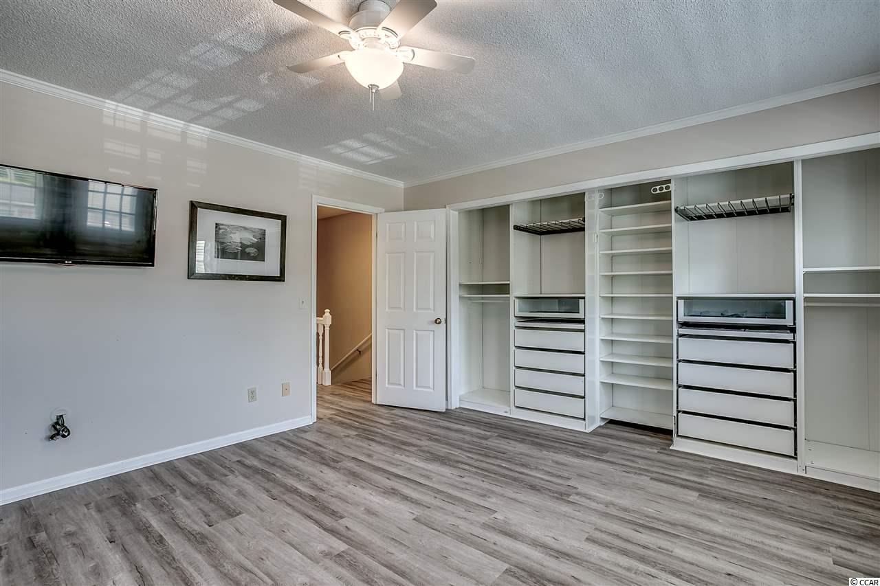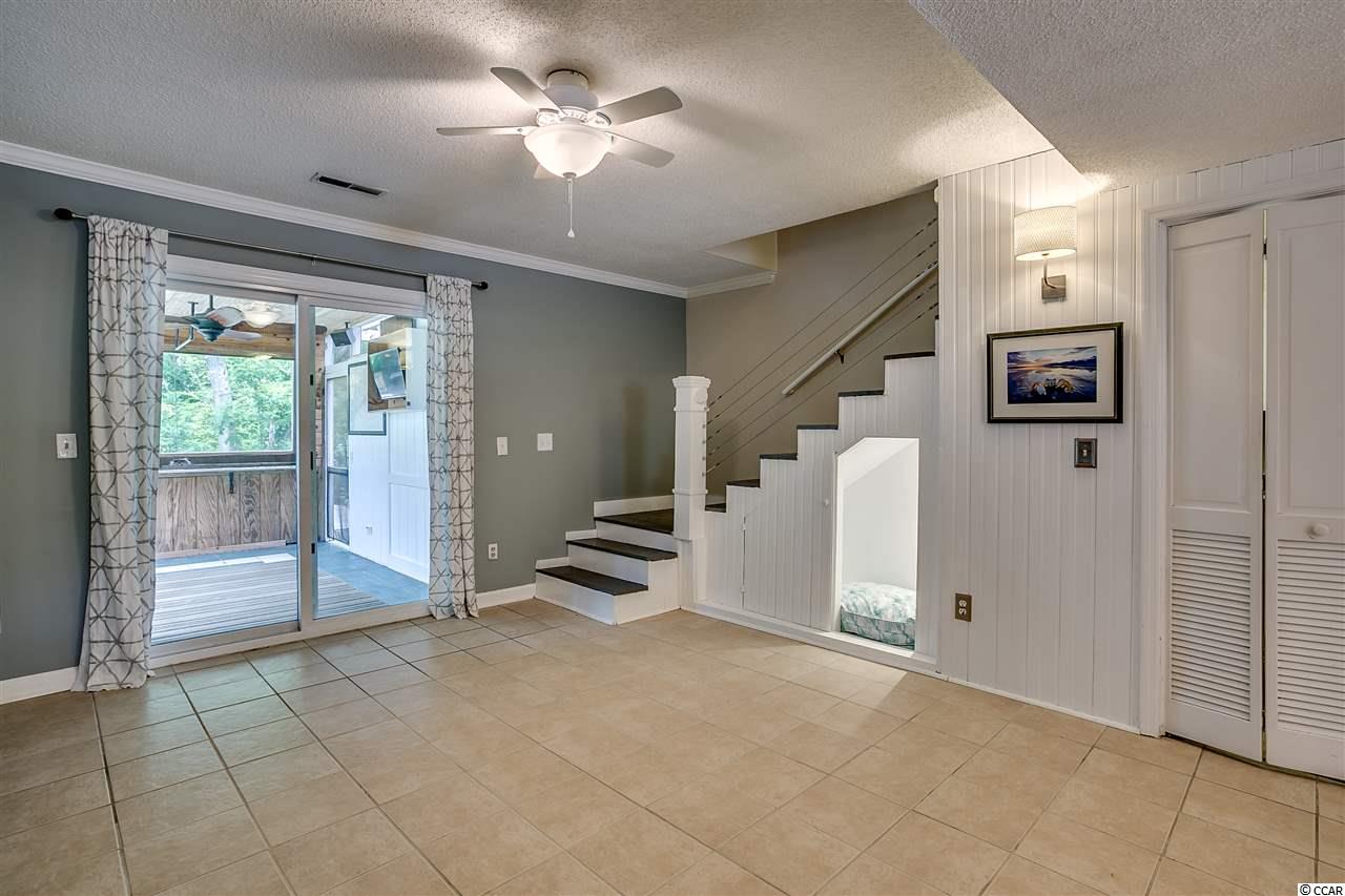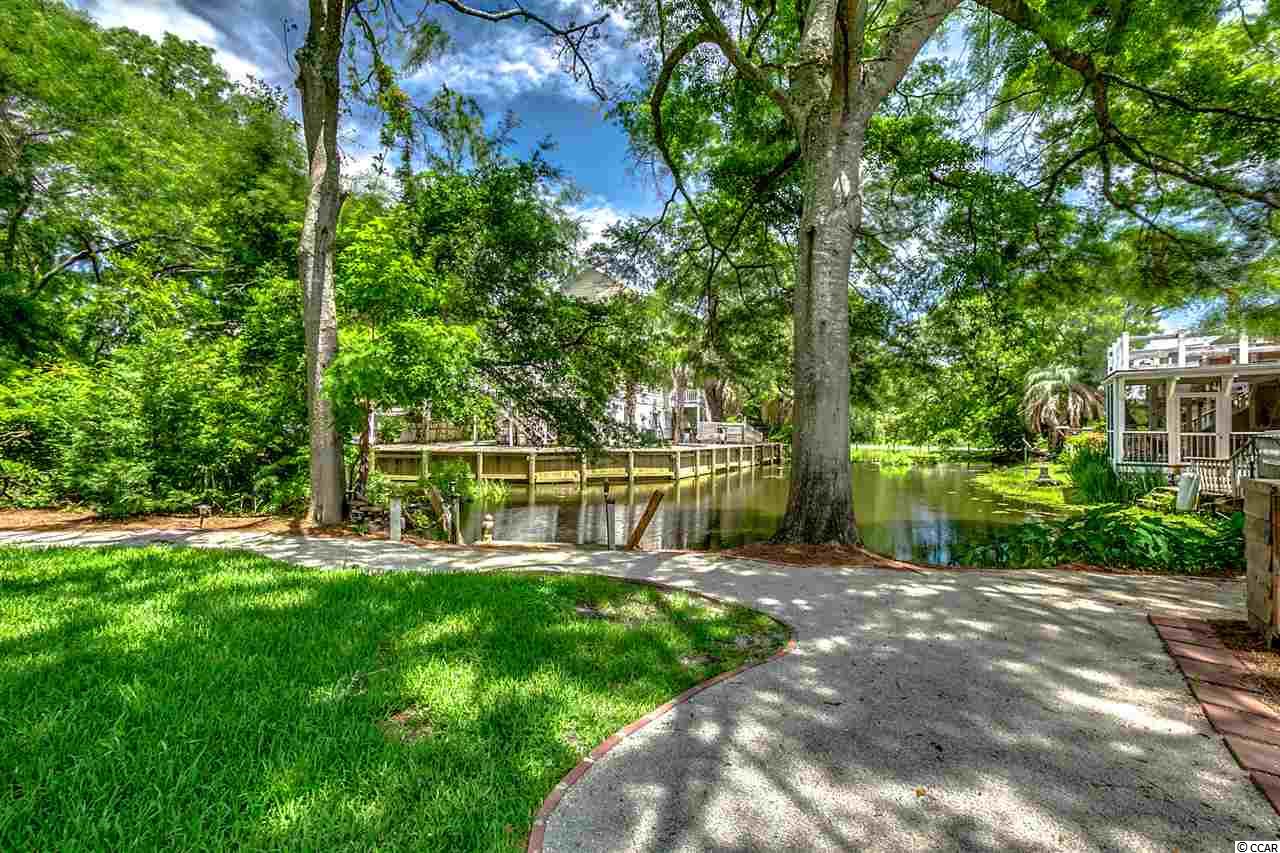 Marina Colony is a 32-unit townhome complex located across the street from the inlet, and walking distance from all of the restaurants, shops and bars of the Murrells Inlet Marshwalk. This coveted 2-bedroom, 1.5 bathroom end unit boasts a large, common courtyard and water views that no other units have. Over the last five years, the current owner has transformed this townhome into the entertainer's and/or outdoor enthusiast's dream. The outdoor spaces include a private cedar walk-in shower with a dry changing room, outdoor living room with TV (that conveys, as well as the surround sound system!) and walk up bar with a large raisable window from Bovines, a built-in propane grill that can easily be hooked up to natural gas and can also accommodate a large or extra-large ""Green Egg"" for smoking (it's made from ceramic tile that looks like wood, but won't burn), a coquina walkway lit by solar powered lighting and guest dock with a hammock on the pond (the pond is maintained by the HOA!). Additionally, the upstairs balcony has been converted into a usable space with outdoor dining for the whole family. In the kitchen you'll find all new, matching, stainless steel appliances (range, refrigerator and dishwasher) that are still under warranty, as well as updated kitchen cabinets with easy access, pull-out storage racks. Underneath both the cabinets and breakfast bar you'll find touch lighting. The kitchen window is not original to the building, and was replaced by the previous owner. The range runs on natural gas, as does the brand new tankless water heater. The sliding glass door leading from the living room to the screened in porch was new in 2016. You'll find additional storage under the stairs and in the attic that's completely floored and has ample shelving. The upstairs living space was recently upgraded with luxury vinyl flooring (coastal grey) throughout. The master bedroom closet was recently upgraded as well with a custom, inset closet space from Ikea. The windows in the master bedroom are not original, and were replaced by the previous owner. Finally, an updated modern vanity was replaced in the upstairs bath for added space and a modern look. New, matching ceiling fans have been added to each room for added airflow and to complete the classic beach look that matches the hardwood stairs and white wainscoting walls (installed in April 2018). All of the doors have new hardware, including an electronic, keyless entry at the front door. The interior also has technological updates including an Ecobee wireless thermostat and stereo system, both of which can be monitored and controlled from your smartphone. For security purposes, there are front and rear motion and night sensor cameras also controlled from your smartphone app (both convey!). The low HOA fee has been the same price for decades and covers water, sewer, trash and yard maintenance. Additional amenities include free boat storage, an outdoor pool, and tennis courts. The 32 owners (via their HOA) just purchased a community marina and boat ramp (located just across the street), which grants access to day docks as well as boat slips for a discounted rental rate. All of the profit from the marina goes to further enhance the already well-funded reserve account. Although the roof is typically the responsibility of the owner, the HOA reserve account had enough money to repair all damaged roofing after Hurricane Matthew. They also recently resurfaced the tennis courts and added French drains. Exterior paint is also about to be completed by the HOA at no additional cost to owners.