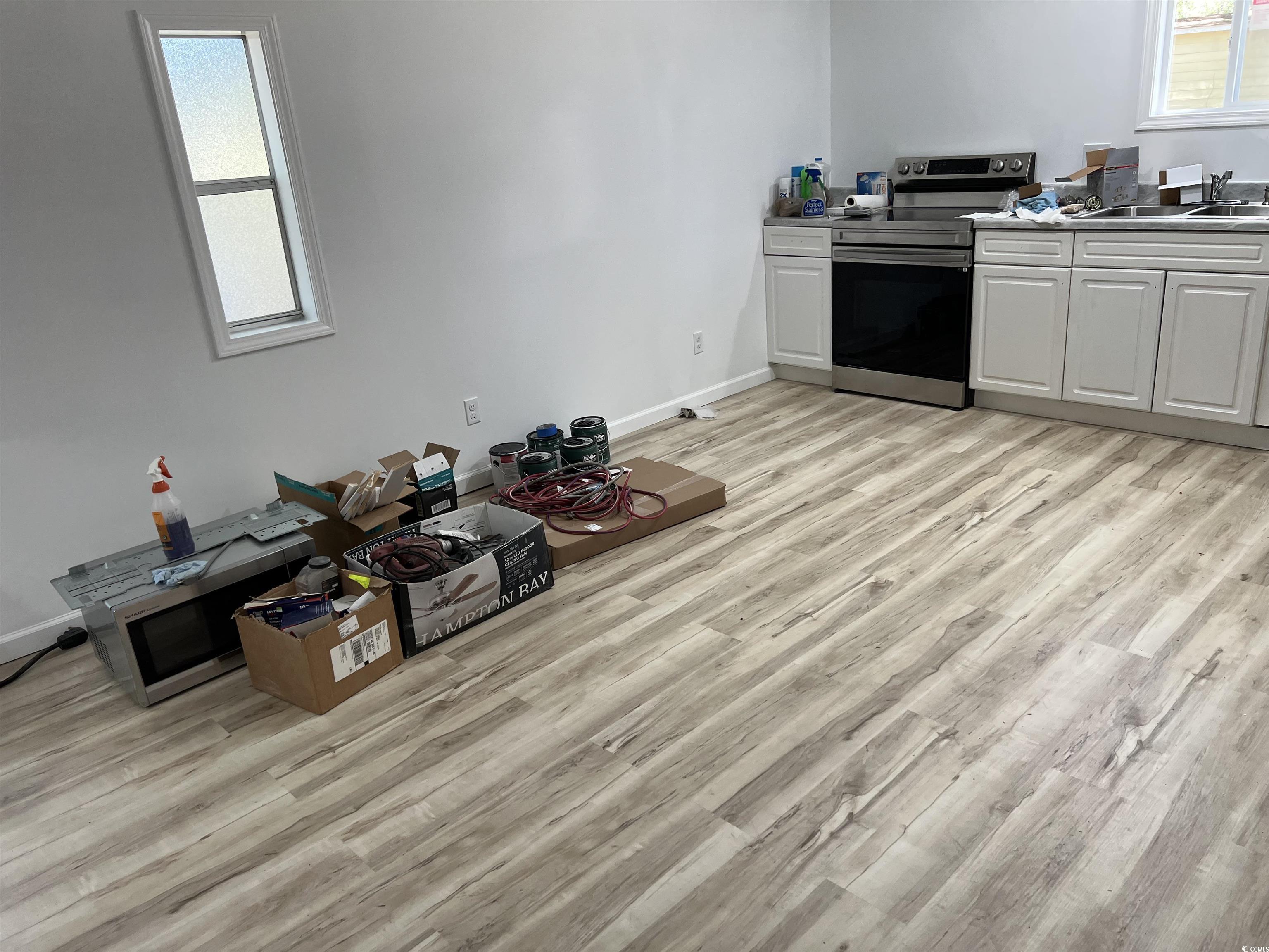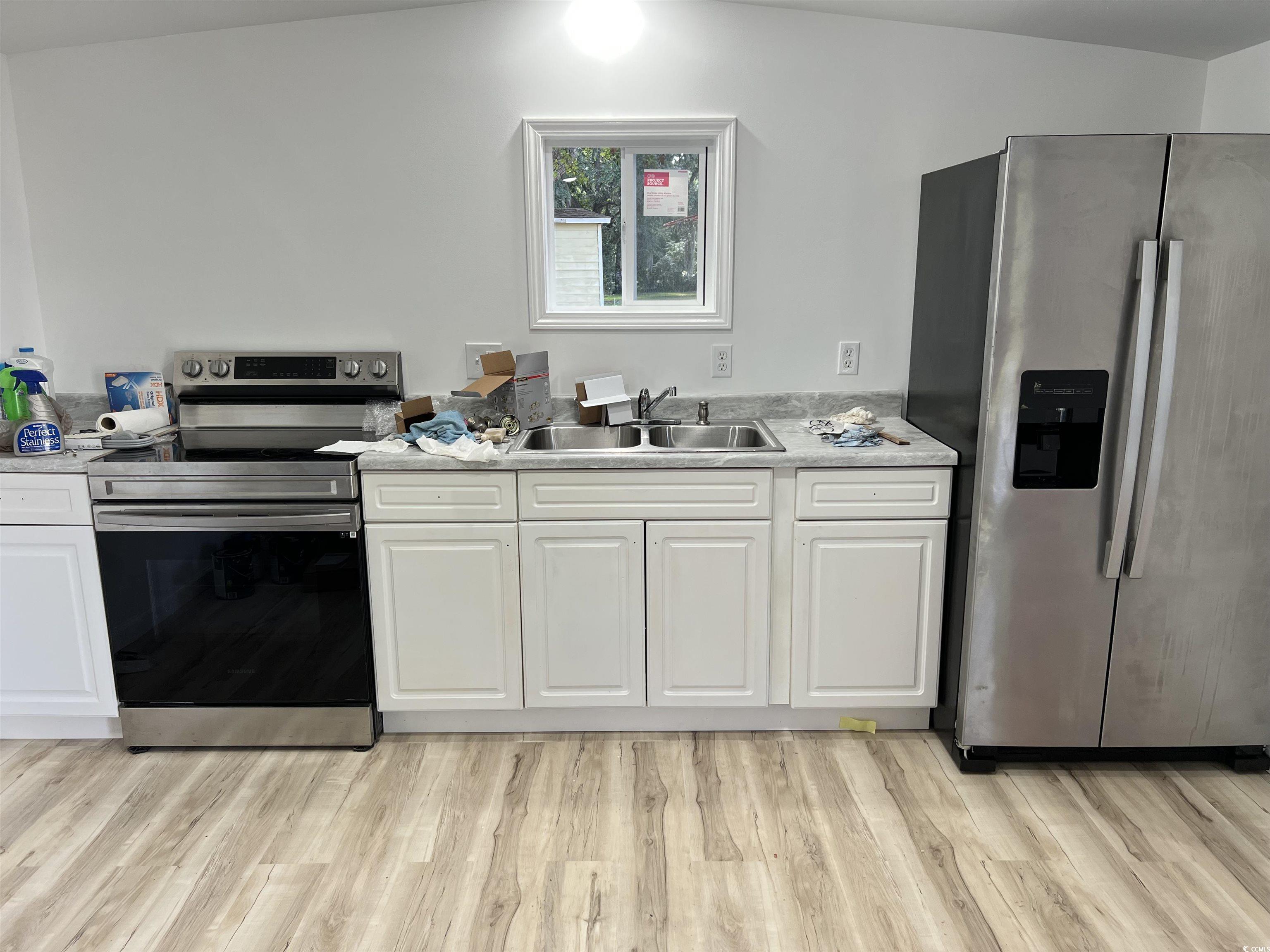 Investor Opportunity-Almost Complete. Beautiful Remodeled 2 Bedroom / 2 Bath Home in Quiet Beach Living in Murrells Inlet with close access to the boat landing, area beaches, schools, hospital, and local shopping. Metal Roof! Fresh Paint inside. New fixtures, Vinyl Siding. Large Open Designer Kitchen- lots of cabinets, double sink, stainless steel refrigerator, range, and dining area. Plenty of Kitchen storage. Washer/Dryer combo conveys. Large Primary bathroom with shower, and vanity. Hall Bathroom with Shower/Tub. Nice large lot. Room to add on. Must Come Visit! Call your Agent Today for a Showing!