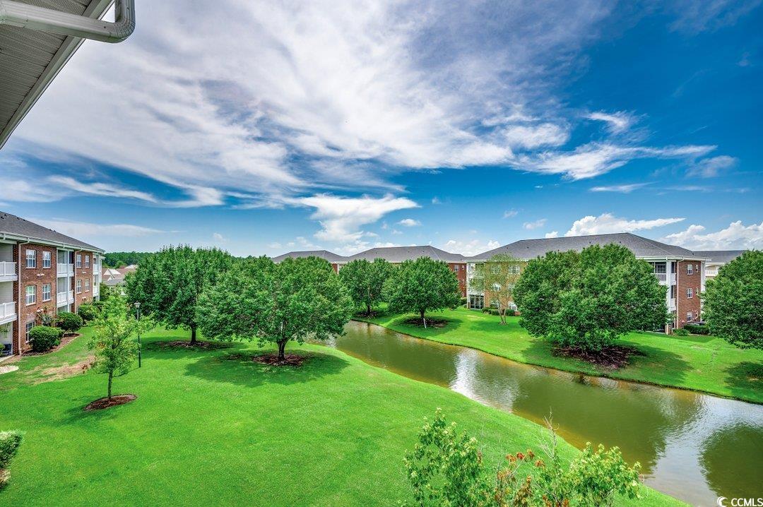 Location! Location! Location! Welcome to Azalea lakes and this best centrally located 2 bedroom/2bathroom desirable third floor end unit condo. This condo features an open floorplan with cathedral ceilings & neutral colors with a split-bedroom layout. PLUS windows along 3 sides & a great water view as well as peaceful sounds of the fountains from the porch. The kitchen has a number of cabinets plus a large countertops. Both bedrooms feature high ceilings, their own bathroom, ceiling fans, and spacious closets w/a new AC unit 2 years ago. The Azalea Lakes community is well-kept and offers its residents both outdoor and indoor pools, a fitness center, and is in close proximity to the Market Common area, beach, golf courses, shopping, dining, recreation, health facilities and the Myrtle Beach airport All measurements and square footage are approximate and not guaranteed. Buyer is responsible for verification.