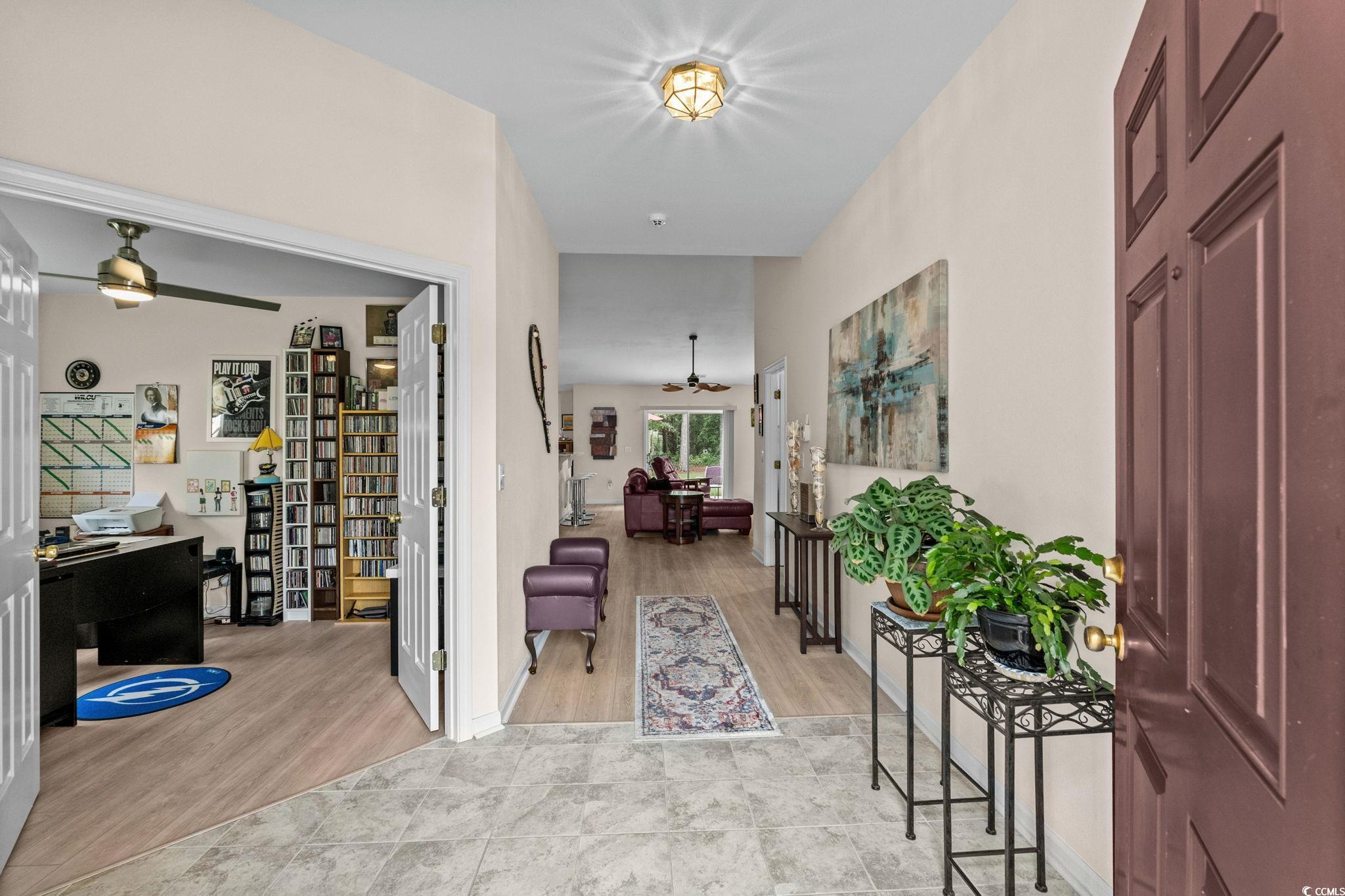 Welcome to this beautifully maintained and perfectly located 3-bedroom, 2-bath home, situated on a spacious 0.31-acre lot in the desirable Inverness community of River Oaks. From the moment you arrive, youll notice the welcoming atmosphere, large garage, and one of the longest driveways in the neighborhood. Inside, the home features a great open floor plan with vaulted ceilings in the living and dining areas, updated faux wood flooring, and plush carpet in the bedrooms. The bathrooms are enhanced with elegant marble flooring, while the kitchen boasts stunning marble countertops. The expansive primary suite offers plenty of room to unwind, complete with two large walk-in closets, a luxurious garden tub, and an oversized stand-up shower. Additional modern upgrades include a new roof installed in 2021, freshly painted bathrooms, updated ceiling fans, and low-maintenance no-clean gutters. Out back, the huge private yard is framed by lush, mature treesperfect for backyard barbecues, morning coffee, or peaceful evenings under the stars. The neighborhood is designed for relaxation, offering a sparkling pool and hot tub just a short walk away. Low HOA fees cover trash collection, street lighting, pool maintenance, and common area upkeep. Best of all, the beach is just minutes from your doorstep, with top-rated golf courses, shopping, dining, and medical facilities close by. With easy access to Highways 501 and 31, youre never far from everything Myrtle Beach has to offer. Coastal living doesnt get any easierschedule your tour today. Washer and dryer, inside and garage refrigerator, outdoor portable grill are included with the sale.