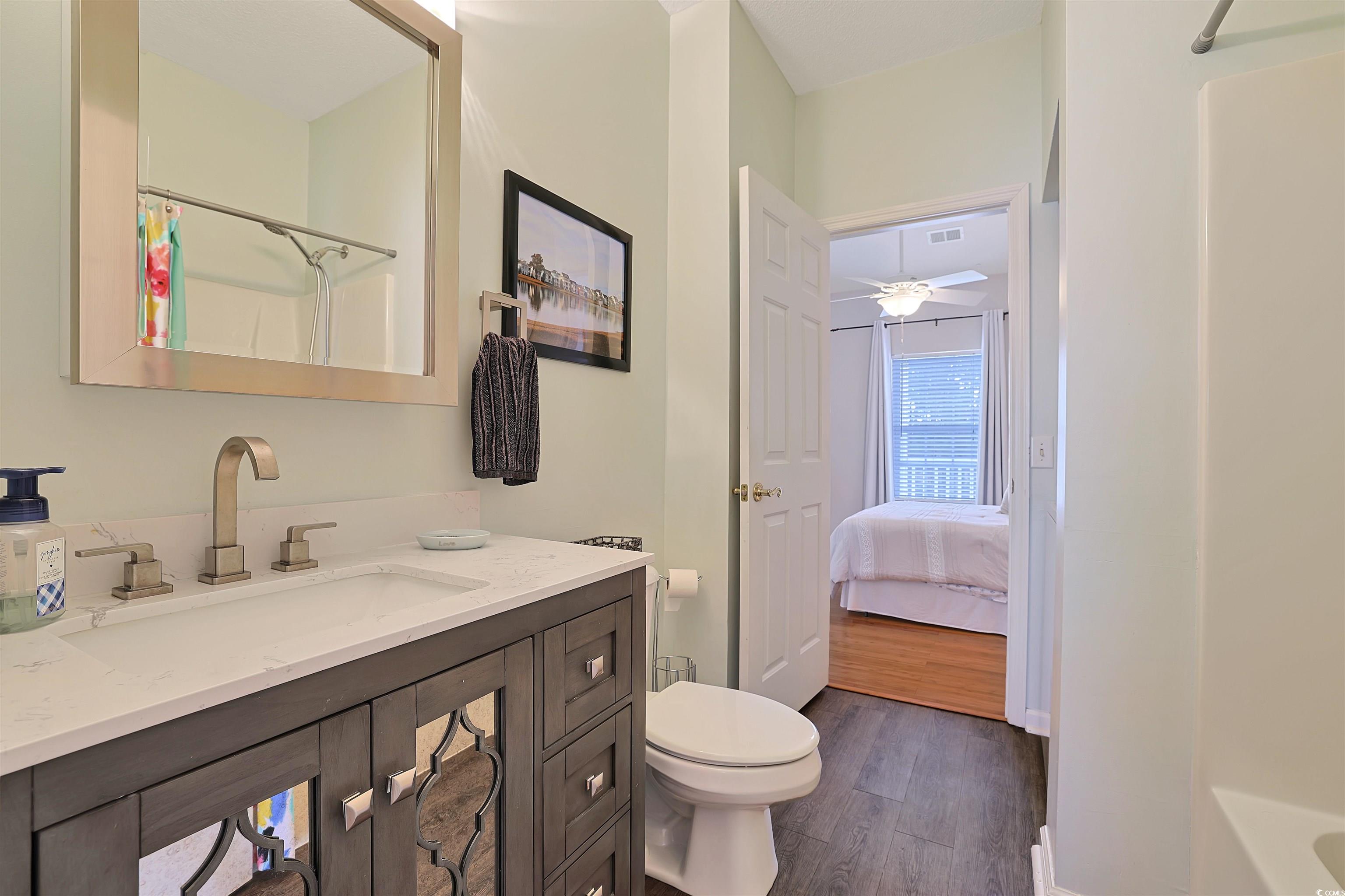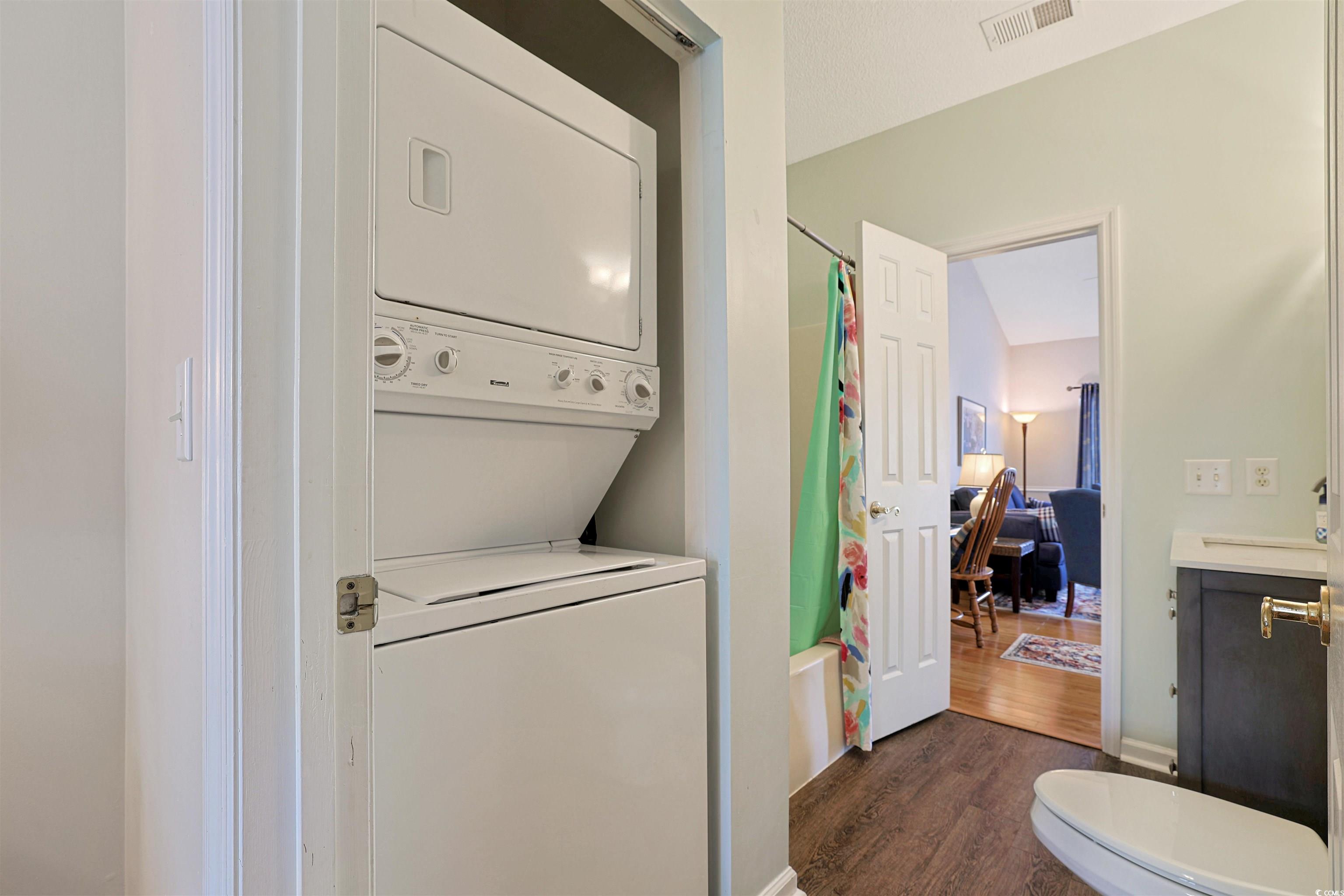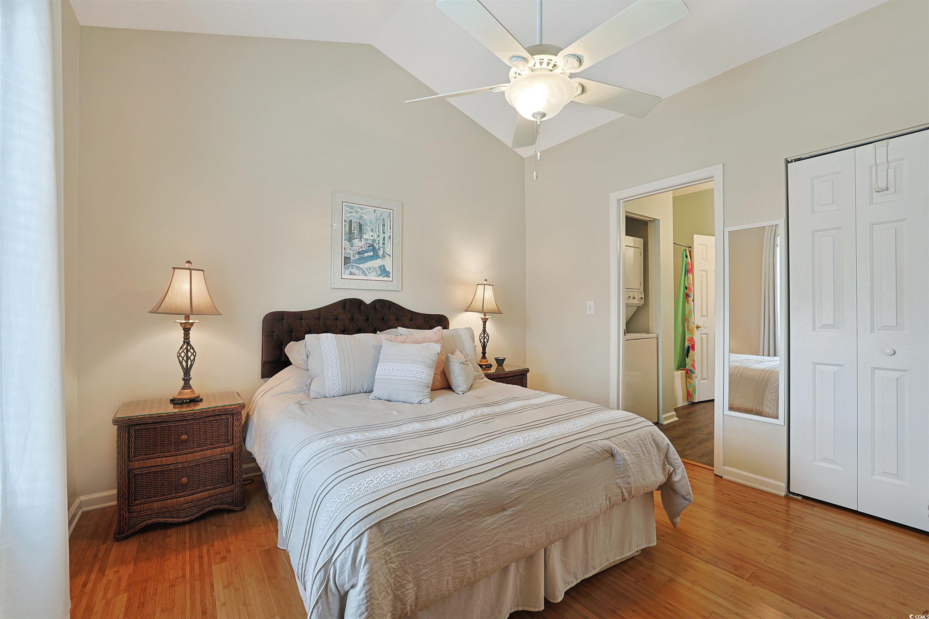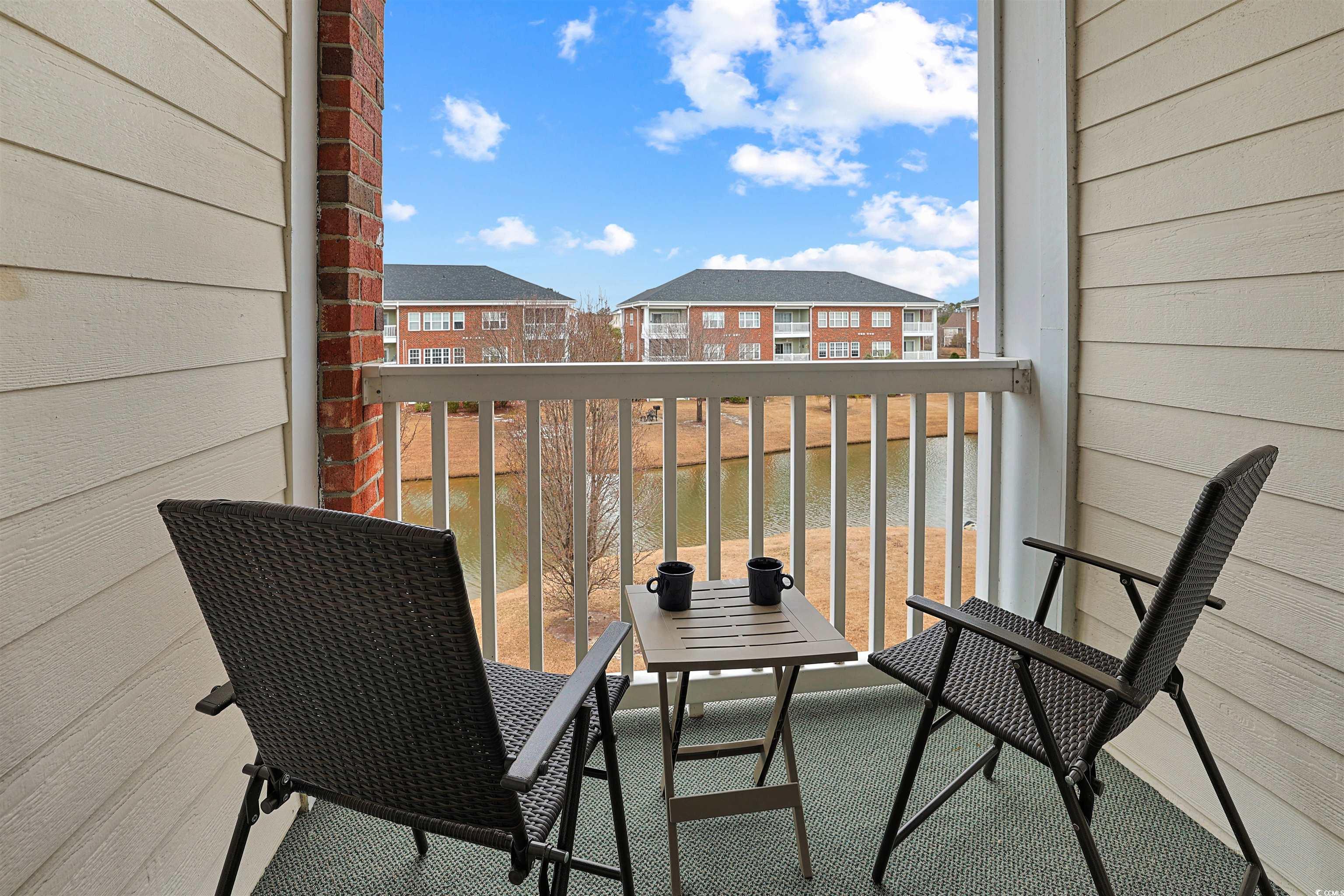 Introducing this inviting well kept, 3rd floor, 1 bedroom 1.5 bath condo in the sensational Azalea Lakes community. This charming condo features vaulted ceilings, bamboo wood flooring, ceiling fans, elegant chair railing, all windows replaced in 2021(not slider), and a classic living/dining room that showcases a sliding glass door that opens up to the peaceful balcony with tranquil lake views. The family-friendly kitchen is equipped with a white on white appliance package, a breakfast bar along with ample counter & cabinet spaces. The master bedroom offers a vaulted ceiling with a fan, a double bi-fold door closet, access to the master bath that presents a vanity with a single sink, comfort station, a laundry closet with a stackable washer & dryer, and a classic tub/shower combo. This comfortable condo is completed with a guest half bedroom and is only a short walk to the Azalea Lakes community amenities which include a sparkling outdoor pool, a soothing indoor pool, a fitness room, clubhouse, and tranquil court yard areas. This condo affords you easy access to the beach and golfing along with all of the other activities and happenings in Myrtle Beach including fun eateries, award winning off-Broadway shows, public fishing piers, and intriguing shopping adventures along the GrandStrand. Conveniently located to your everyday needs, including grocery stores, banks, post offices, medical centers, doctors offices, and pharmacies. Check out our state of the art 3-D Virtual Tour.