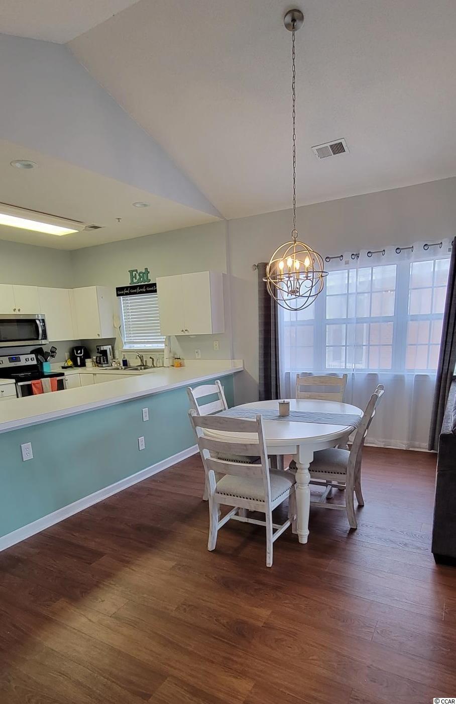 Beautiful 2br/2ba end unit with vaulted ceilings throughout. Open and spacious living room, dining area and kitchen. Updated master bath with new vanity, all new outlets, light switches, light fixtures/ceiling fans, fire alarms and paint. Newer laminate floors, no carpet. Large balcony with serene pond view and attached storage closet. Located minutes from the ocean, entertainment, shopping and airport. Community has outdoor pool, indoor pool and workout room. Move in ready! Schedule your viewing today before this one is gone!