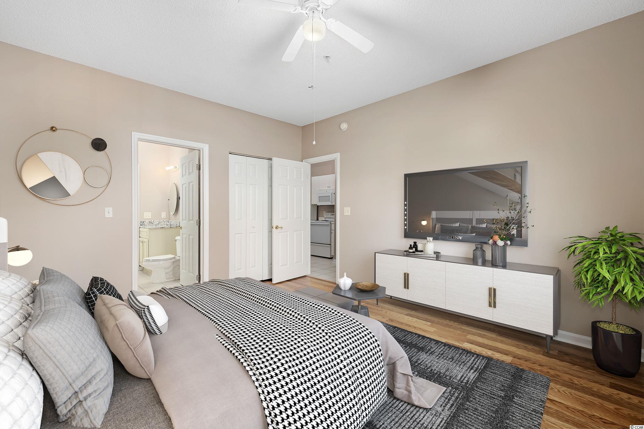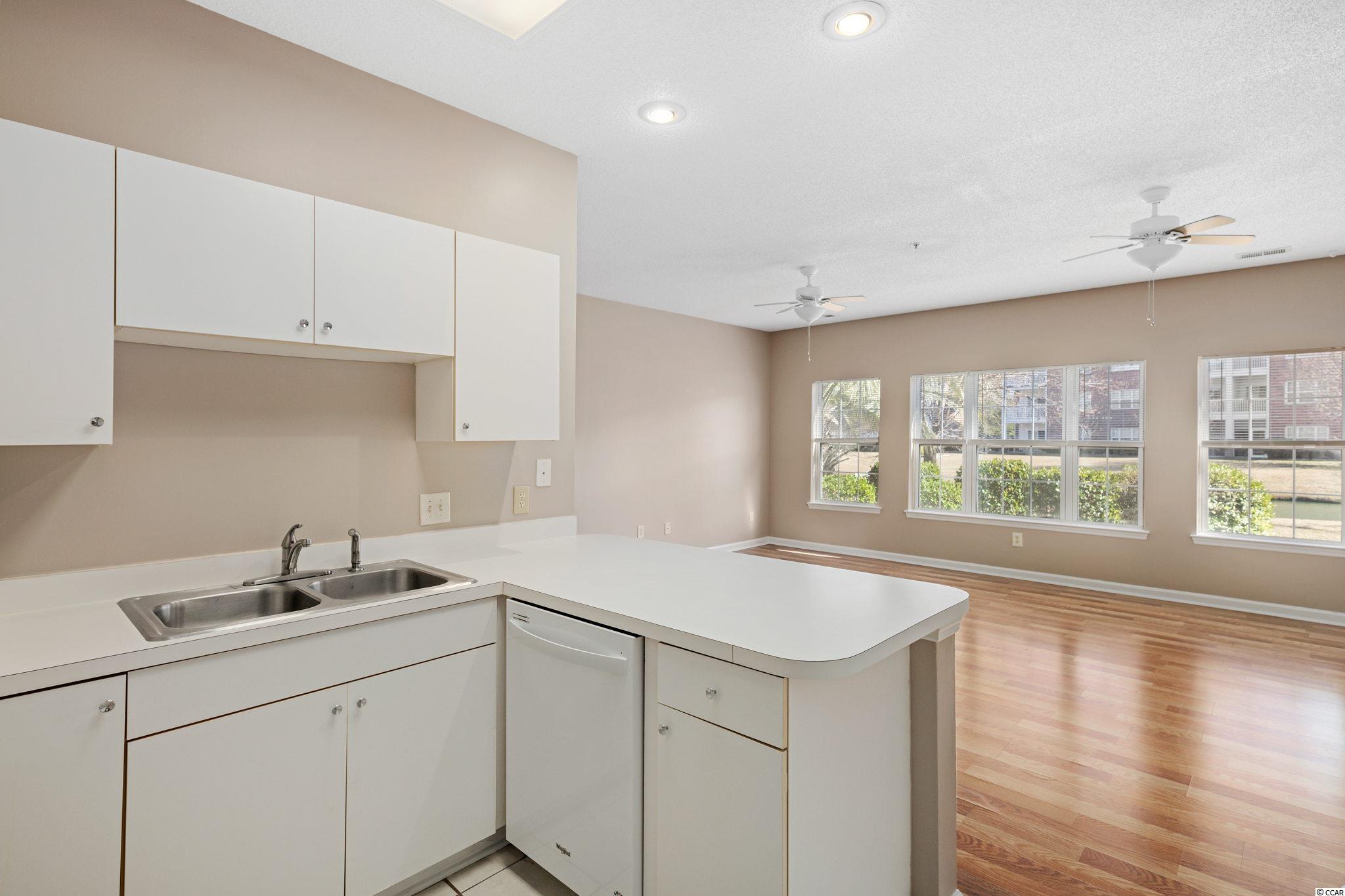 The one and only! This one bed, one and a half bath first floor condo is ready for you! Open concept and filled with natural light from the wall of windows, this home is bright and cheery overlooking the fountain and pond. It was professionally painted just prior to listing. New flooring installed 2019, new bath vanity with granite 2019, new water heater in 2019, washer/dryer 2019. The location is near Market Common, MB International Airport, endless options for dining, shopping, golf and entertainment and easily accessible to highways 31, 22, 501, 701, 544. Ten minutes to the beach and the beautiful MB State Park. Call to schedule a showing today!