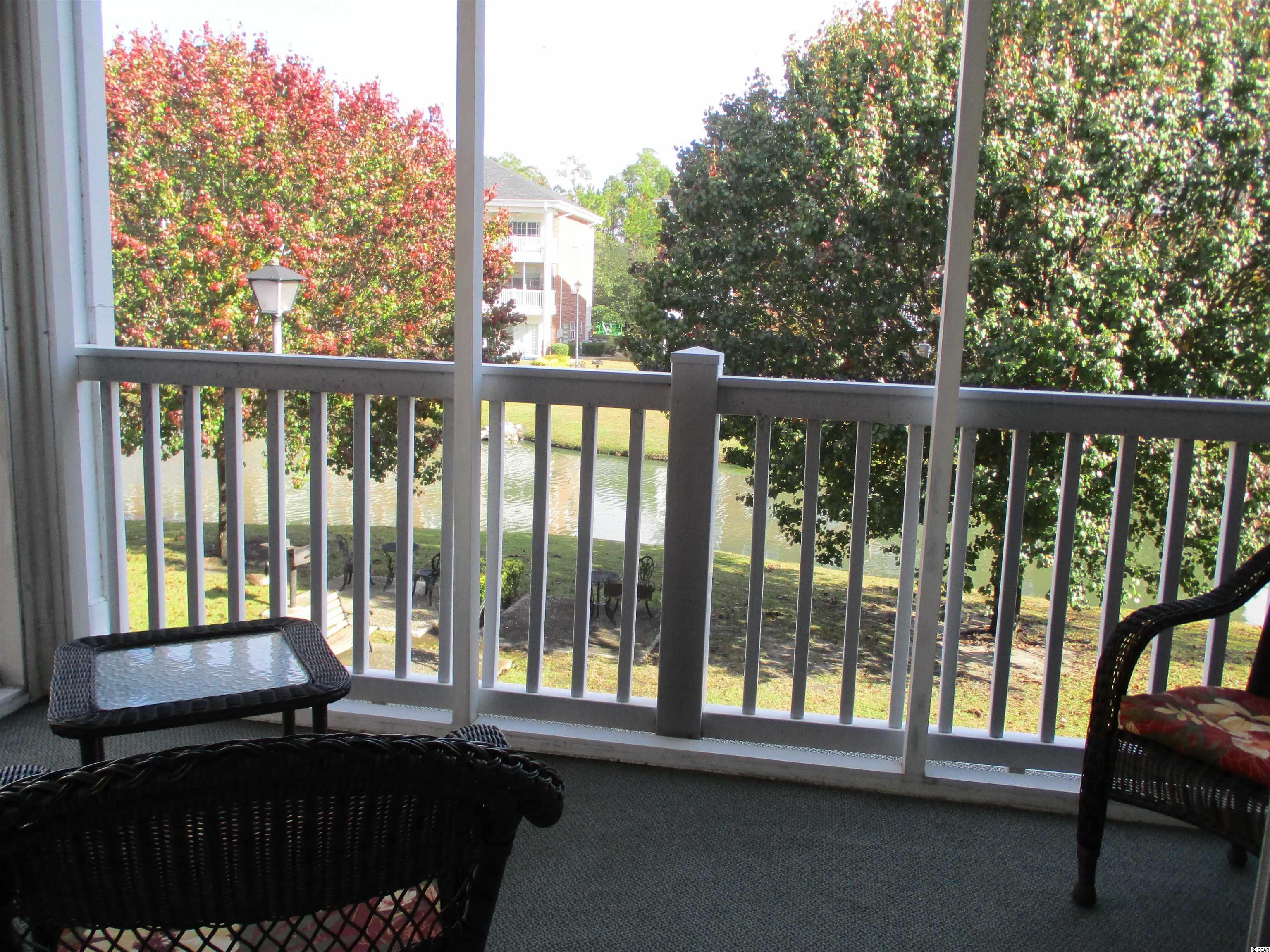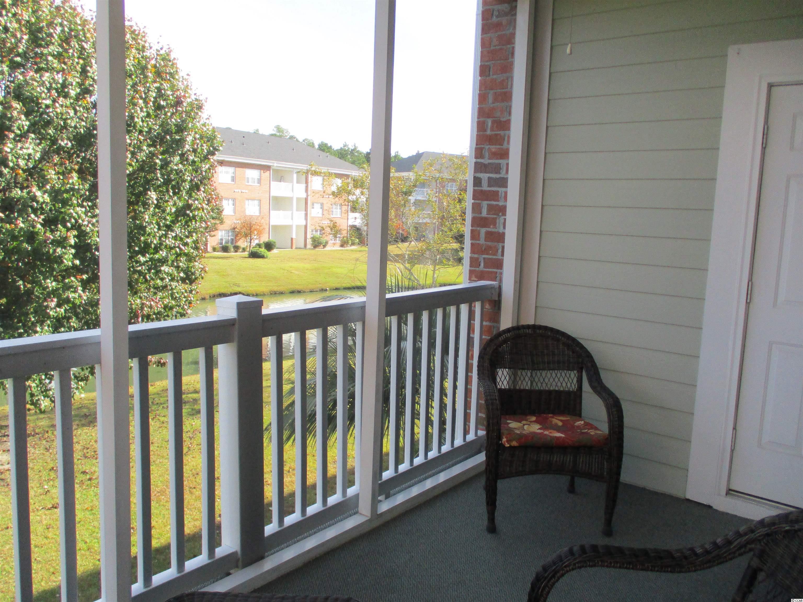Beautiful well maintained 2nd home, 2nd floor end unit overlooking pond with fountains, screen porch with storage closet & ceiling fan, all appliances, washer/dryer, pantry in kitchen, master bedroom with walk-in & extra closet, HVAC & hot water tank 2017, new living room carpet, new vanity in master bath, 1 yr. home warranty, new roof 2019, in & outdoor pools, fitness room, outside grill areas, HOA includes water, sewer, trash, basic cable, lawncare, building insurance & maintenance of common areas. Some furnishings negotiable. Buyer & buyer agent responsible for accurate measurements.
