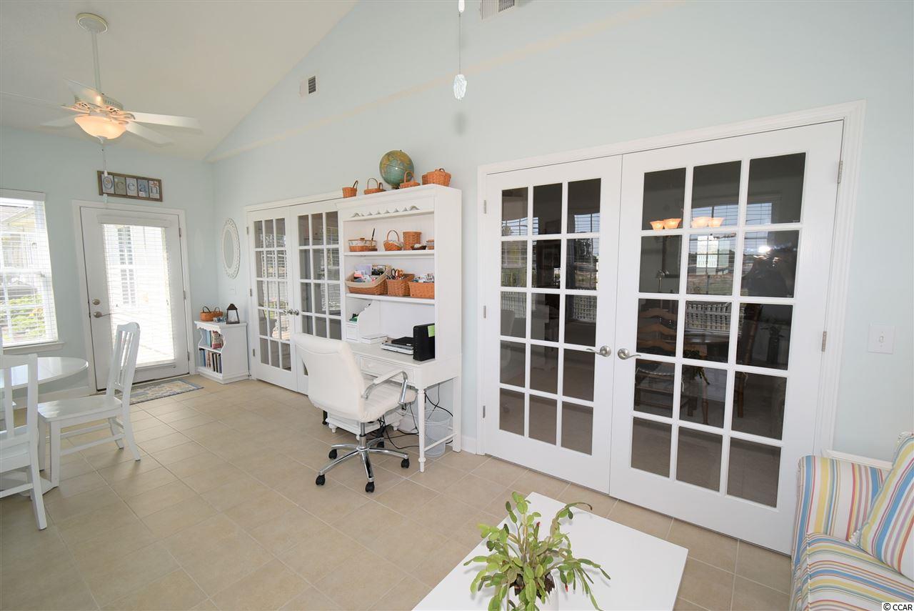 Immaculate & Spacious Paired Ranch in the desirable Deerfield Links community with Pool located EAST of the Bypass 17! Home offers 2 bedrooms, 2 full baths (Master bedroom has walk-in closet, linen closet and private bathroom with 2 sink vanity and 2 seat low threshold shower and guest bath has Garden Tub/shower combo), large sunny Carolina Room with two sets of Double French Doors, Large Dining Room area, Huge Kitchen with Corian countertops, Pantry and GE Profile appliances, Cathedral ceilings, Ceiling Fans, Laundry Room with folding counter & storage (washer & Dryer negotiable), Huge 2 car garage with plenty of shelving, Hurricane Shutters, beautiful back yard with Patio and Fencing. Quiet setting on the pond. This is a larger than average layout in Deerfield Links. Home is a PAIRED RANCH...NOT a condo. HOA fee includes ALL exterior insurance of structure, all exterior maintenance (except doors and windows), landscaping & Lawn Maintenance (except inside fenced areas), irrigation, water & sewer, Basic cable, Internet, Trash pickup, Pest Control, Termite Treatment, Deerfield Links Drive & street light maintenance and Pool. Home has Hurricane Shutters that offer an Insurance Discount (see attached associated docs). Fenced back yard (new owner can add small section between next door neighbor if they so desire... Yard is fenced but because the next door neighbor was a relative they did not add the separation fencing between the two yards... (new owner can add small section between next door neighbor if they so desire but must match existing- see hoa). New roof installed in February, 2020! Don't miss out! Make an appointment to see.