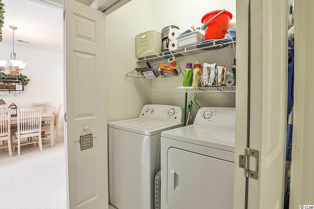 Well maintained 2 bedroom, 2 bath condo in such a convenient location ~ Azalea Lakes. Split bedroom plan, beautiful lake view, indoor and outdoor pool & exercise room within the community!!! Just minutes to the ocean front, Market Common, other shopping venues, medical, airport, entertainment & restaurants. Washer & Dryer area accommodates a full size set which convey. Enjoy hours of relaxation on the screened porch overlooking the lake. Some furnishings are available.
