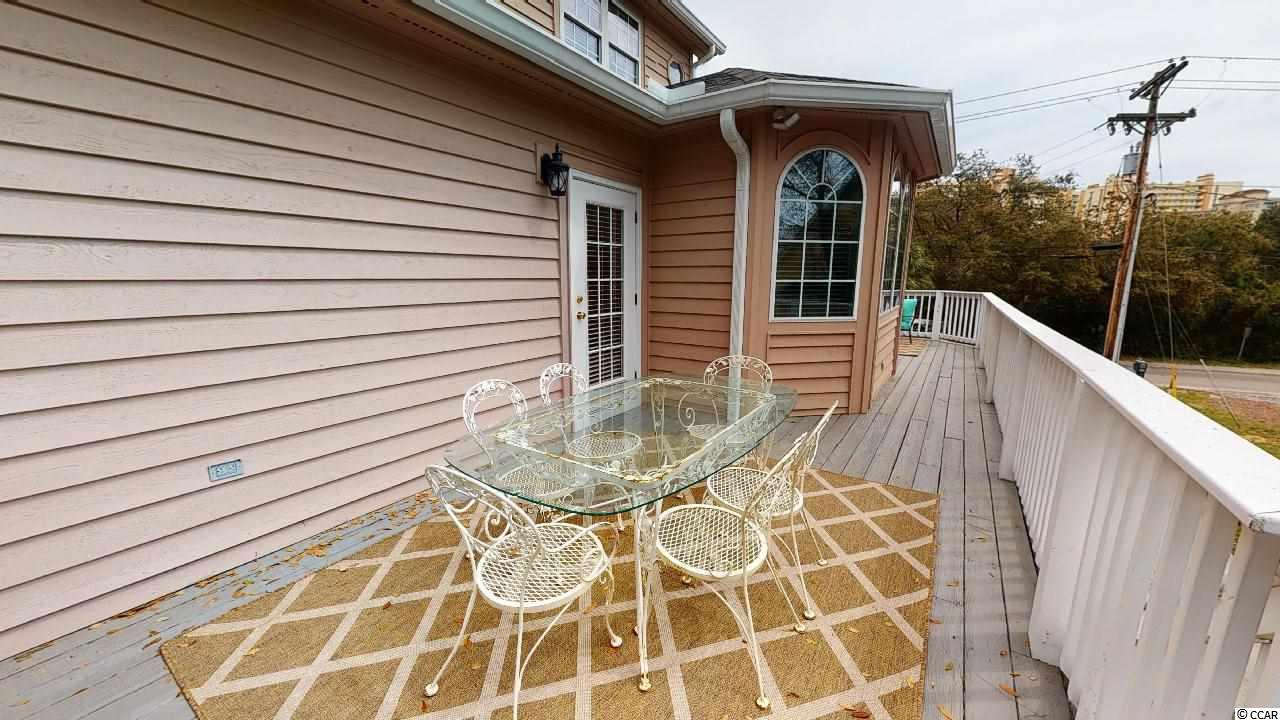 This exquisite 4 bedroom, 4.5 bath raised style home is very close to the ocean. The outdoor deck on the second level presents a striking view as it is approached up Sixth Ave from Ocean Blvd in The Ocean Drive section of North Myrtle Beach. The deck is perfect for anything from sunbathing to dining with family and friends. As you enter this captivating home, you will notice hardwood flooring throughout a great living space that on one side encompasses a kitchen with large granite countertops and white cabinetry. The adjoining dining room is surrounded by a wall of 5 palladium style windows that look onto the deck. The door to the immediate right leads to laundry room and a bath. The other side of this great living space features a vaulted roof, built-in cabinetry, a cozy gas fireplace, 2 sets of French doors, and large palladium windows that allow the room to be bathed in sunshine! The stylish master suite boasts a large walk-in closet, a dressing room with vanity , - soaking garden tub and a step in tile and glass shower. The third floor features two exceptionally large bedrooms as well as a small non-conventional bedroom which has no closet. One of the unique features of the home is the loft which overlooks the downstairs great room. It is beautiful for a quiet time, a place to be a part of the family, yet apart for your own projects: TV, office work, game room, playroom, sitting/craft room...or an additional bedroom! One particularly unique feature of this home is the downstairs suite with its own separate kitchen with pantry, laundry room, bathroom, and bedroom. It is an integral part of the house in that it has easy access to the rest of the house. Yet while it can be accessed via the garage it also has a direct entrance to the outside. Other desirable features are: oversized two-car garage with an addition storage room as well as a room for a Workshop, oversized lot, backyard big enough to accommodate a swimming pool., No HOA. It is ready to move into!