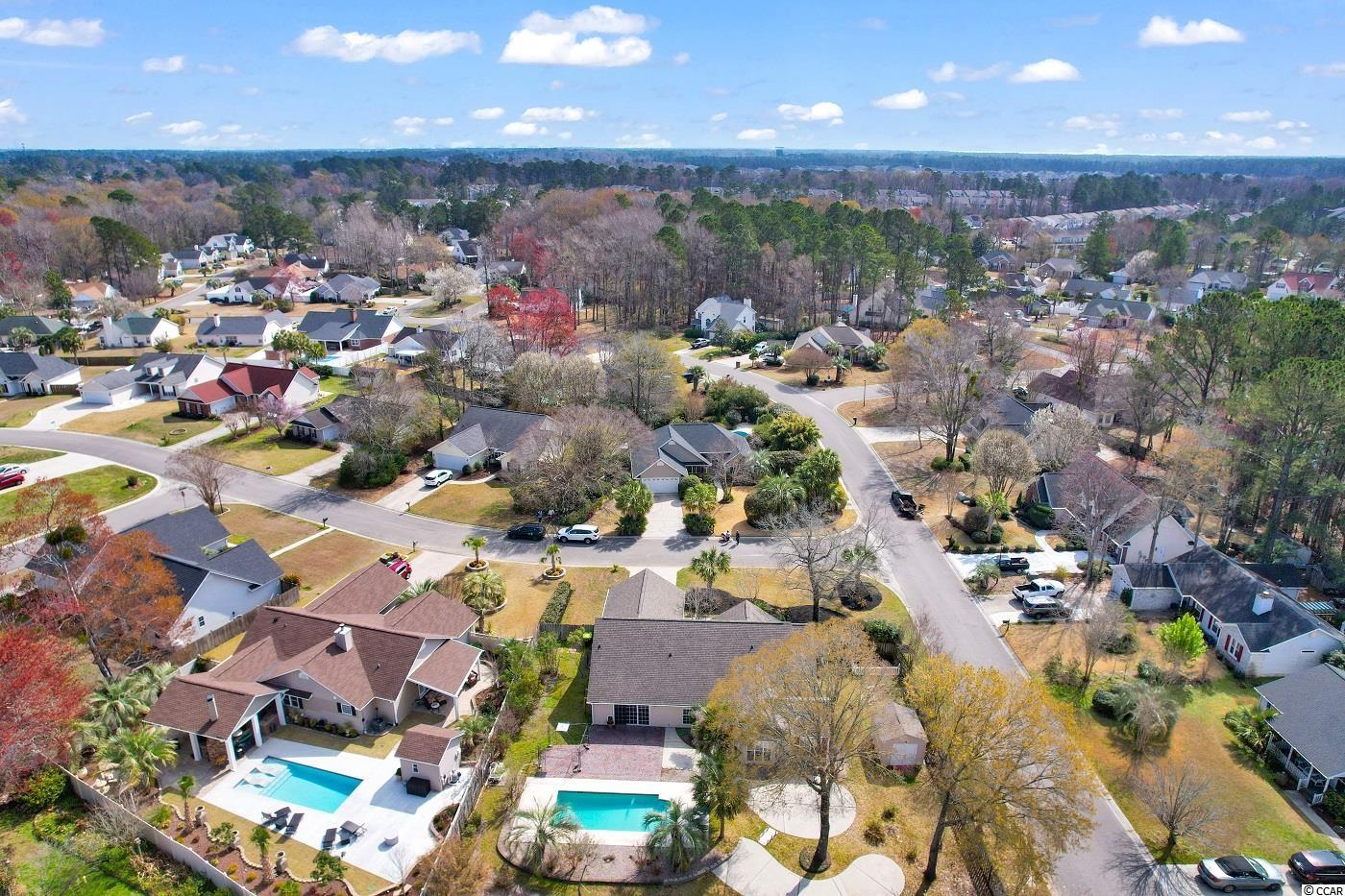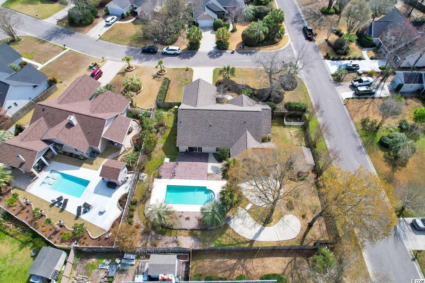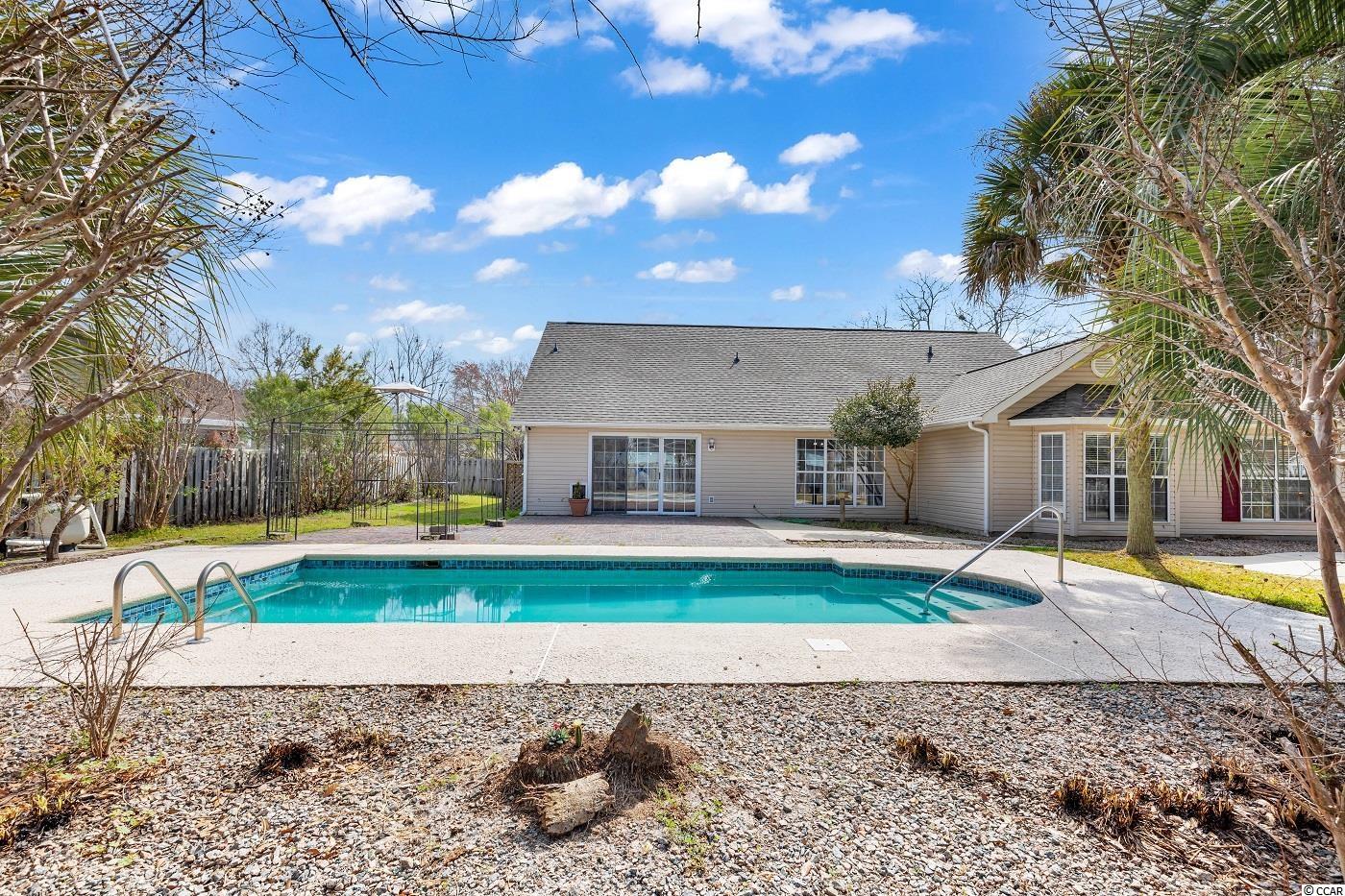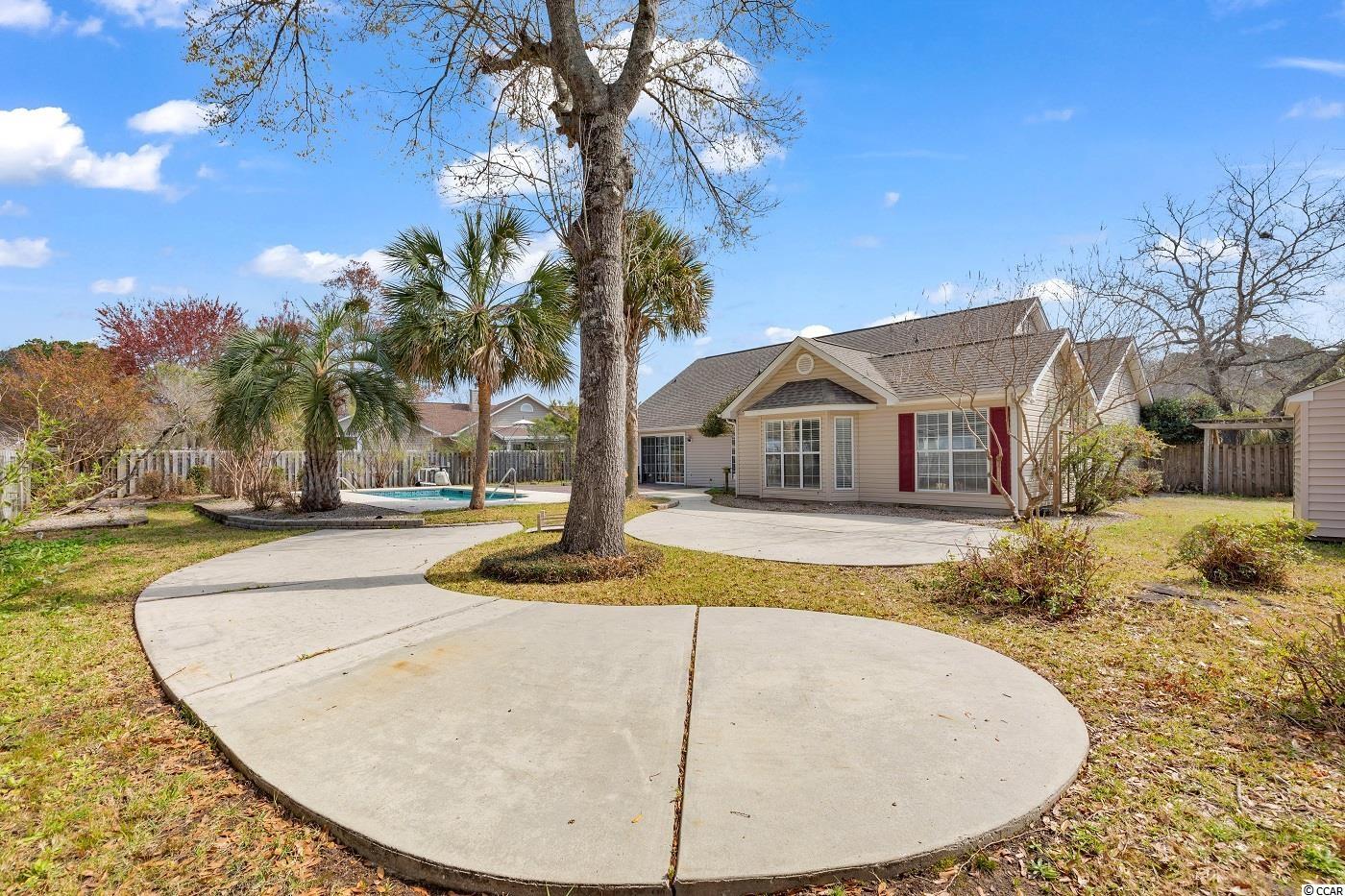 LARGE CORNER LOT, A well designed floor plan is apparent when you walk through the front door and are instantly greeted with lots of natural light, high ceilings and beautiful ceramic tile flooring. This home offers 4 bedrooms, 3 baths and a bonus room next to the master bedroom. This room could be used as a nursery, office and or a sitting room. The large kitchen is open to the family room with a vaulted ceiling and a cozy electric fireplace. The patio door opens up to the tastefully landscaped yard and the outdoor inground pool. This home is situated on approximately .23 acres, with mature trees, beautifully landscaped, offers a storage shed and is fenced, giving you a private oasis! Location is key and this beauty puts you minutes from all the shopping, dining and entertainment that the Beach offers., including Market Commons and the Beach. Put your feet in the Sand and Welcome Home! All measurements are approximate and are not guaranteed, buyers responsible for verification.