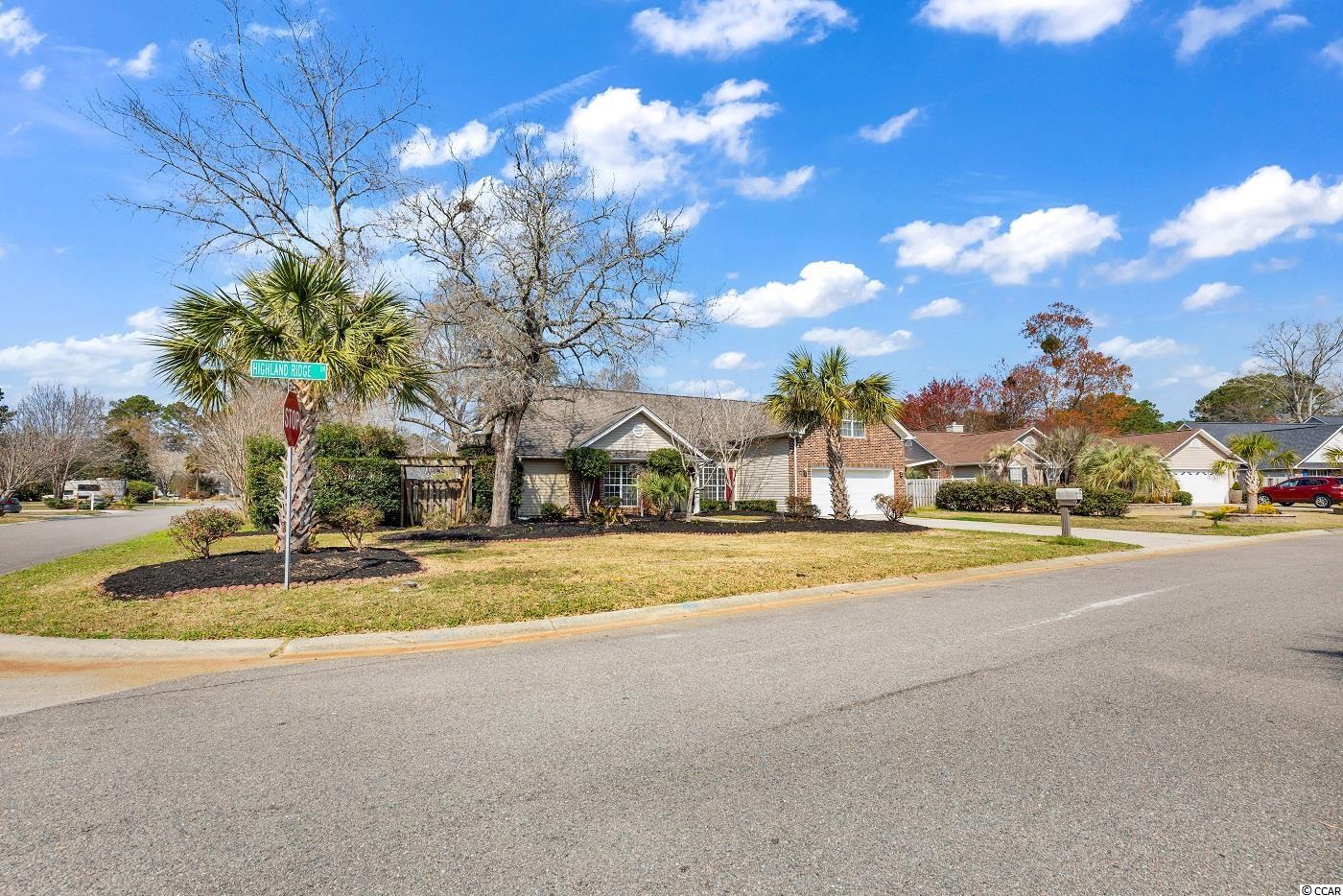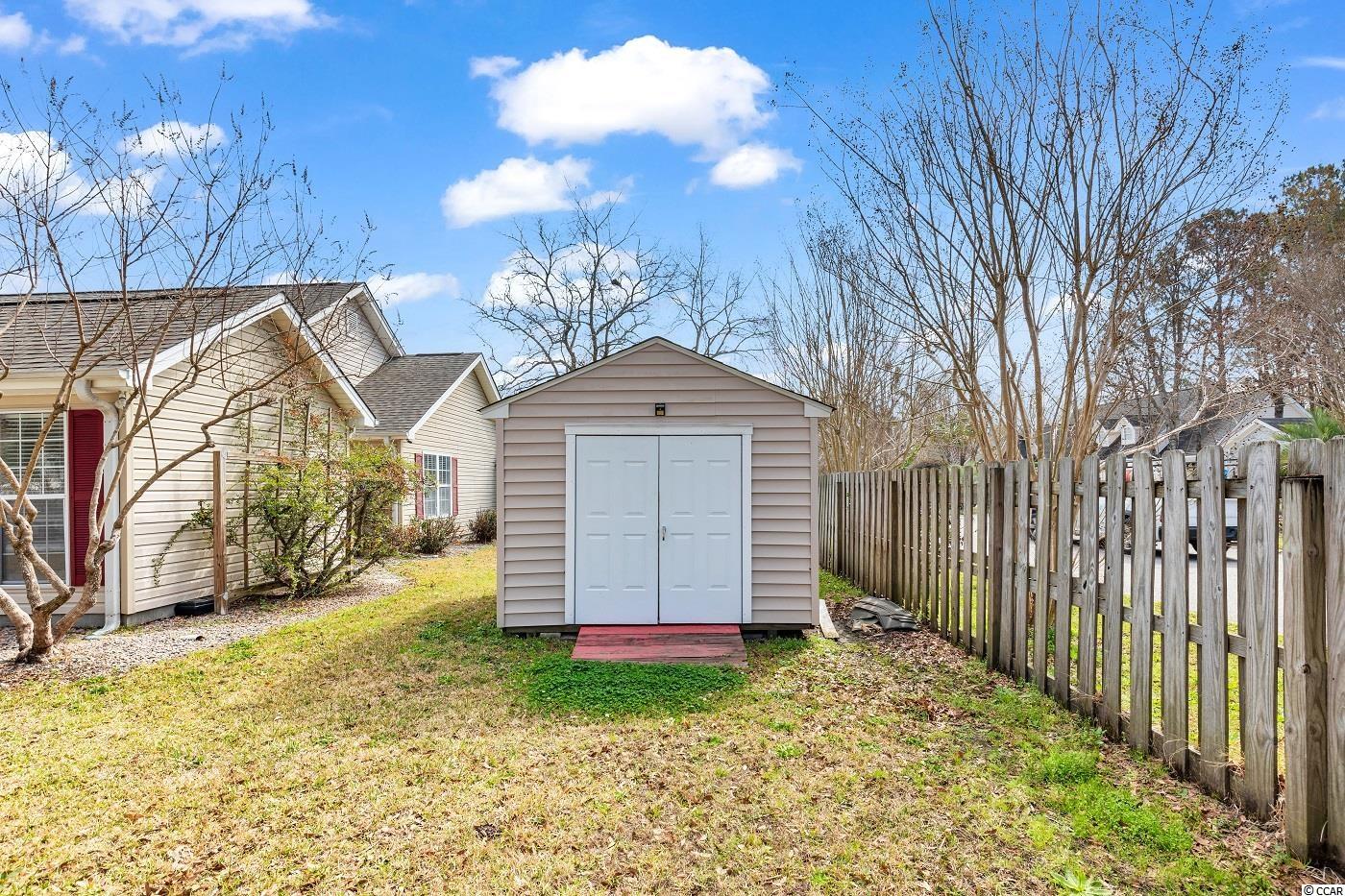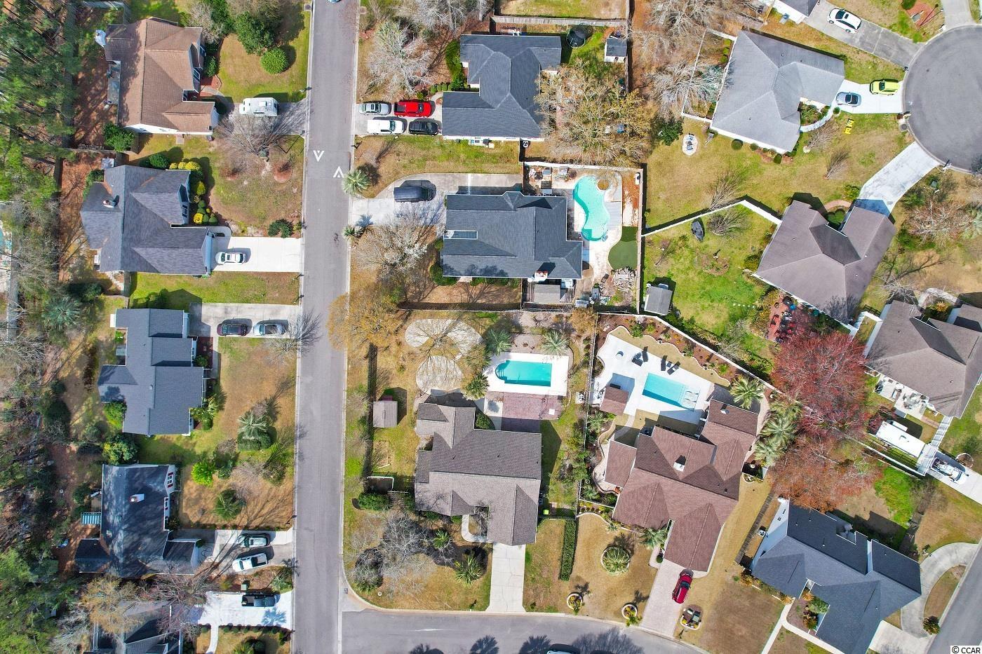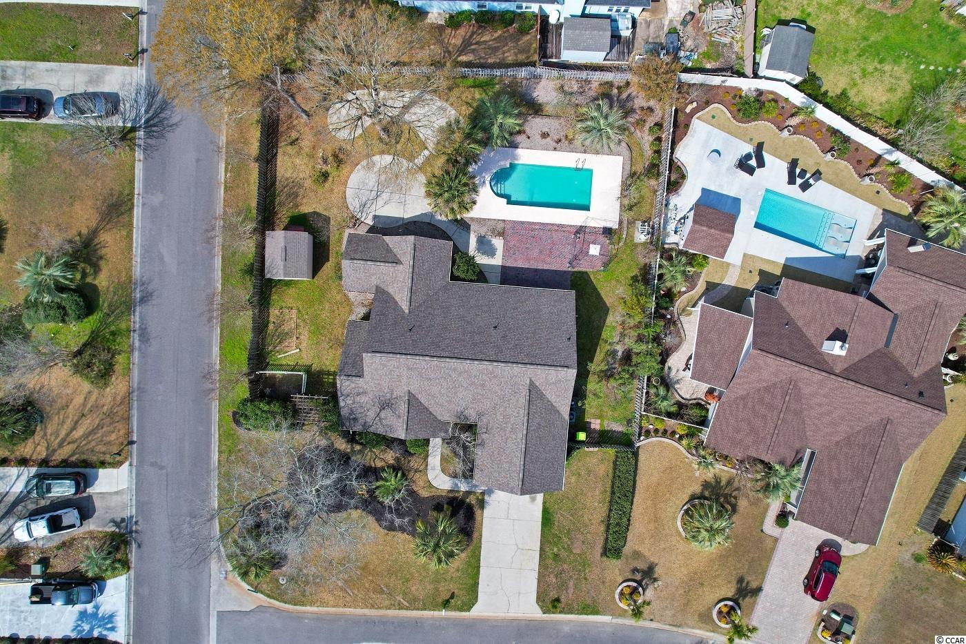 LARGE CORNER LOT, A well designed floor plan is apparent when you walk through the front door and are instantly greeted with lots of natural light, high ceilings and beautiful ceramic tile flooring. This home offers 4 bedrooms, 3 baths and a bonus room next to the master bedroom. This room could be used as a nursery, office and or a sitting room. The large kitchen is open to the family room with a vaulted ceiling and a cozy electric fireplace. The patio door opens up to the tastefully landscaped yard and the outdoor inground pool. This home is situated on approximately .23 acres, with mature trees, beautifully landscaped, offers a storage shed and is fenced, giving you a private oasis! Location is key and this beauty puts you minutes from all the shopping, dining and entertainment that the Beach offers., including Market Commons and the Beach. Put your feet in the Sand and Welcome Home! All measurements are approximate and are not guaranteed, buyers responsible for verification.
