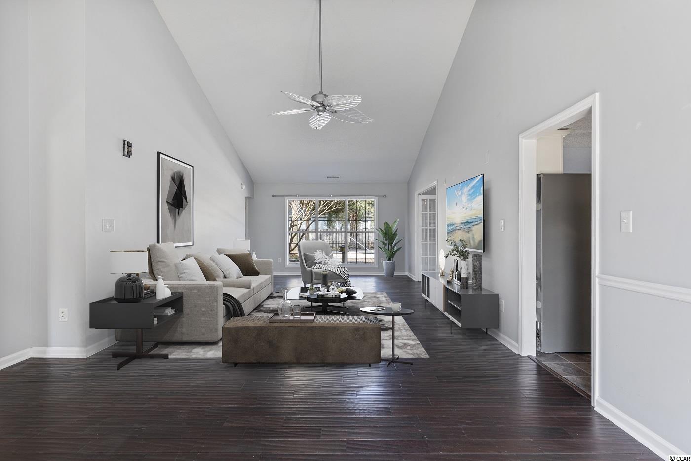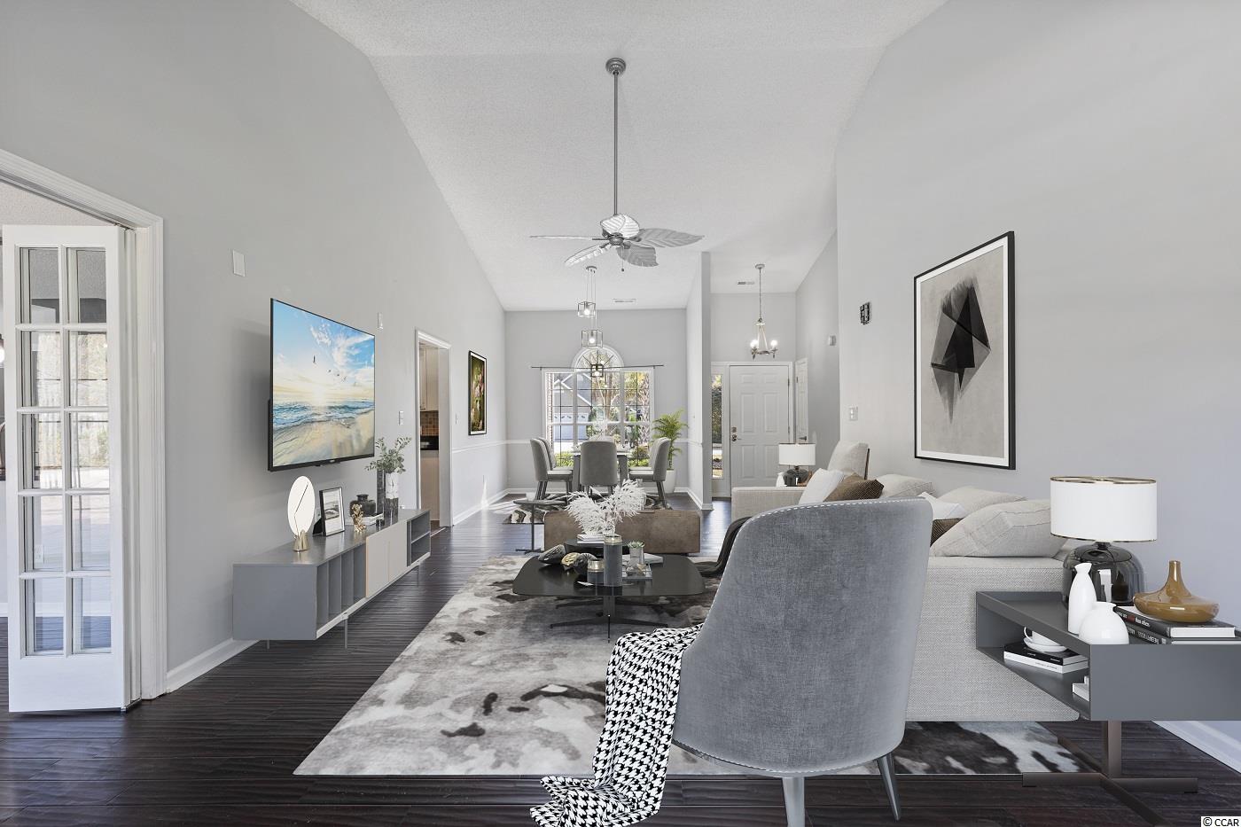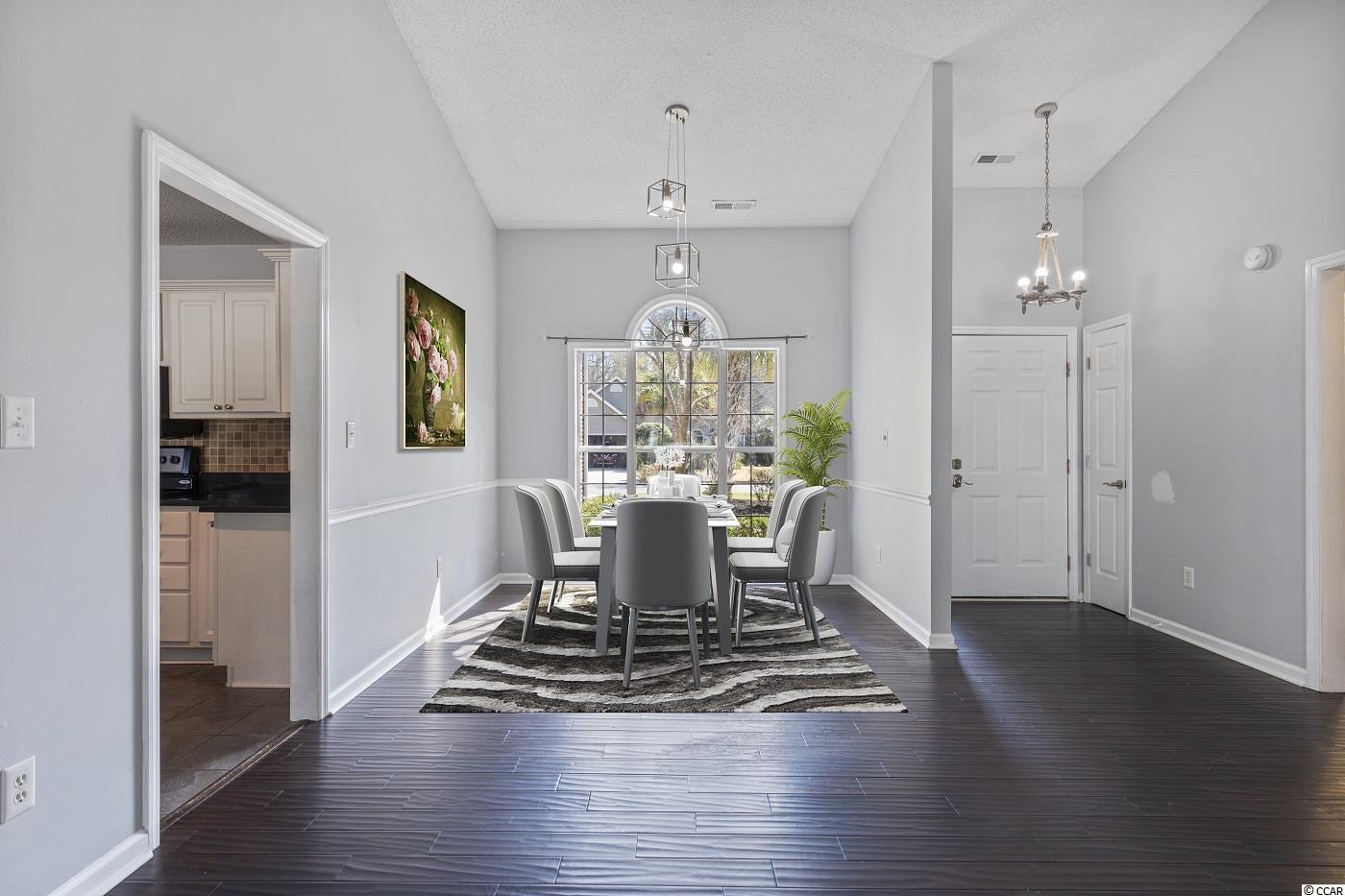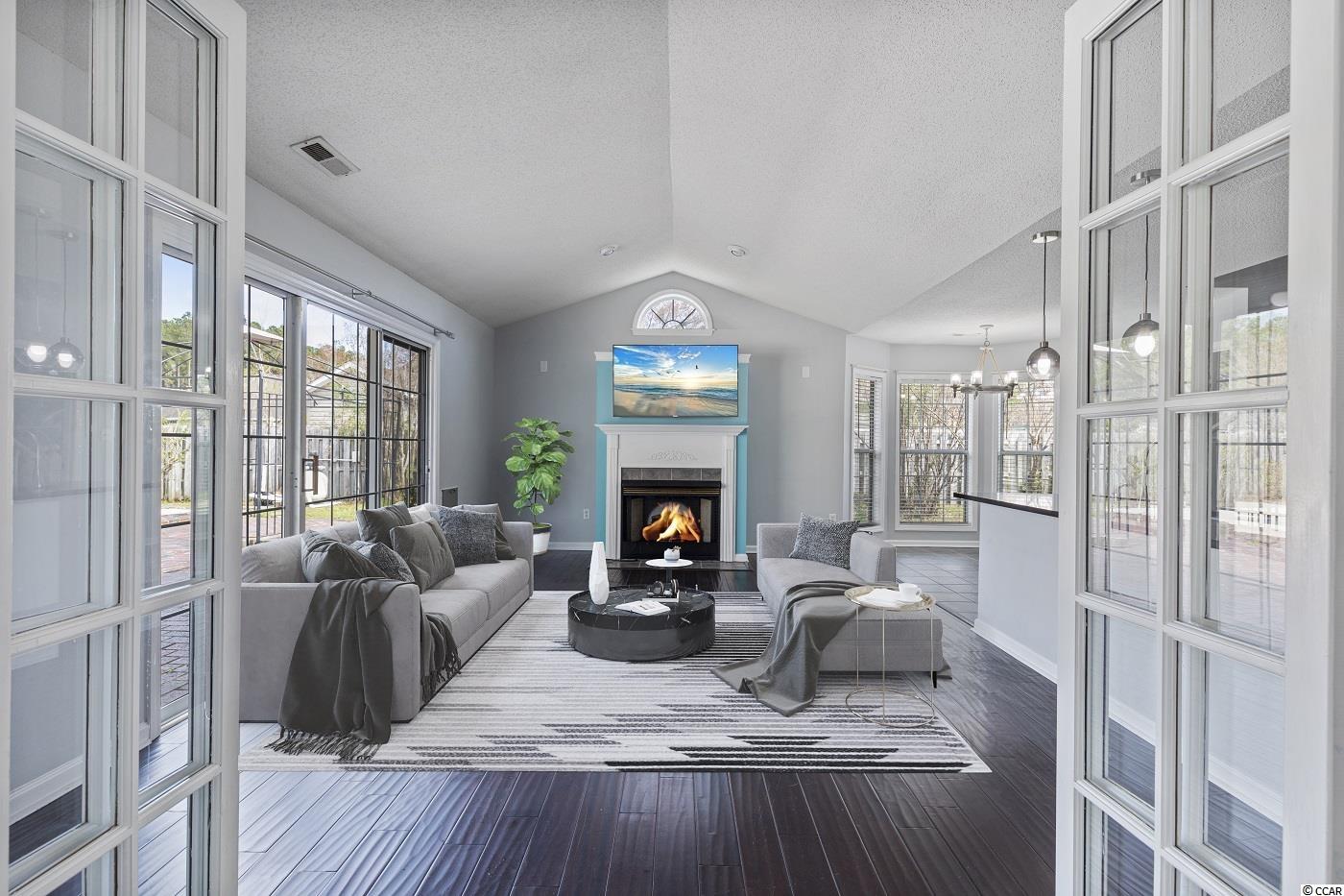 LARGE CORNER LOT, A well designed floor plan is apparent when you walk through the front door and are instantly greeted with lots of natural light, high ceilings and beautiful ceramic tile flooring. This home offers 4 bedrooms, 3 baths and a bonus room next to the master bedroom. This room could be used as a nursery, office and or a sitting room. The large kitchen is open to the family room with a vaulted ceiling and a cozy electric fireplace. The patio door opens up to the tastefully landscaped yard and the outdoor inground pool. This home is situated on approximately .23 acres, with mature trees, beautifully landscaped, offers a storage shed and is fenced, giving you a private oasis! Location is key and this beauty puts you minutes from all the shopping, dining and entertainment that the Beach offers., including Market Commons and the Beach. Put your feet in the Sand and Welcome Home! All measurements are approximate and are not guaranteed, buyers responsible for verification.