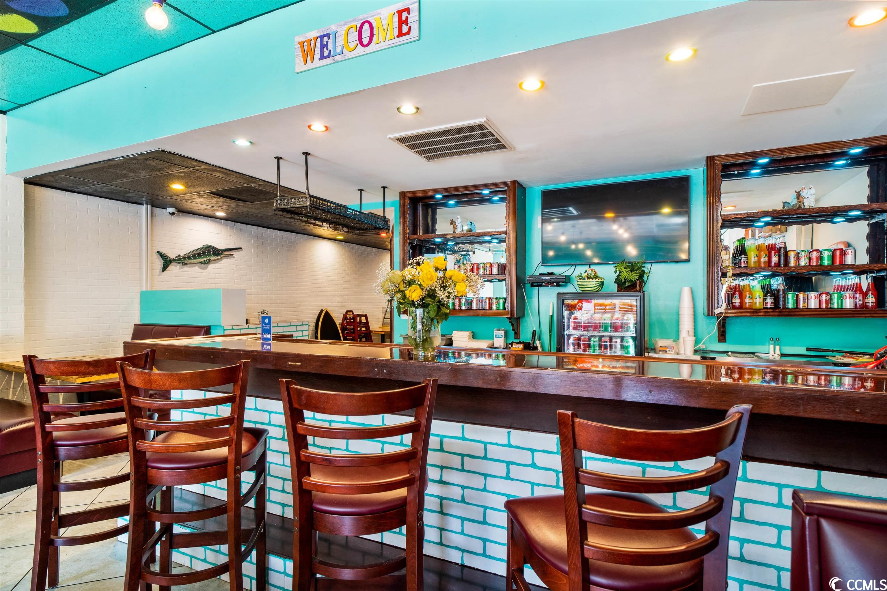 This property is currently operating as a restaurant. Hands down, one of the best locations for an establishment in Myrtle Beach. This restaurant currently seats (90) with plenty of space to fit booths and tables. A pristine accommodating bar area that allows additional seating space. Bathrooms are up to date and have been kept in top shape. The kitchen is fully stocked with top-of-the-line appliances and ready to be used. This amazing location has lots of foot traffic and plenty of parking and comes with a huge following with excellent reviews. Tons of room to grow and expand the business, which is a great opportunity for someone to operate their own business. This area is part of the Hwy 501 realignment from Broadway Street to 7th Ave. N. to Ocean Blvd, which will allow the expansion of businesses in this area and a lot of walking traffic from Broadway to the beach.