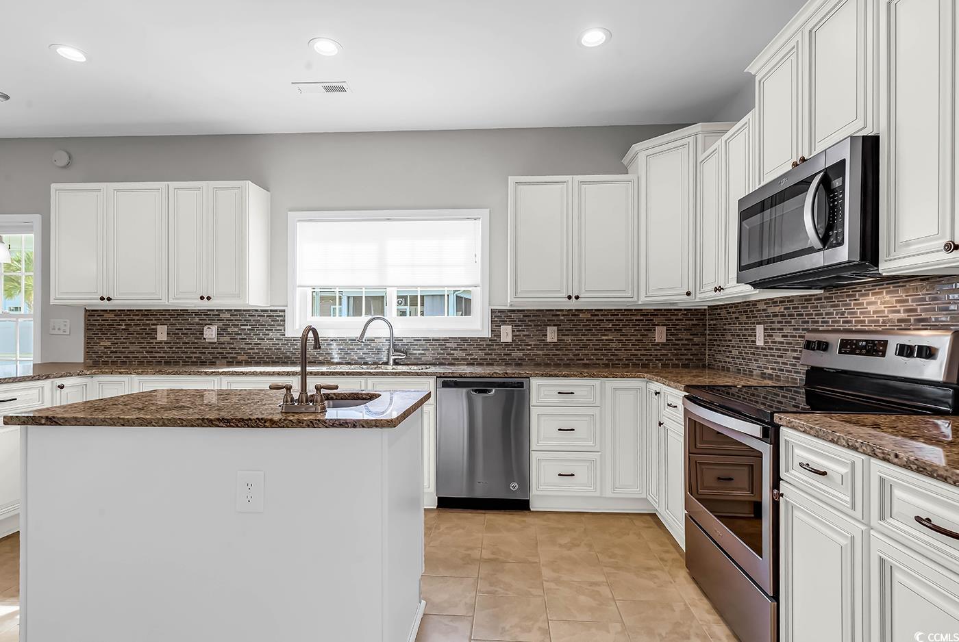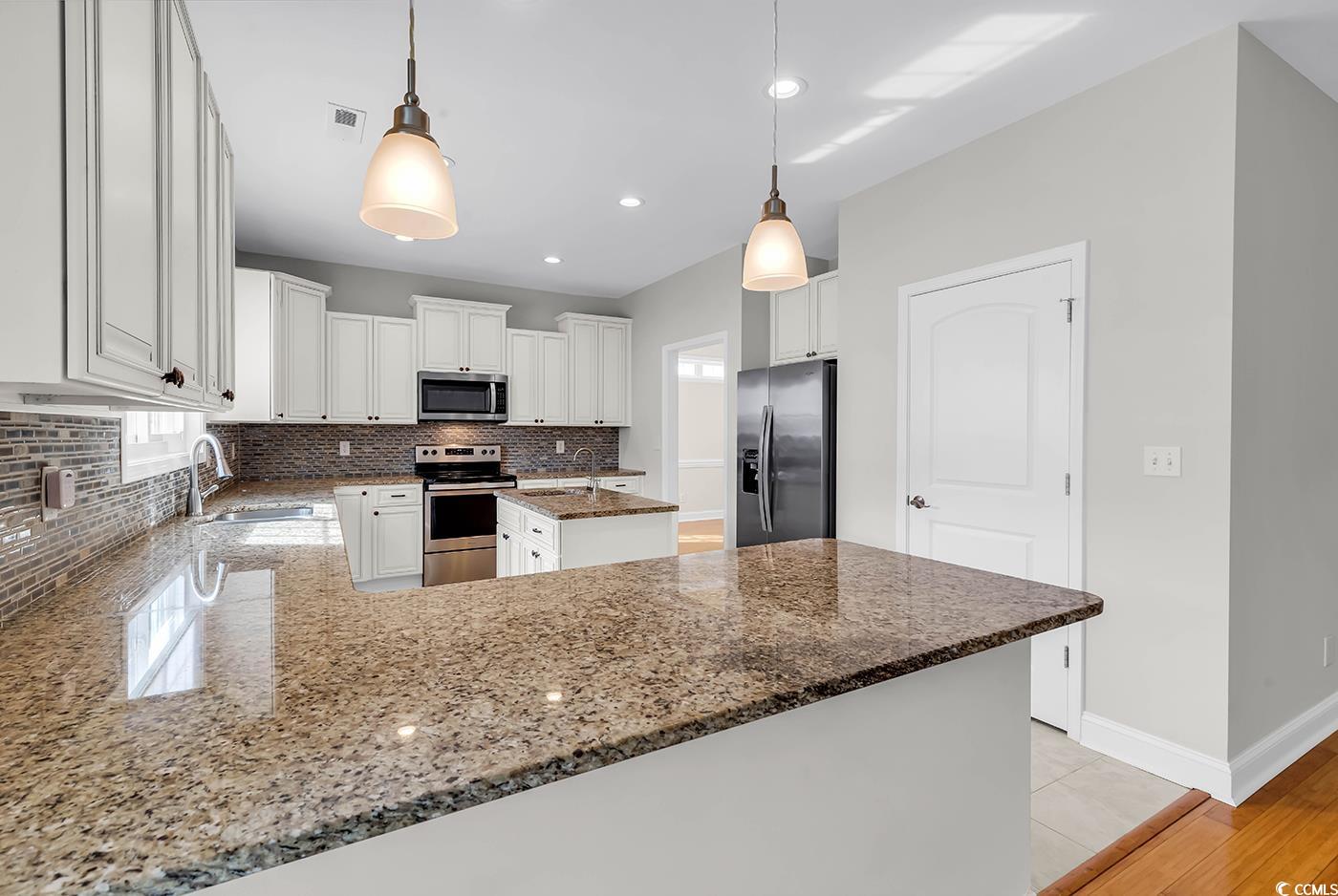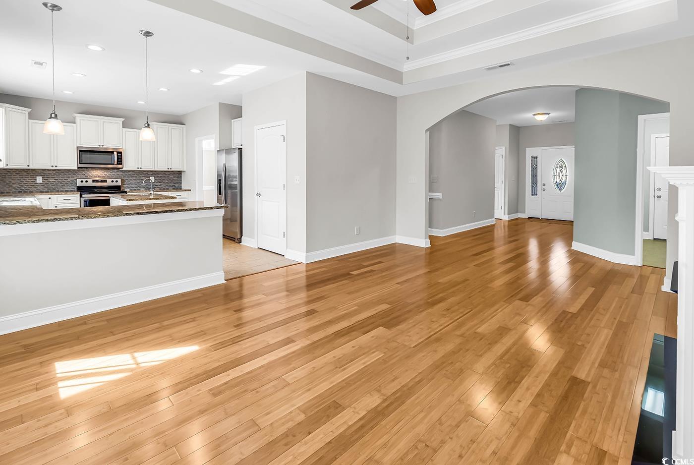 WOW! Come check out this beautiful 3 Bedroom, 2 Bath home located at the end of a quiet cul-de-sac in The Gates - Somerset Cove community of Myrtle Beach, SC. Just 4.2 miles to Surfside Beach! Built in 2012, this home is full of upgrades and thoughtful design touches throughout. Step through the decorative frosted glass front door into a welcoming foyer, where bamboo hardwood floors flow seamlessly into the spacious Great Room. The open floor plan makes entertaining family and friends a breeze! The kitchen truly has it all high-end soft-close cabinetry, granite countertops, tile backsplash, stainless steel appliances, a pantry, a large center island with a second sink, and a breakfast bar. There's even a formal dining room and a cozy built-in gas fireplace in the living area. An office nook between the great room and dining room provides the perfect spot for a workspace, gaming setup, or additional pantry space. This split-bedroom floor plan offers comfort and privacy, with carpeting and ceiling fans in all bedrooms. The home boasts 9-foot ceilings throughout, with tray ceilings in the great room, primary suite, and dining room. The primary suite is spacious and features a luxurious en suite bathroom with dual sinks, a walk-in tiled shower, large soaking tub, and a 13 x 5 walk-in closet. Additional features include a tankless Rinnai gas water heater, covered patio with gas line for a grill, and a screened porch with pergola leading to a huge patioperfect for entertaining! Enjoy a fenced backyard, beautiful landscaping, and a sprinkler system to keep it lush year-round. Excellent location close to shopping, dining, and entertainment just 7.2 miles to the Marsh Walk in Murrells Inlet and 6.1 miles to Garden City Pier. You wont find a better blend of comfort, style, and location schedule your showing today before its gone!